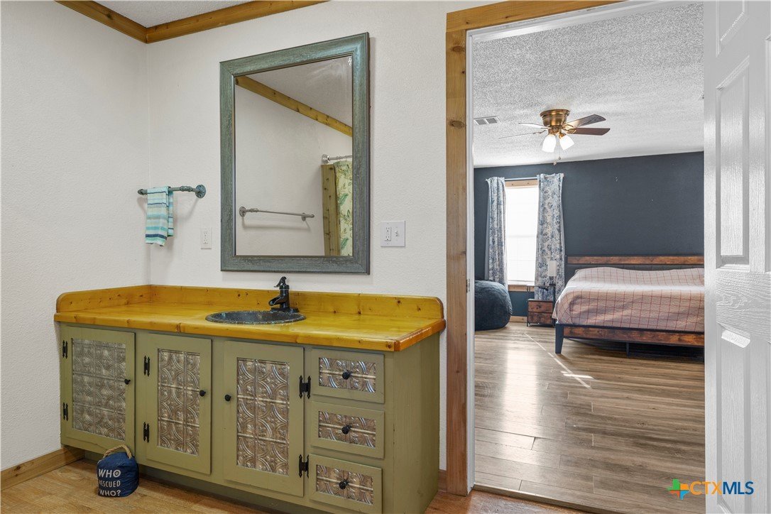 This 3 bedroom, 2 bath home offers a one-story open layout. The living and kitchen area creates a comfortable everyday space, featuring custom cabinets, generous counter space, and plenty of storage. The primary suite is spacious and includes an ensuite bath with a separate shower and a huge walk in closet. Two additional generously sized bedrooms and a second full bath provide flexibility for family, guests, or a home office. Outside, the home sits on a .344 acre lot that offers a sense of privacy while still being close to town. The oversized carport spans approximately 1,300 square feet and is enclosed on three sides, making it ideal for parking, projects, or additional covered space. Two storage buildings add even more room for tools, equipment, or hobbies. Located just 10 minutes from Waco and 10 minutes from West, this property is a convenient option for buyers who want accessibility without giving up breathing room. If you are looking for a home with solid bones and the opportunity to make it your own, this one is absolutely worth seeing in person.