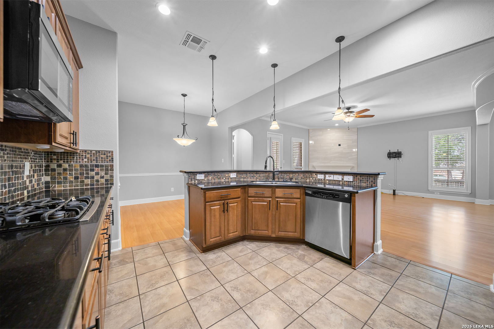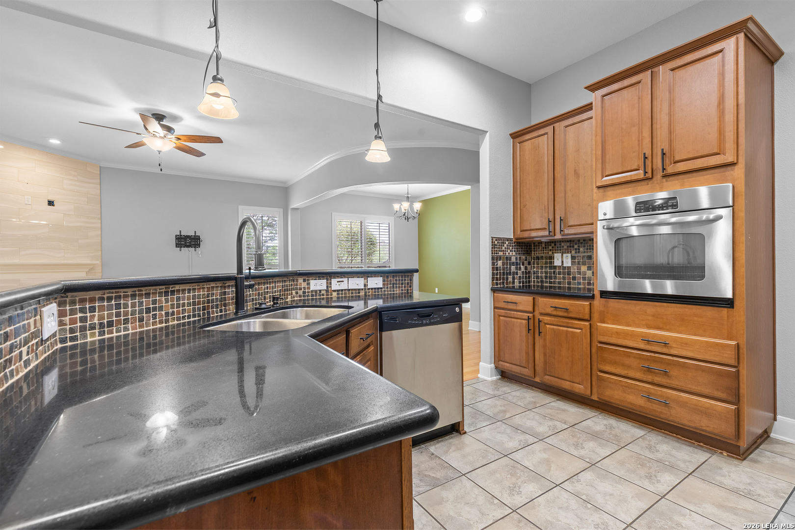 Located in a gated community within the highly sought after Cibolo Canyons area, this home offers a strong combination of comfort, updates, and access to one of the most desirable areas in San Antonio. Inside, the home features 10 foot ceilings that create an open feel throughout, along with upgraded wood flooring, new carpet, and updated recessed lighting that gives the space a clean, modern look. Plantation shutters add both style and function, while double pane windows help with energy efficiency and overall comfort. Ceiling fans are installed throughout the home for added convenience. The kitchen and living areas are designed for everyday use and entertaining, with a layout that flows well without feeling closed off. The home is also plumbed for a water softener and includes a tankless water heater, offering efficiency and long term value. Living in Cibolo Canyons means access to resort style amenities, including a community pool, clubhouse, fitness center, walking trails, and all within a gated, well maintained and established community. The location provides quick access to major highways, shopping, dining, and top rated schools. This is a home that offers both practical upgrades and a location that continues to hold strong value.
