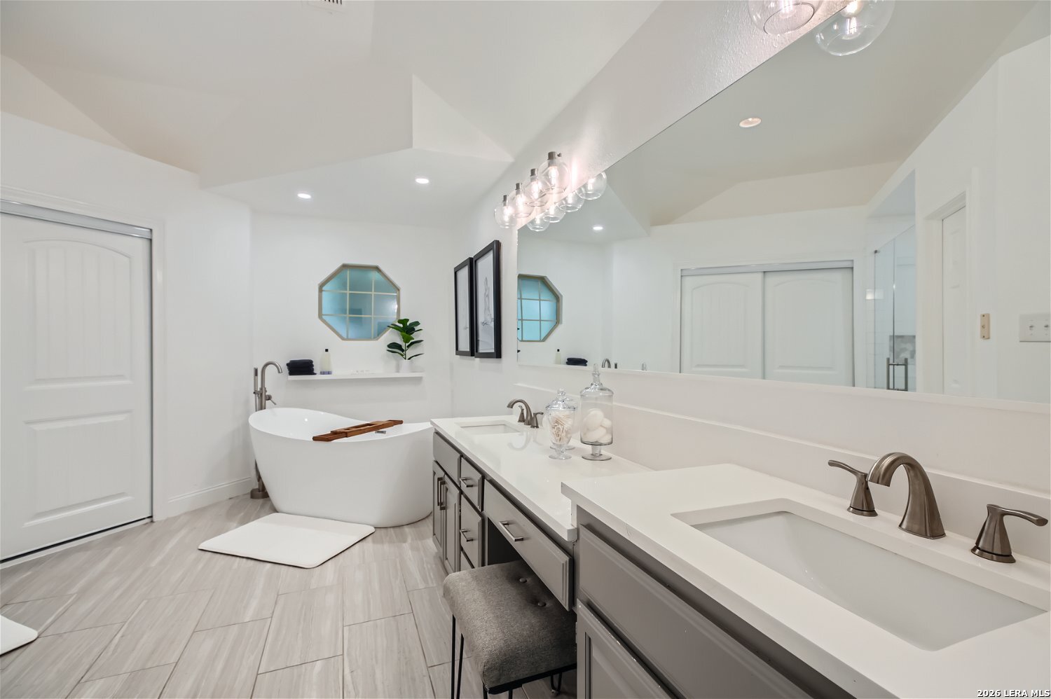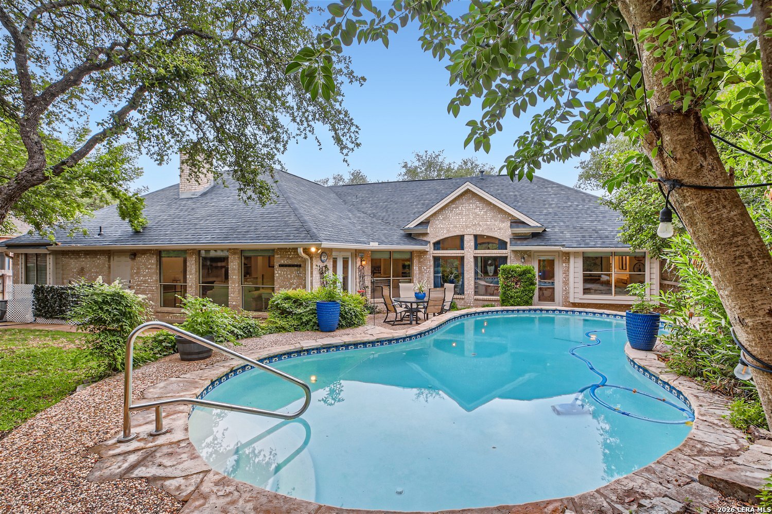 Designed for effortless daily living, 24 Inwood Manor offers a rare opportunity to own a beautifully updated single-story home with pool in the guarded, gated community of Inwood. Homes with this combination of recent updates and refined finishes rarely come available in this neighborhood. Natural light moves through the open living spaces, where high ceilings and rich hardwood flooring create a quiet sense of luxury. The home offers two living areas, and the living and dining spaces flow seamlessly into the island kitchen with gas cooking, Taj Mahal quartz countertops, walk-in pantry, and an oversized island, thoughtfully designed for both everyday living and entertaining. The split primary suite is privately positioned with access to the backyard and pool, creating a true retreat. The bath is elegantly appointed with double vanities, a freestanding tub, oversized shower, and a spacious walk-in closet. Secondary bedrooms offer flexibility for guests, a home office, or additional living needs-all on one level. Set on a 0.27-acre lot with mature trees, the backyard offers a peaceful setting with an in-ground pool, patio, and established landscaping. A side-entry two-car garage adds both function and curb appeal. Located inside Loop 1604, within a guarded access community - amenities include pool, tennis, and easy access to the San Antonio Greenway Trails system. This home offers a balance of privacy, convenience, and ease-ideal for those seeking a refined home that lives comfortably from day one.