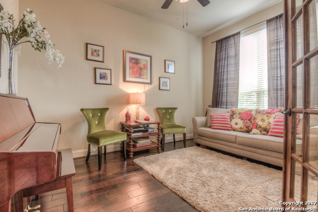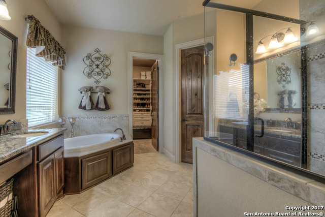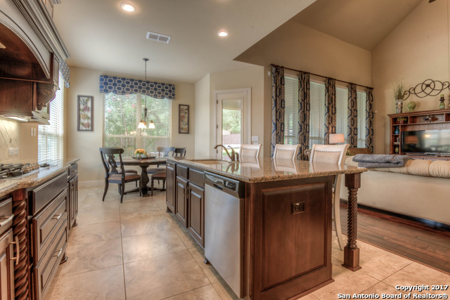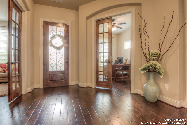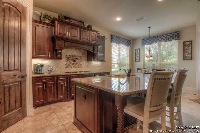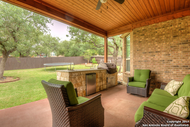 This elegantly appointed Gehan 4/3.5/3 home has something for everyone - game room, media room, outdoor kitchen & living area, incredible California Closet in master, and a rare find - two studies! Or use one as a living area/playroom/etc. Upgraded chef's kitchen includes pot filler, huge island, gas cooking. Beautiful views and level backyard with plenty of room to play. True laundry room! Upgraded knotty alder doors. Tankless water heater. Water softener. Sprinklers. Popular NEISD schools & no city taxes!