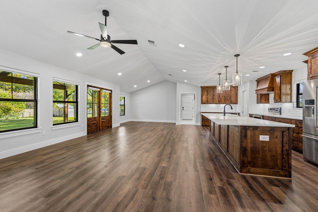 This 1,544 sq ft home has been fully remodeled and is move-in ready, blending modern updates with classic Texas charm. Featuring 3 bedrooms and 2 bathrooms, the home boasts a spacious layout perfect for family living. The kitchen is equipped with brand-new KitchenAid appliances and quartz countertops throughout, offering both style and durability. A large mudroom/laundry room with a coat closet adds convenience and organization, while the well-maintained yard, complete with a sprinkler system, is shaded by mature oak trees, providing a serene outdoor retreat. Enjoy your mornings or evenings on the grand back porch, ideal for relaxing or entertaining. Additional highlights include an enclosed carport, offering covered parking and extra storage. Located in the heart of San Saba, this home combines comfort, style, and functionality.