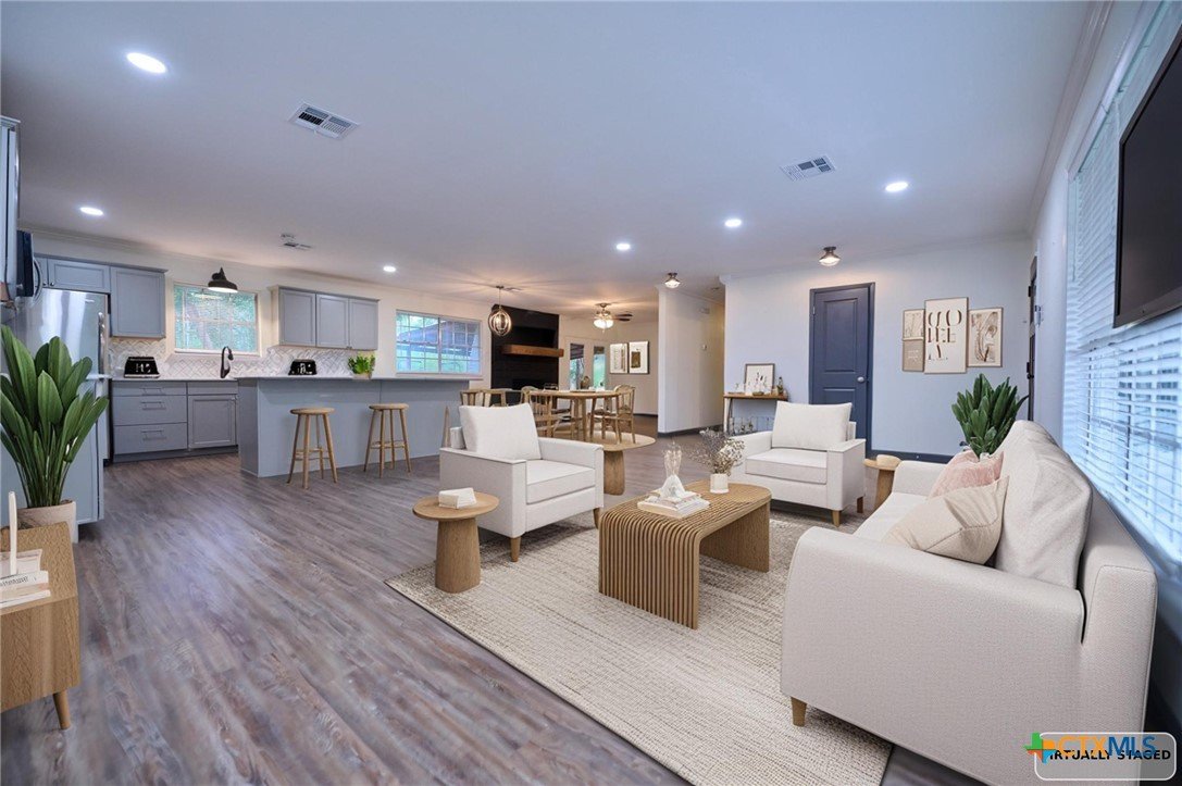Welcome home! This stunning mid-century residence offers over 1,700 square feet of beautifully renovated living space. Featuring three expansive bedrooms and two modernized bathrooms, this home combines classic charm with contemporary convenience. Unlike other homes built in this era, the floor plan has been professionally opened up, boasting two sprawling, open living areas. Cozy up by the fireplace on cool evenings or enjoy the comfort of the fully updated HVAC system with new ductwork. The roof and flooring are brand new, and the appliances replaced in 2020, ensuring move-in readiness. Nestled on nearly half an acre of lush, mature trees, this charming property provides privacy in a serene outdoor retreat. Don’t miss your chance—this exceptional home is a must-see!
