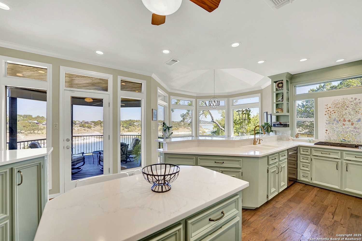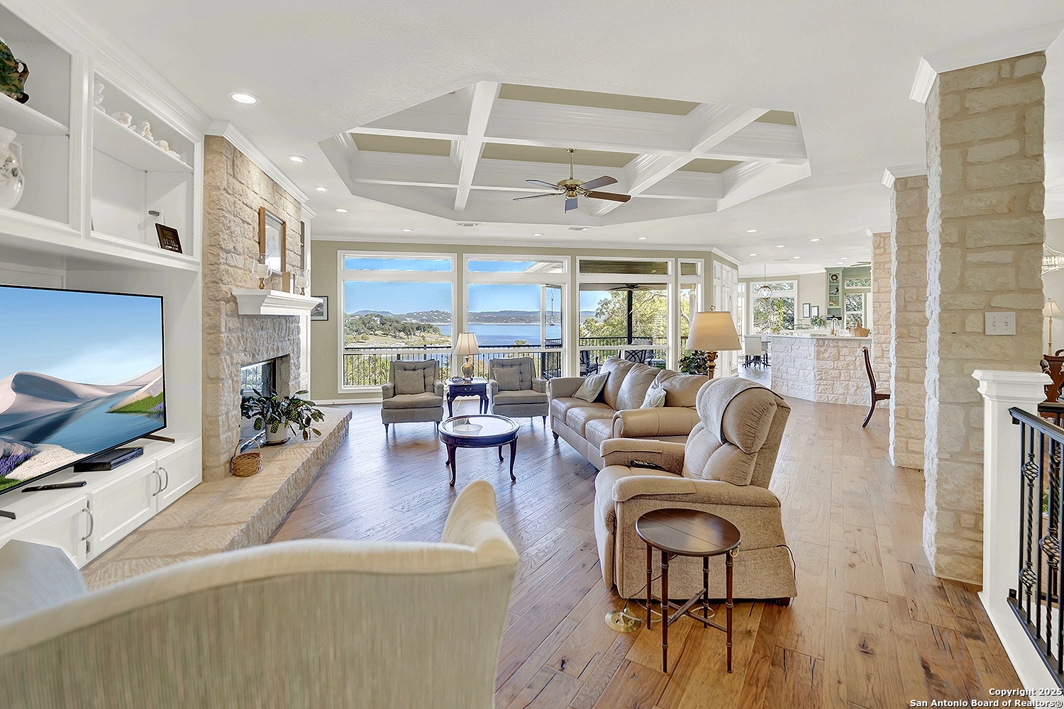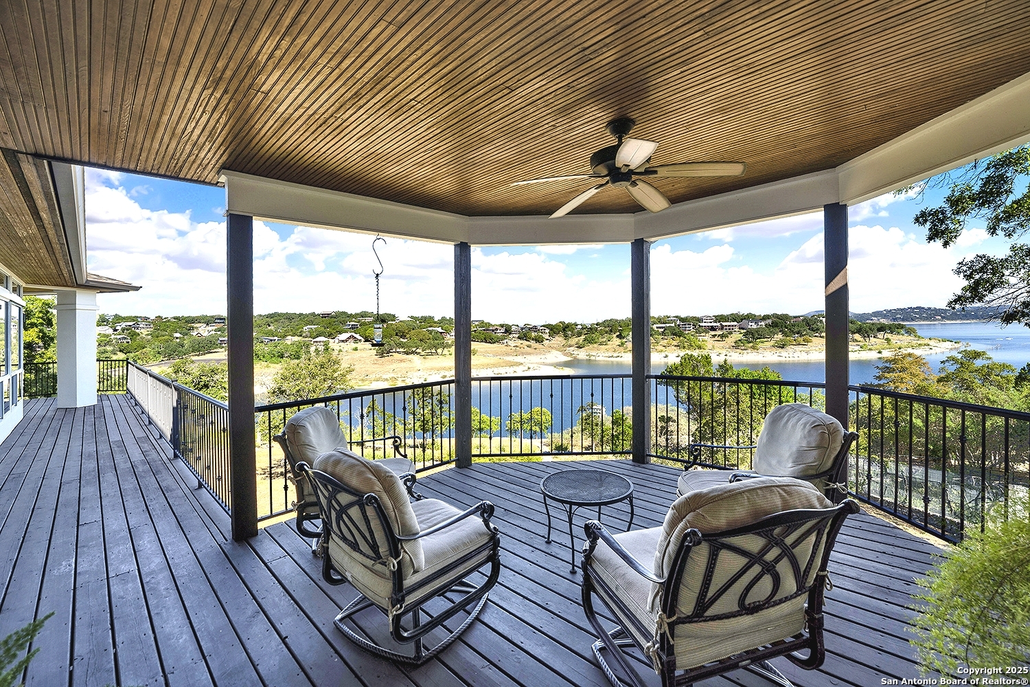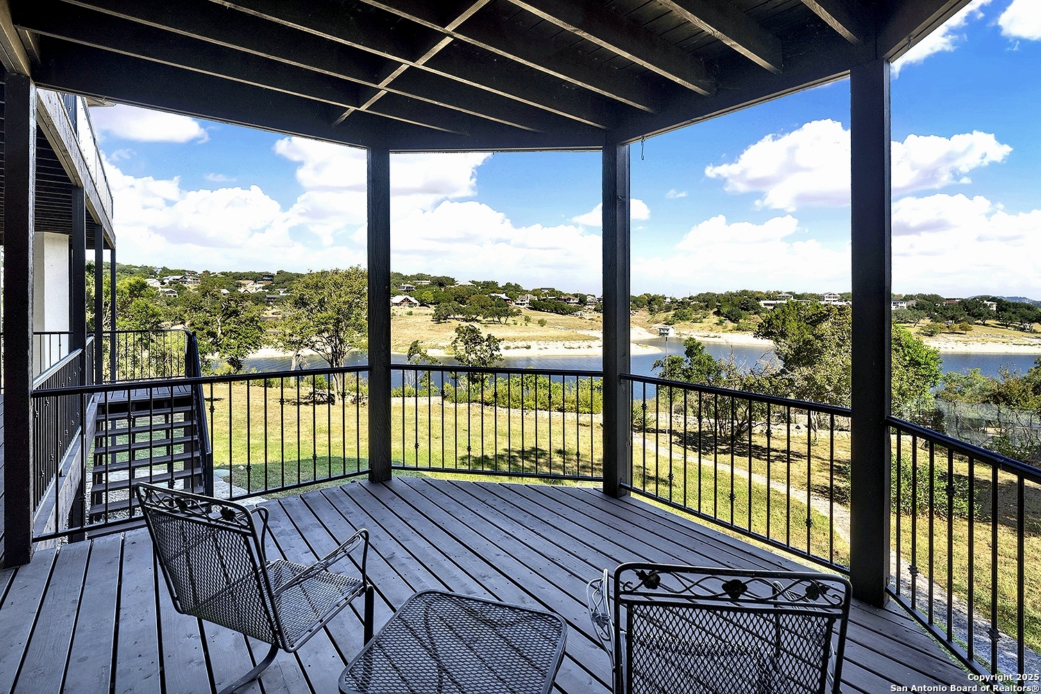 Your Waterfront Paradise Awaits! This dreamy two-story lake house beautifully remodeled in 2020 offers 4 spacious bedrooms, office, and 2.5 bathrooms, perfectly situated on the picturesque shores of Canyon Lake on Turkey Cove. With breathtaking views that will leave you in awe, this home is designed for both relaxation and entertaining! As you step inside, you'll be instantly greeted by an abundance of natural light streaming through large panoramic viewing windows! You will surely have plenty of room for guests or yourselves with seamless flow from the living area, kitchen, dining area & eat in kitchen seating. This home has some useful and unique features including a built in elevator shaft ready for an elevator to be installed if the need ever arises, abundant storage throughout with under stair storage offering the best hide & seek spots for kids and a kitchenette area in the secondary level family room! Step outside to the expansive decks on both the main and lower level, where you can soak in the sun, enjoy morning coffee and have a front row seat to the amazing annual 4th of July fireworks display just across the cove! Also with DIRECT waterfront access by rock staircase, you can enjoy all the recreational activities Canyon Lake has to offer! And the location, can't be beat-home is located on Turkey Cove, 10 minutes from White Water Amphitheater/Camp Fimfo, 20 minutes to Gruene and minutes from many great restaurants in Canyon Lake! Don't miss the chance to be a part of luxurious lakefront life!