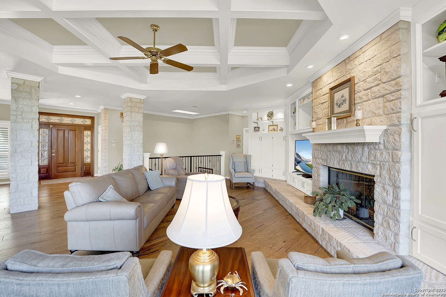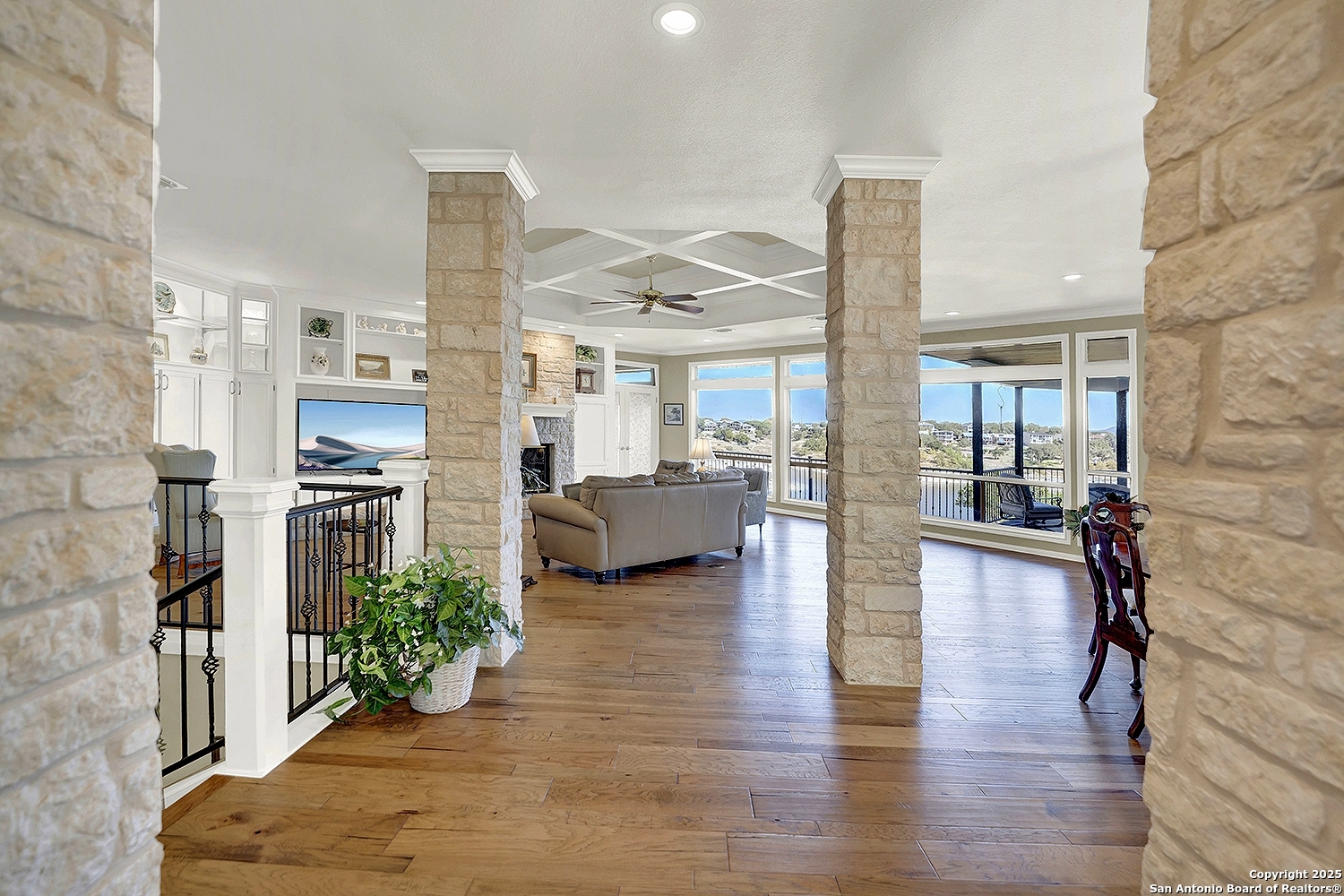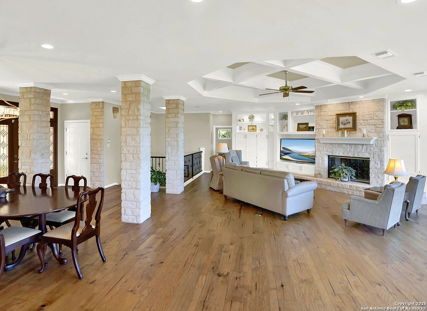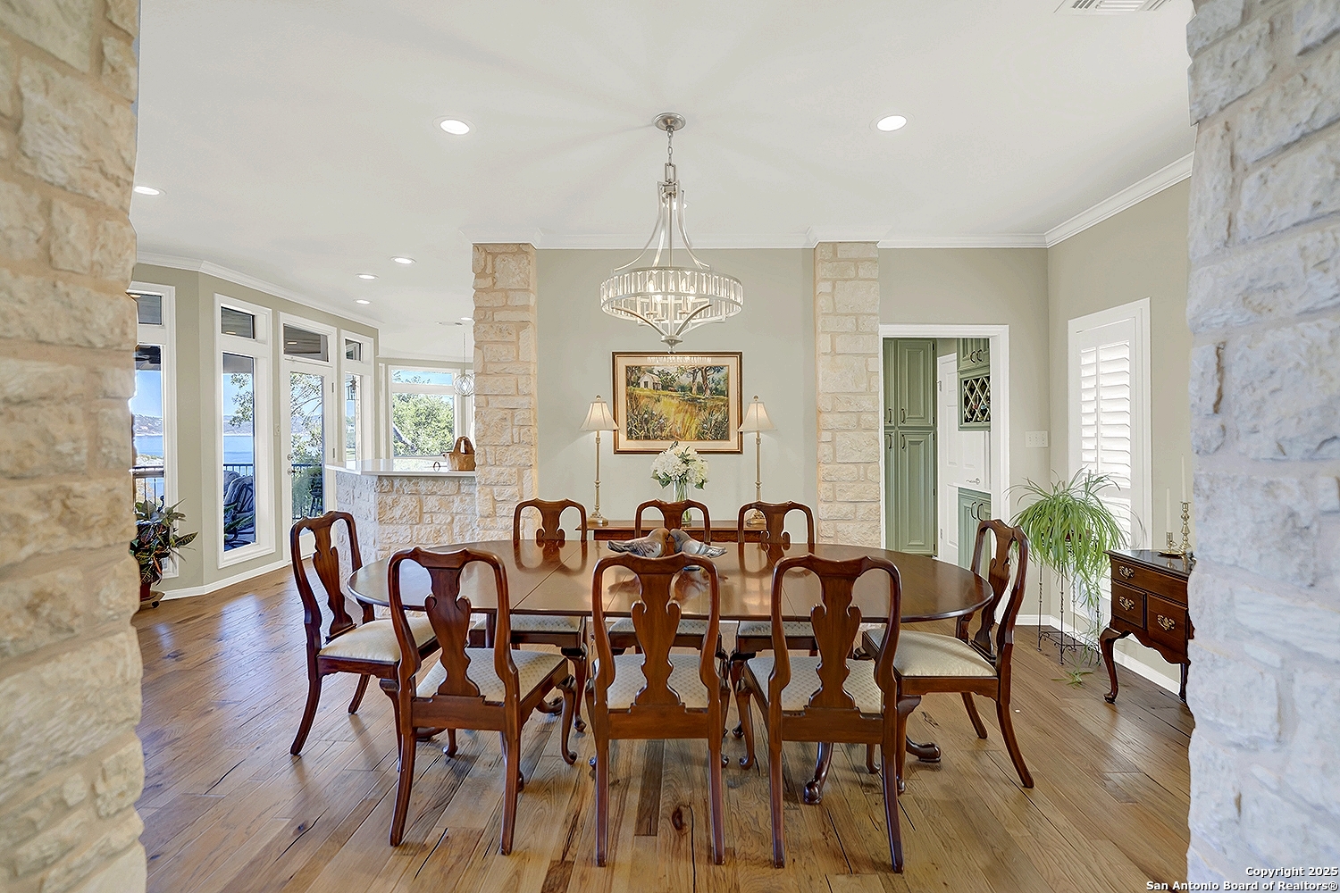 Your Waterfront Paradise Awaits! This dreamy two-story lake house beautifully remodeled in 2020 offers 4 spacious bedrooms, office, and 2.5 bathrooms, perfectly situated on the picturesque shores of Canyon Lake on Turkey Cove. With breathtaking views that will leave you in awe, this home is designed for both relaxation and entertaining! As you step inside, you'll be instantly greeted by an abundance of natural light streaming through large panoramic viewing windows! You will surely have plenty of room for guests or yourselves with seamless flow from the living area, kitchen, dining area & eat in kitchen seating. This home has some useful and unique features including a built in elevator shaft ready for an elevator to be installed if the need ever arises, abundant storage throughout with under stair storage offering the best hide & seek spots for kids and a kitchenette area in the secondary level family room! Step outside to the expansive decks on both the main and lower level, where you can soak in the sun, enjoy morning coffee and have a front row seat to the amazing annual 4th of July fireworks display just across the cove! Also with DIRECT waterfront access by rock staircase, you can enjoy all the recreational activities Canyon Lake has to offer! And the location, can't be beat-home is located on Turkey Cove, 10 minutes from White Water Amphitheater/Camp Fimfo, 20 minutes to Gruene and minutes from many great restaurants in Canyon Lake! Don't miss the chance to be a part of luxurious lakefront life!