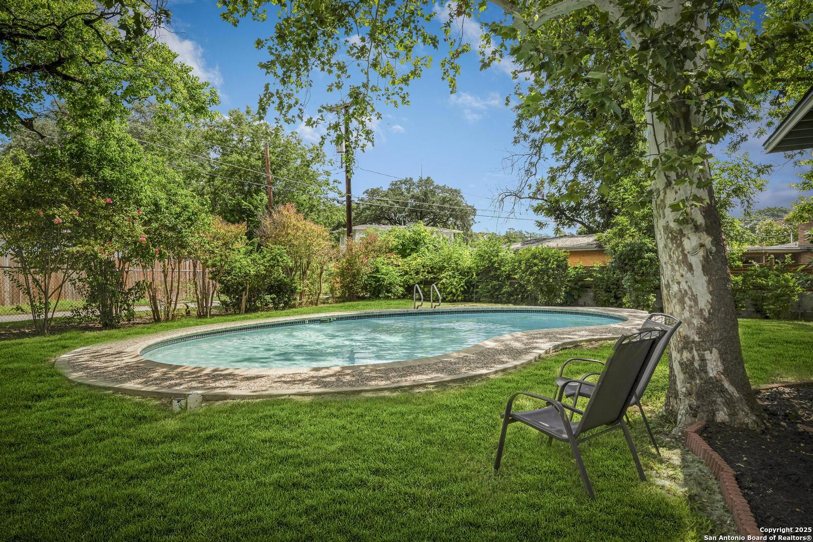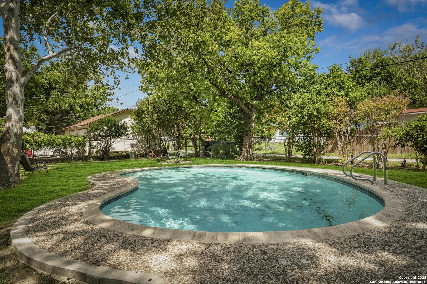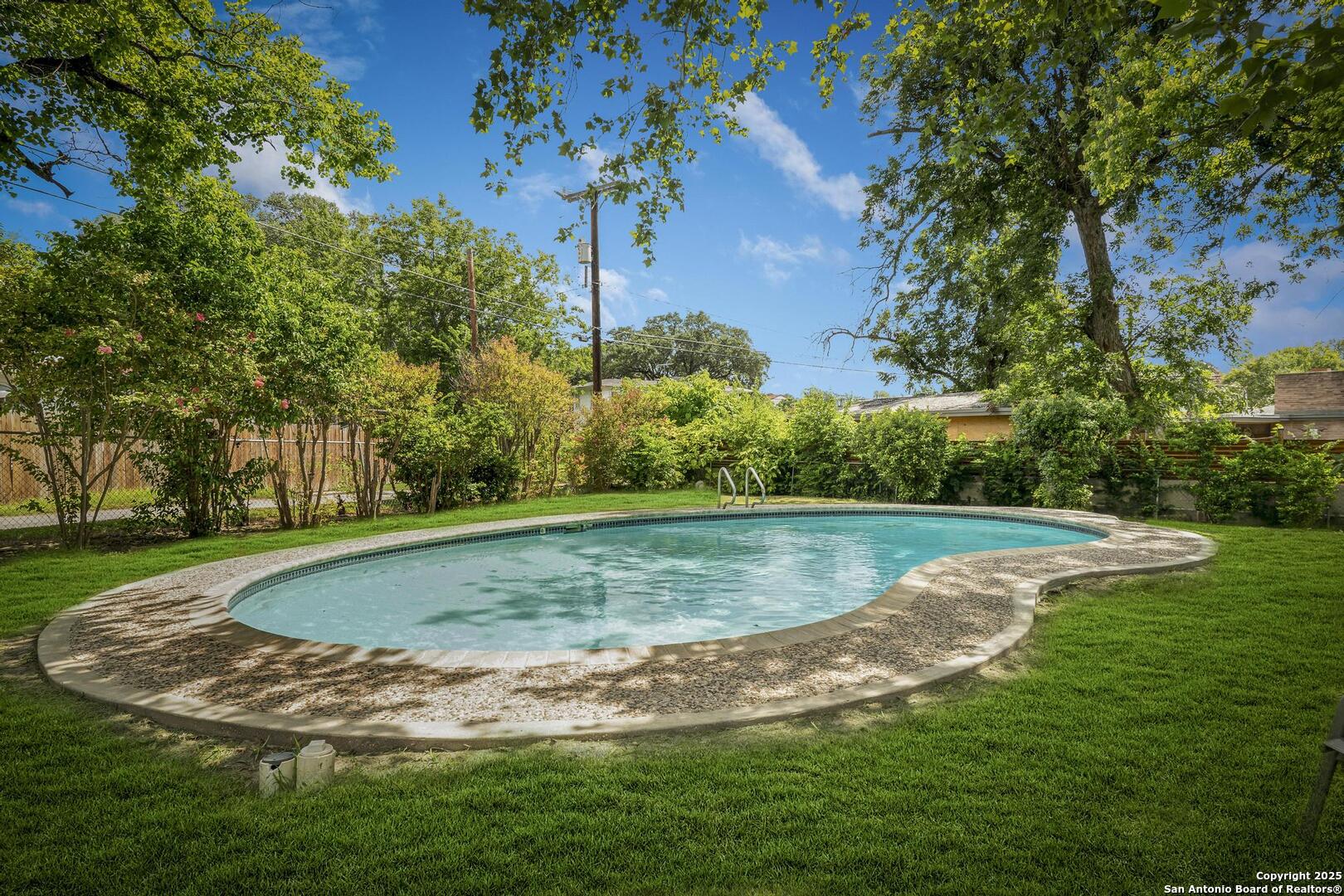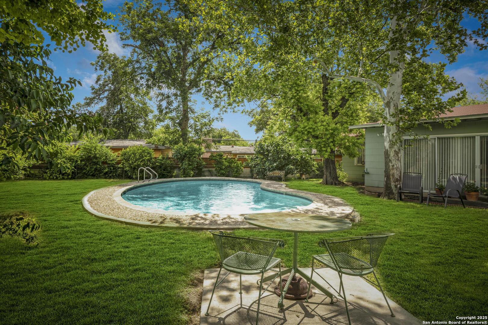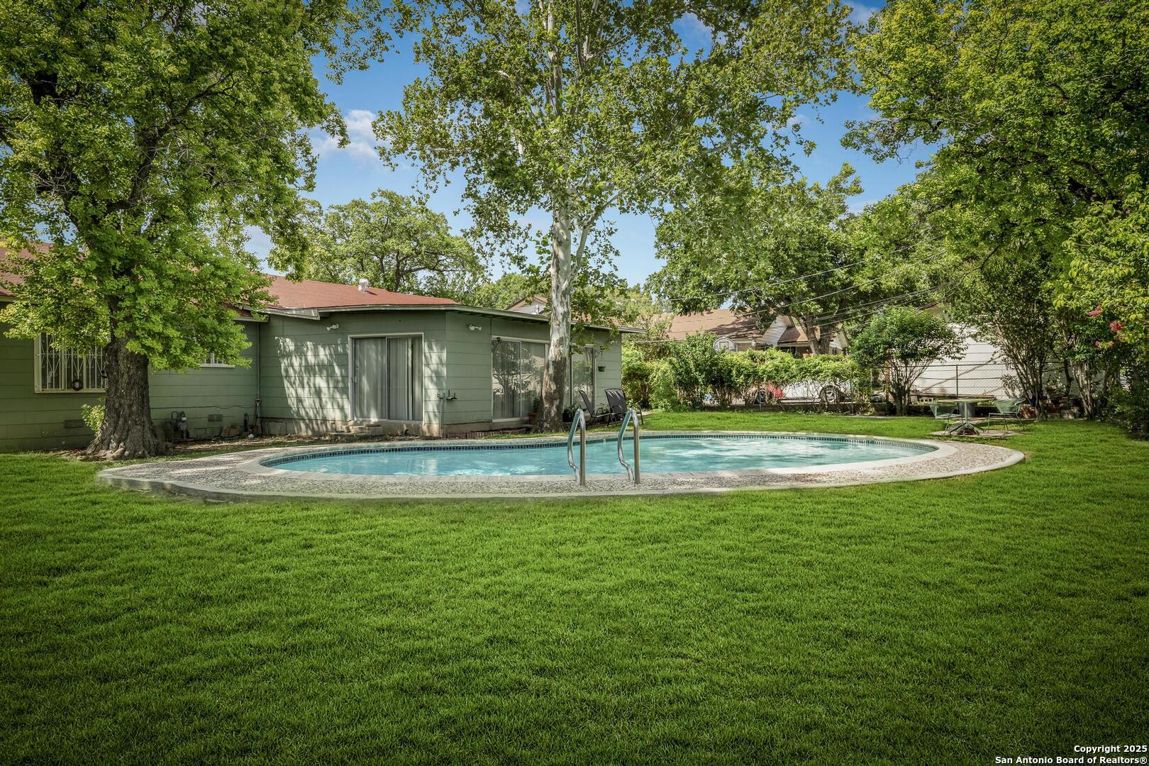 Classic Timeless Charm, beautifully maintained mid-century residence in the heart of Jefferson Terrace. Built in 1951 and lovingly cared for by the same owners for decades, this home offers a rare opportunity to own a piece of local history with modern comfort and convenience. Step inside to discover pristine showroom oak wood floors and a spacious open-concept layout that seamlessly connects the living, dining, and kitchen areas. The large bonus room at the rear of the home provides a perfect view of the inviting in-ground pool-an ideal space for relaxing or entertaining year-round. This single-story home features three comfortable bedrooms and one full bath, all thoughtfully arranged to maximize flow and natural light. Recent updates include a modernized sewage system (within the last two years), ensuring peace of mind for years to come. Enjoy easy access to major thoroughfares including Loop 410, US Hwy 90, Hwy 151, and IH-10, making your commute a breeze. Just minutes from the Medical Center, Downtown, and local universities such as St. Mary's and Our Lady of the Lake. Located near Jefferson High School and Woodlawn Lake Park, this home offers both convenience and a strong sense of community. Experience the enduring quality and charm of this well-built home-schedule your private tour today.