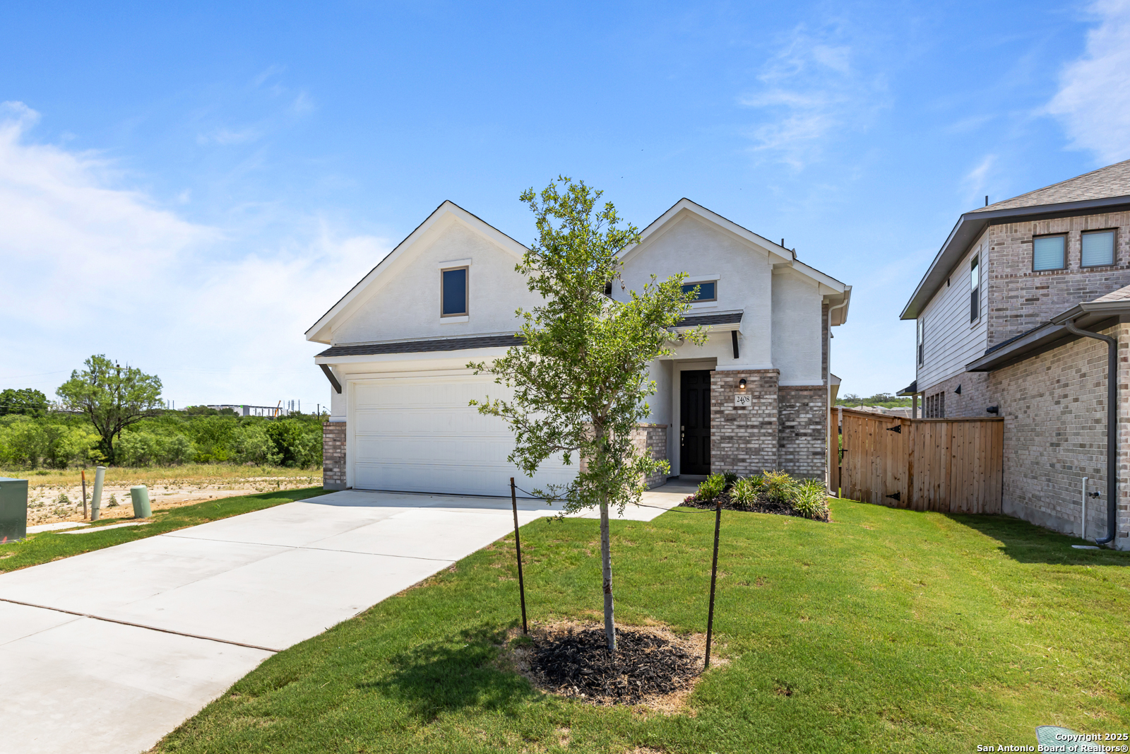 The Muenster floorplan is a thoughtfully crafted single-story home, perfect for those seeking comfort and practicality. This layout features 3 bedrooms and 2 bathrooms, offering a well-balanced space for both relaxation and daily living. At the heart of the home, the open-concept design connects the kitchen, dining area, and family room, creating an ideal setting for entertaining or spending time with loved ones. The primary suite provides a private sanctuary, complete with a well-appointed bath and a walk-in closet for ample storage. Two additional bedrooms are versatile, making them suitable for guests, children, or a home office. A two-car garage completes the home, ensuring plenty of room for vehicles and extra belongings. With its blend of functionality and modern design, the Muenster floorplan is a standout choice for a wide range of lifestyles.