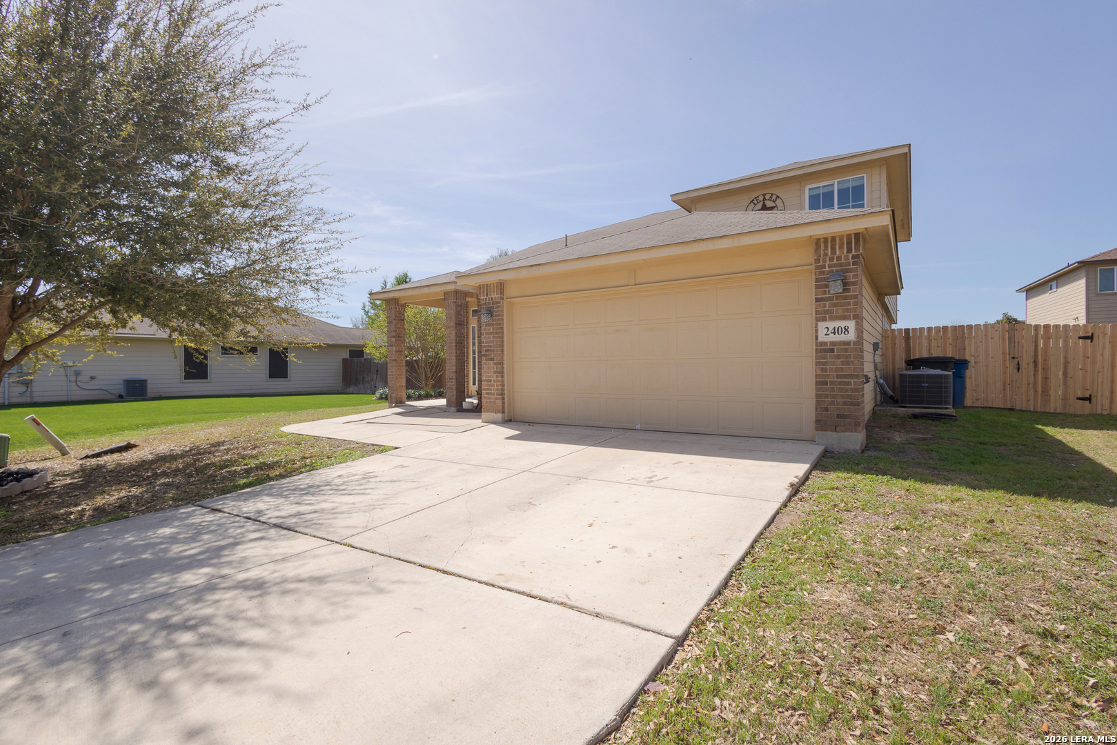Located at the end of a quiet cul-de-sac on a spacious, level lot, this charming four-bedroom, two-and-a-half-bath home offers the perfect setting for everyday family life. From the moment you step inside, you're welcomed by a bright and open living area with soaring ceilings and beautiful laminate flooring, creating a warm and inviting space to gather and relax. Just beyond, the kitchen and dining area feel like the heart of the home, featuring tile flooring and soft recessed lighting an ideal place for morning coffee, gatherings, and everything in between. The downstairs primary bedroom offers a private retreat, conveniently located near the laundry room for everyday ease. Upstairs, the additional bedrooms are generously sized, each designed with ceiling fans, cable wiring, and spacious closets to keep life organized and comfortable. Outside, the peaceful setting provides room to breathe while still keeping you close to everything you need. Shopping, schools, and the vibrant downtown area are just minutes away, with quick access to IH-35 making travel to San Marcos or San Antonio simple and convenient. This home offers the perfect blend of quiet living and everyday convenience, an opportunity you won't want to miss!