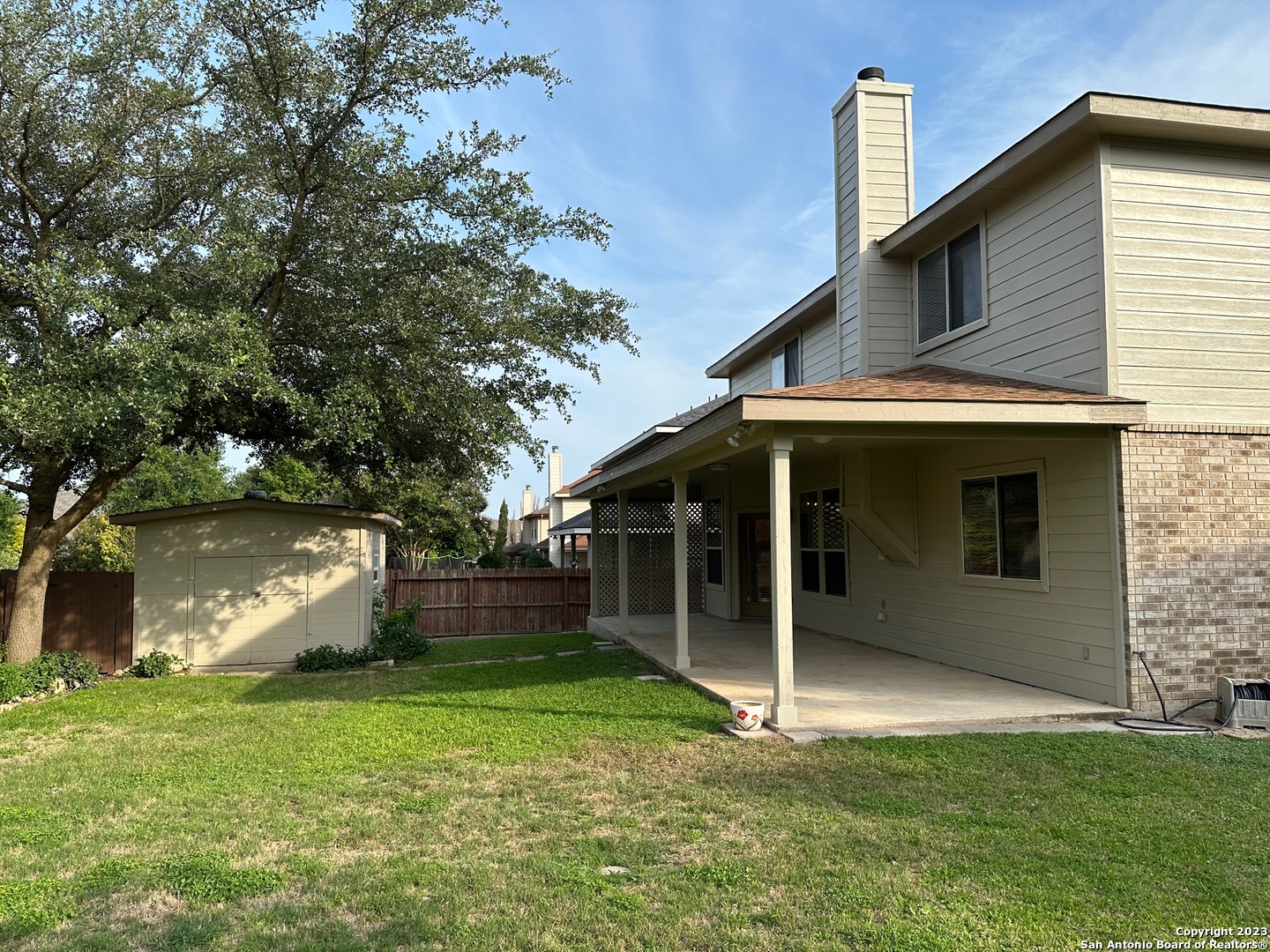LOVELY HOUSE ON OVERSIZE CORNER LOT, BEUTIFULLY LANDSCAPED FRONT AND BACK, mature trees, LARGE COVERED PATIO, 5TH BEDROOM IS DOWN NEXT TO FULL BATH, PET FRIENDLY, HAS FULL SPRINKLER SYSTEM, WATER SOFTENER, FIREPLACE IN FAMILY ROOM, HIGH CEILINGS, ALL KITCHEN APPLIAN. STAINL. STEEL, STORAGE SHED, GREAT FOR ENTERTAINING, CLOSE TO MAJOR SHOPPING AND MINUTES FROM RANDOLPH AFB AND SAM HOUSTON BASE. VERY QUITE NEIGHB AND AN EXEMPL SCHOOL DISTRIC