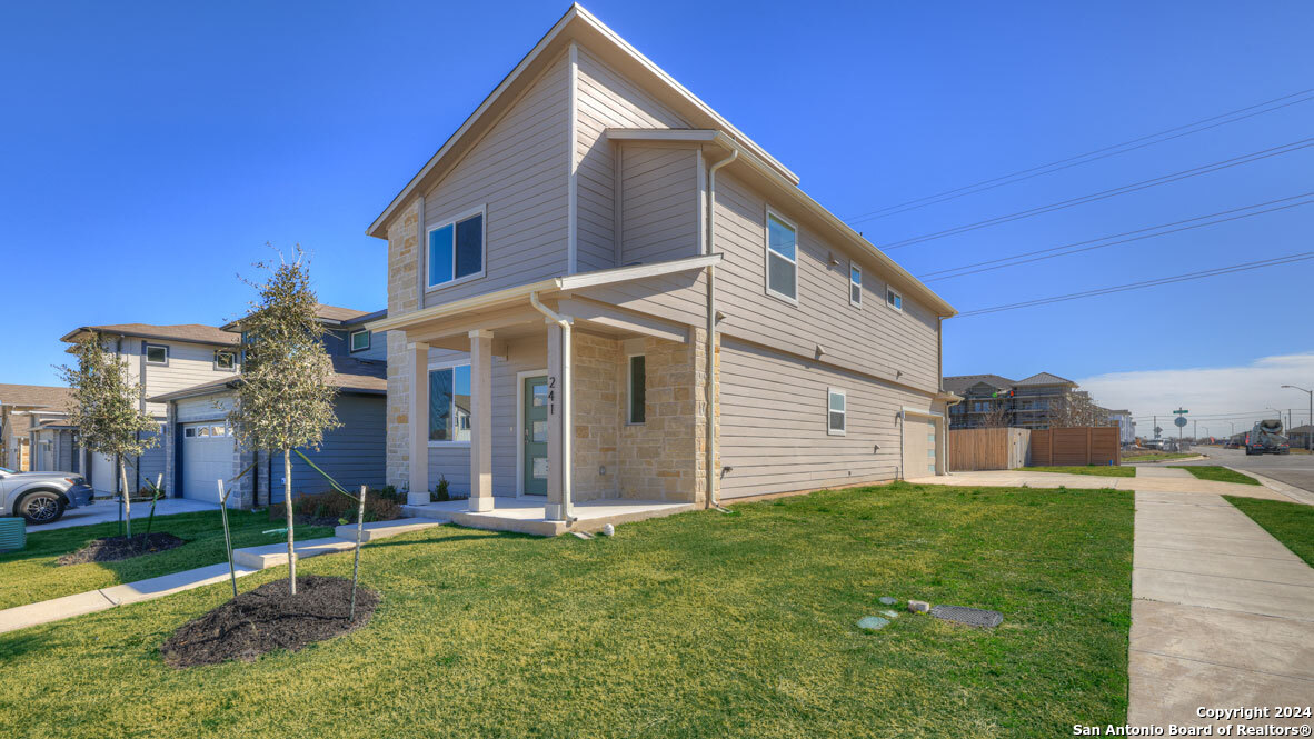 MOVE IN READY! LOCATED NEXT TO I-35! CORNER LOT! The Newhaven is a two-story floor plan that offers 1,854 square feet of living space across 4 bedrooms and 3.5 bathrooms. Entering the home from the inviting front porch, you'll find yourself in the living room. The living room flows into the open concept dining room and kitchen. The kitchen features stainless steel appliances throughout, quartz countertops, and decorative tile backsplash. The first floor also features a half bath, a spacious utility room and a large covered patio. Making your way upstairs you'll find all three extra bedrooms, two extra bathrooms and a spacious storage closet. Lastly, the main bedroom, bedroom 1, features a large bathroom and walk-in closet. The Newhaven also features a covered patio, full sod and irrigation, and gutters on the front, sides, and back of the house. This home includes our HOME IS CONNECTED base package which includes the Alexa Voice control, Front Door Bell, Front Door Deadbolt Lock, Home Hub, Light Switch, and Thermostat.