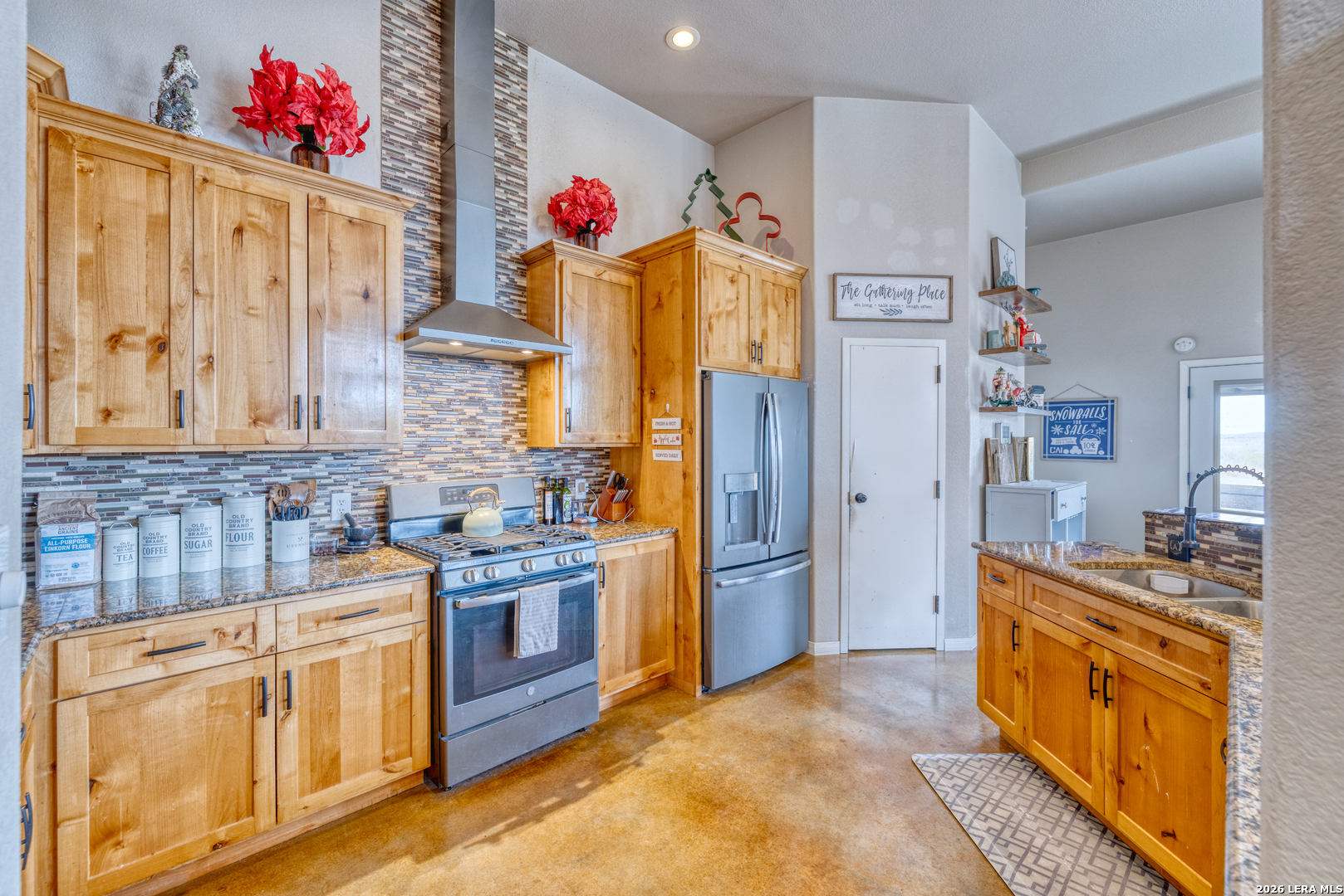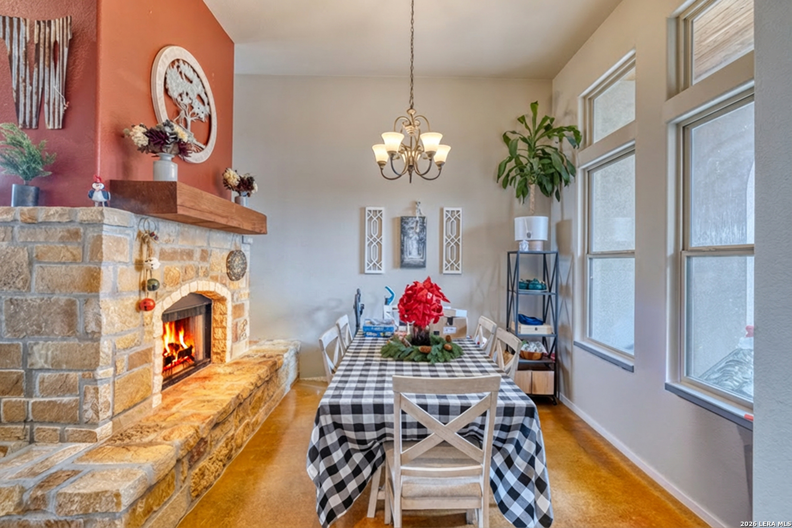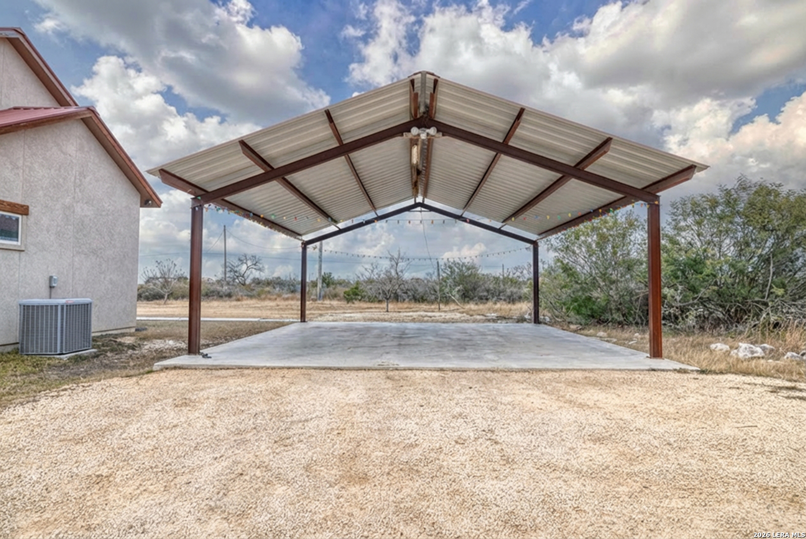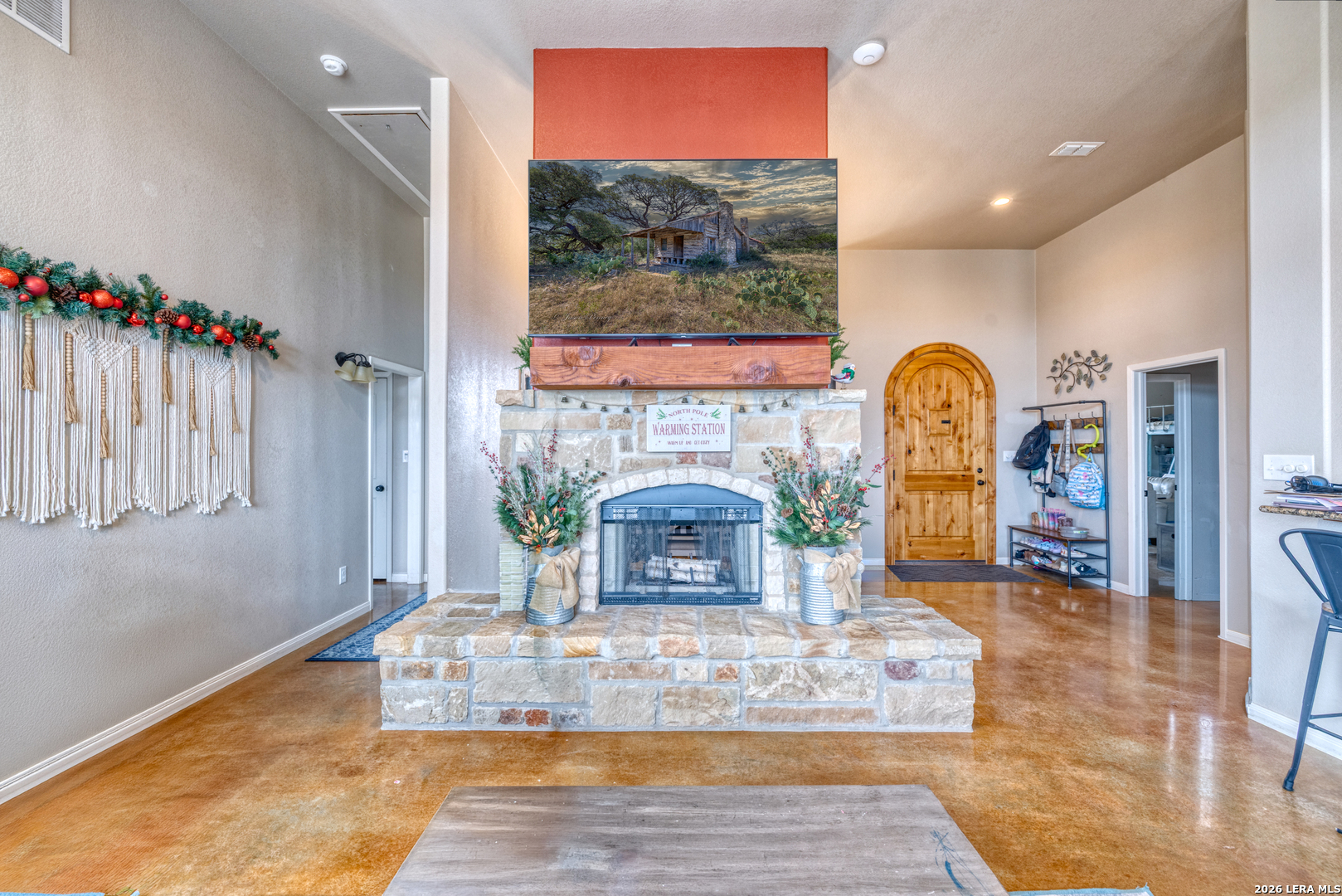 This charming and private 3-bedroom, 2-bath stone and stucco home offers the perfect blend of comfort and convenience just minutes from town. A metal roof, electric automatic gate, new fencing, and rock wall enhance both durability and privacy. Inside, the home features a large game room complete with a projector screen, ideal for entertaining or relaxing. The living area is anchored by a double fireplace, creating a cozy and inviting atmosphere. The primary suite includes a tub and separate shower, a huge walk-in closet, and doors leading directly to the exterior. A water softener adds everyday comfort and efficiency. Outdoor amenities include covered porches, covered metal parking, and an above-ground pool that will stay with the property. With its private setting, charming character, and close-to-town location, this home offers a rare combination of space, functionality, and appeal.
