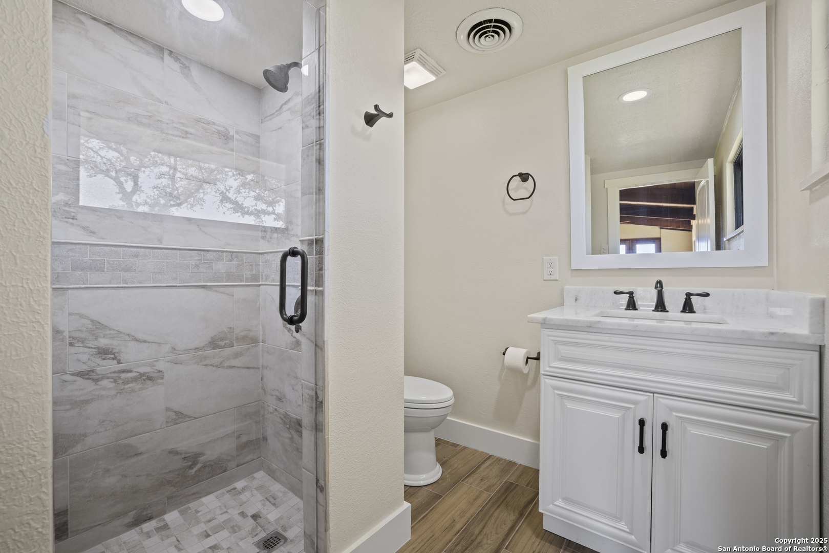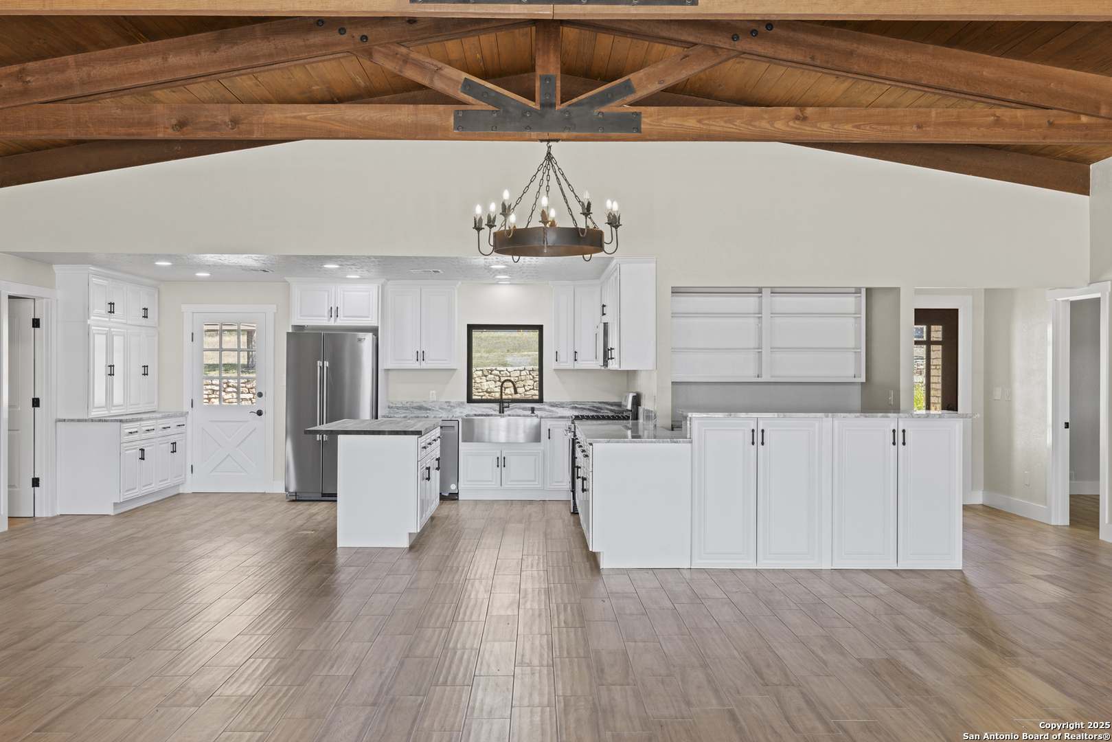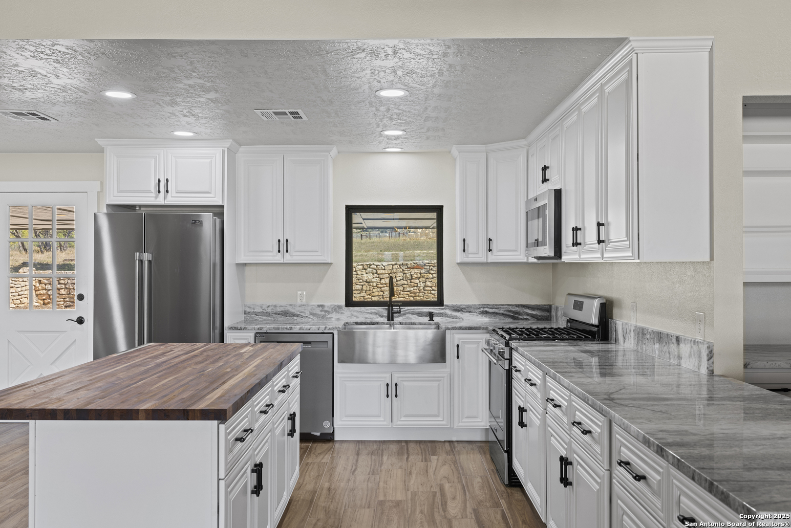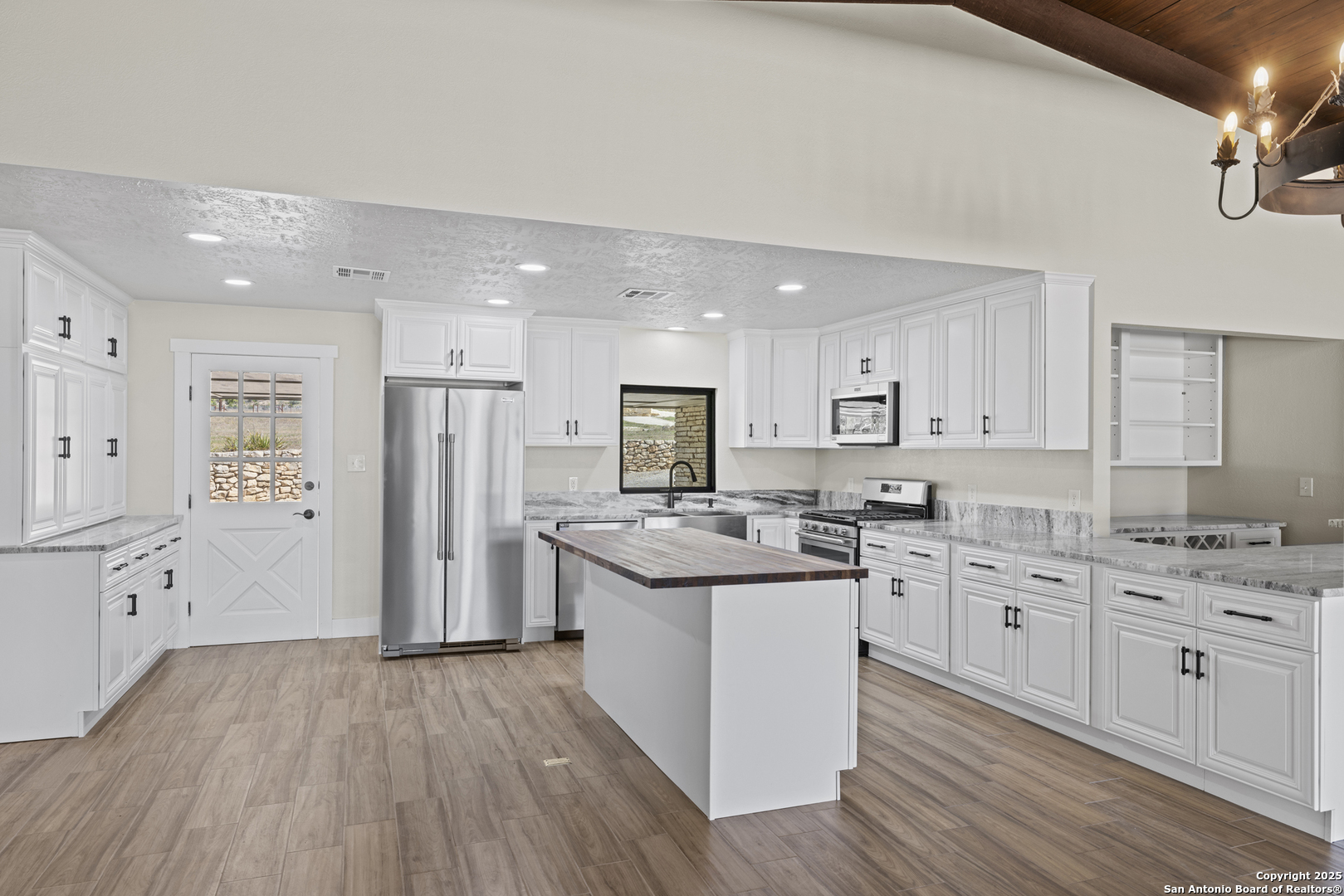 This 149-acre estate on Hwy 87 in Comfort, Texas, offers 1,800 ft of North Creek frontage and a remodeled 4-bed, 4-bath home. The house features high ceilings, exposed trusses, an open-concept layout, a chef's kitchen with marble countertops and stainless steel appliances, and a wet bar with wine refrigerators. The living room boasts a masonry fireplace and floor-to-ceiling windows with panoramic views. The property offers breathtaking hilltop vistas of the Texas countryside and abundant wildlife, including Axis, Blackbuck, Whitetail, Turkey, and Hogs. Conveniently located near Fredericksburg, Comfort, and Kerrville, it's also livestock-permitted with working pens and loading chutes. 241 N Hwy 87 is ideal for those seeking an adventurous yet refined Texas lifestyle.