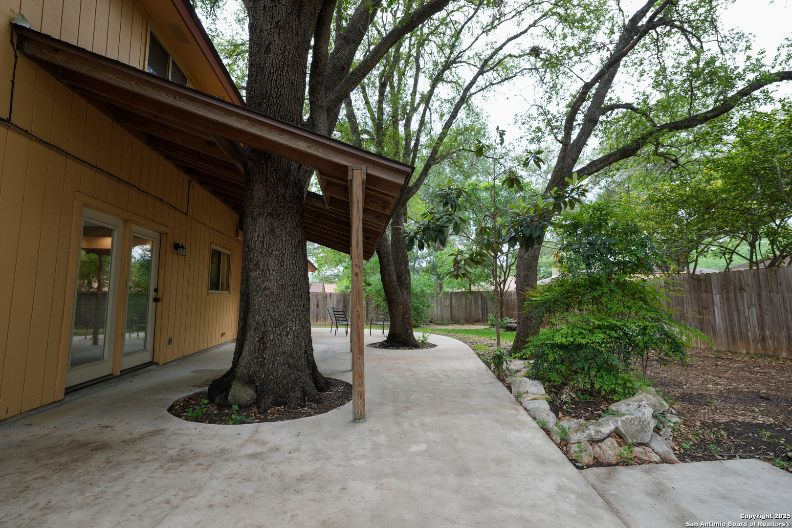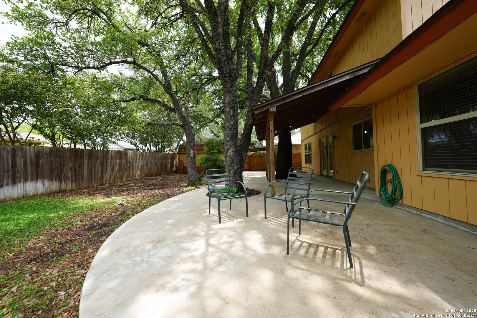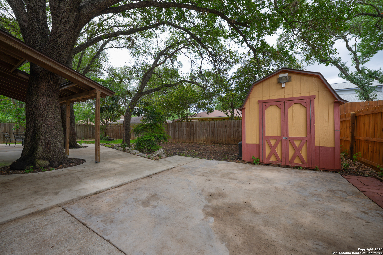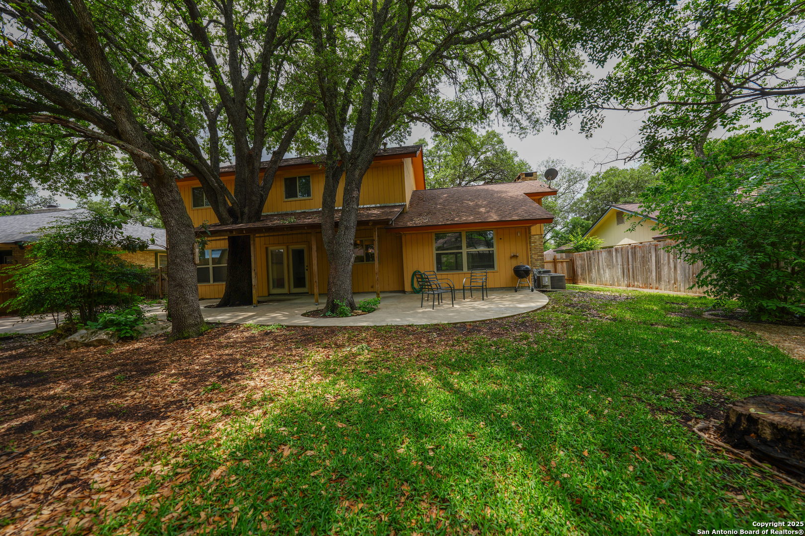 Welcome home to this 4/2/1 Thousand Oaks neighborhood residence located walking distance to the local Elementary. Perfect for a family looking to grow into a home offering a great location and a quiet neighborhood. This charming 70's house offers an inviting vaulted ceiling living and dining room combo with large windows and prominent brick fireplace with built in custom cedar shelving and bookcase. The updated kitchen with easy quartz countertop sits separate from the living area and offers a breakfast area that includes a dedicated office nook. The spacious bright primary bedroom is situated on the main level with walk in closet and wheelchair accessible primary bath. The remaining three bedrooms are located upstairs along with a temp controlled play or craft room. In the shady private back yard a large covered patio is perfect for entering. There is a storage shed in place for a great work shop, or garden supplies. A perfect location, this home is close to shops, dinning and groceries in a beautifully maintained oak filled community.