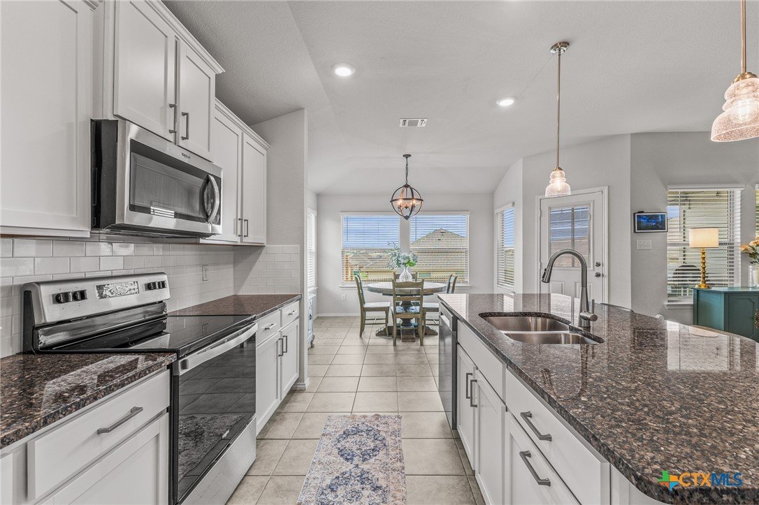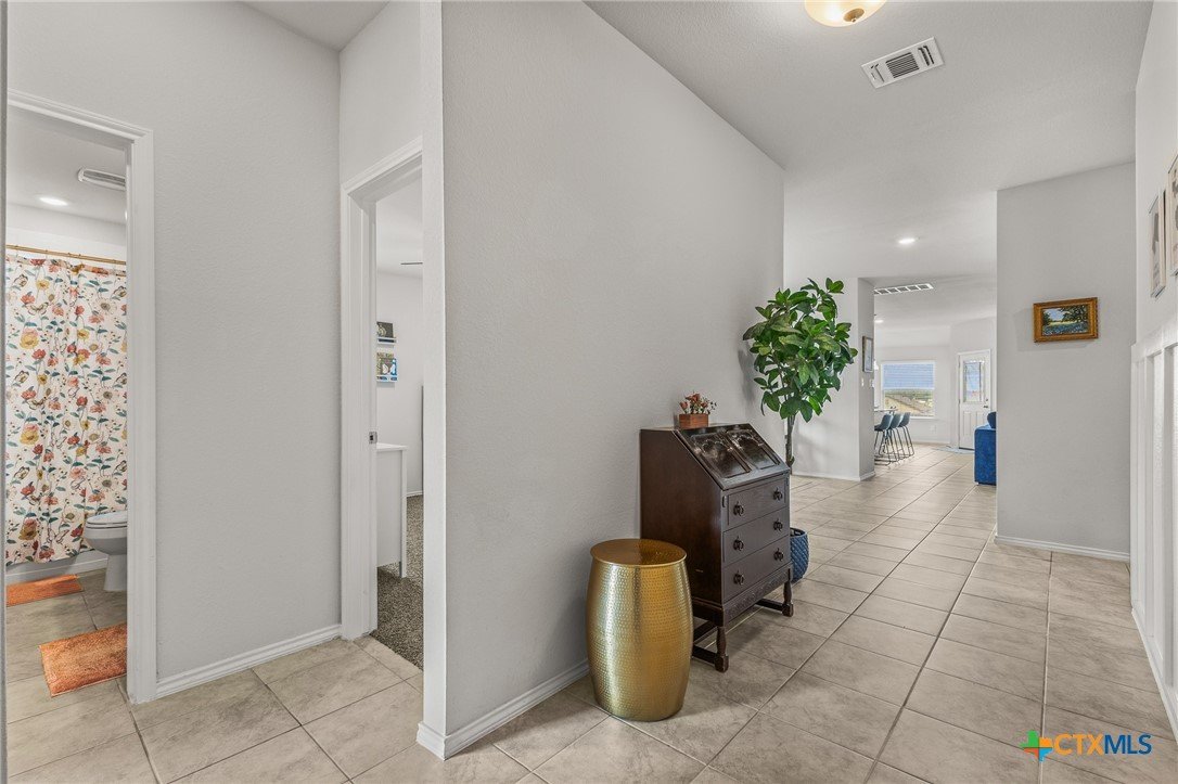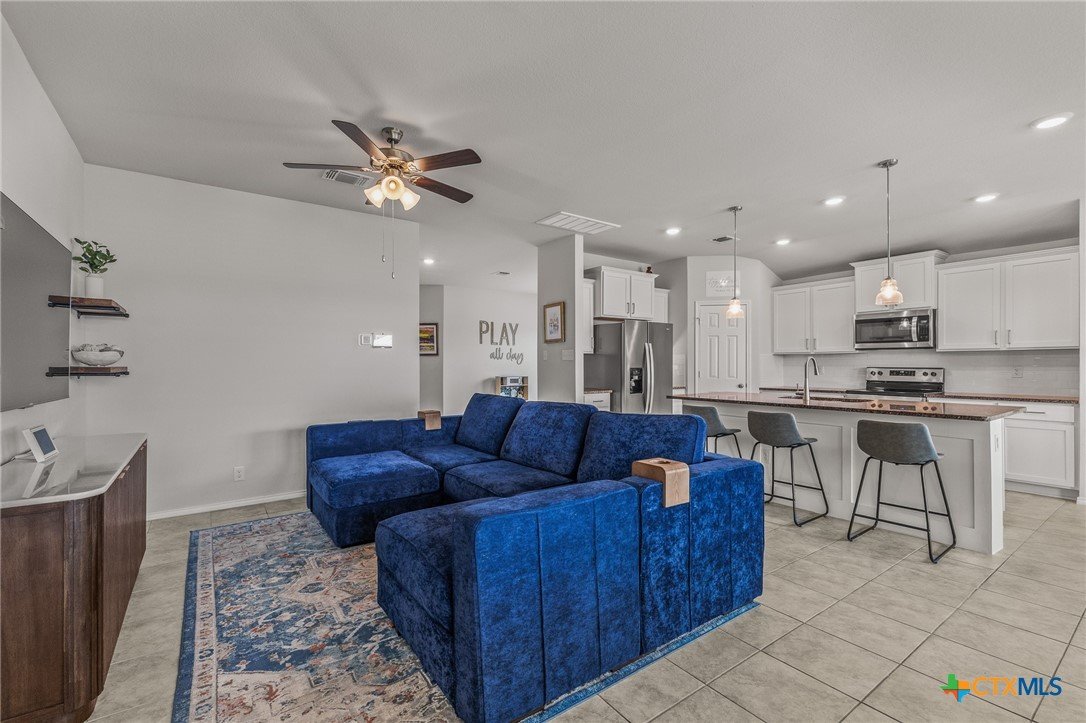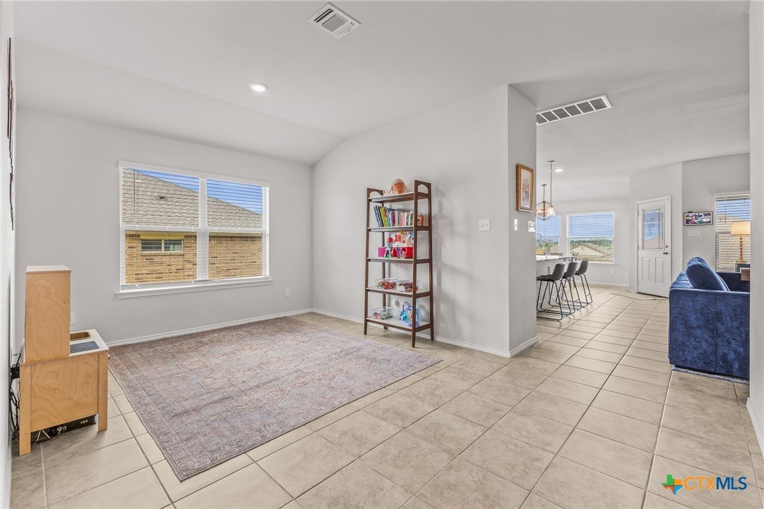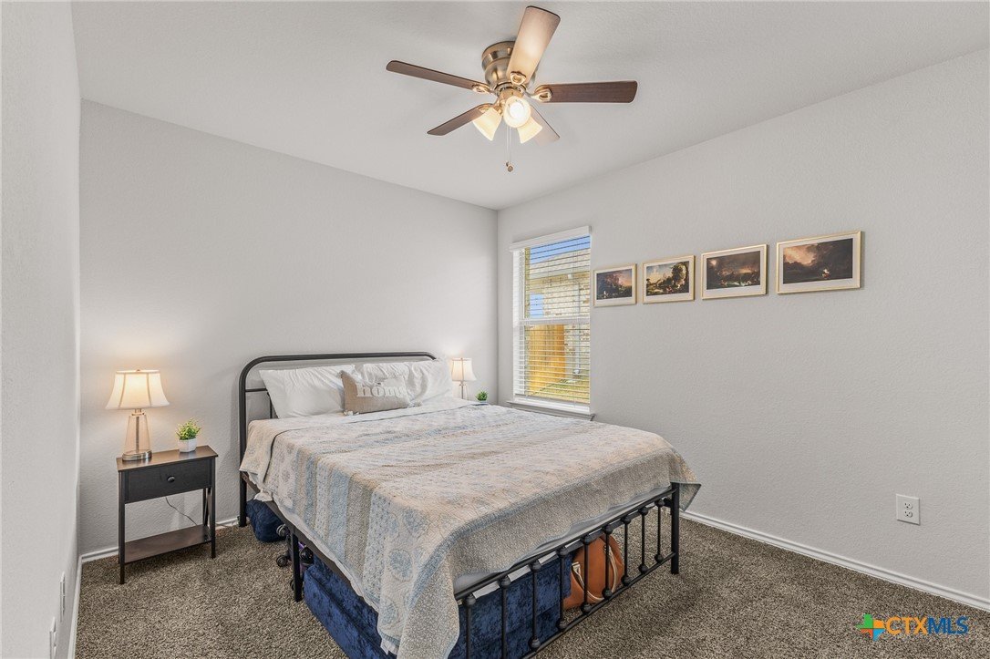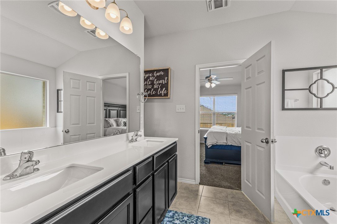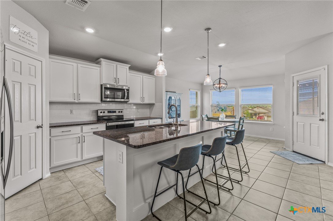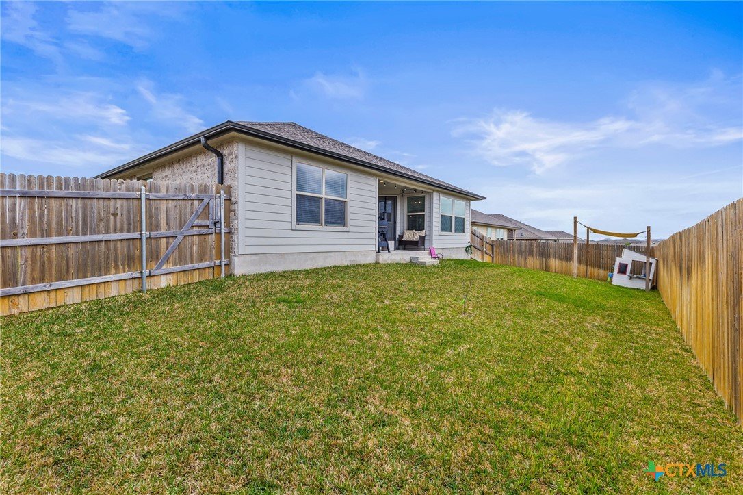Completed in 2023, this Harker Heights home offers 4 bedrooms, 3 bathrooms, and 2,083 square feet with a functional one story layout. Interior features include a formal dining area that can also serve as a flex space, an eat in kitchen with granite countertops, center island, walk in pantry, and open flow to the main living areas. The split floorplan offers added privacy, while the laundry room is thoughtfully designed with access from both the hallway and the primary closet for everyday convenience. The primary suite includes double vanities, a garden tub, separate shower, and walk in closet. Exterior features include a covered patio, private backyard, and access to community amenities including a pool, playground park, BBQ area, maintained neighborhood entry, and a connected walking trail. Conveniently located near schools, shopping, dining, and Fort Hood.