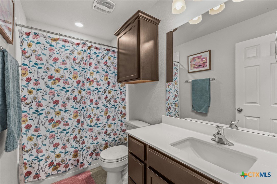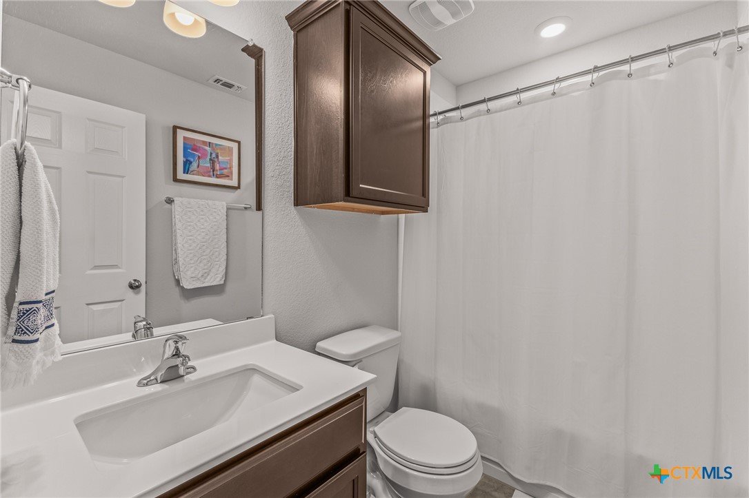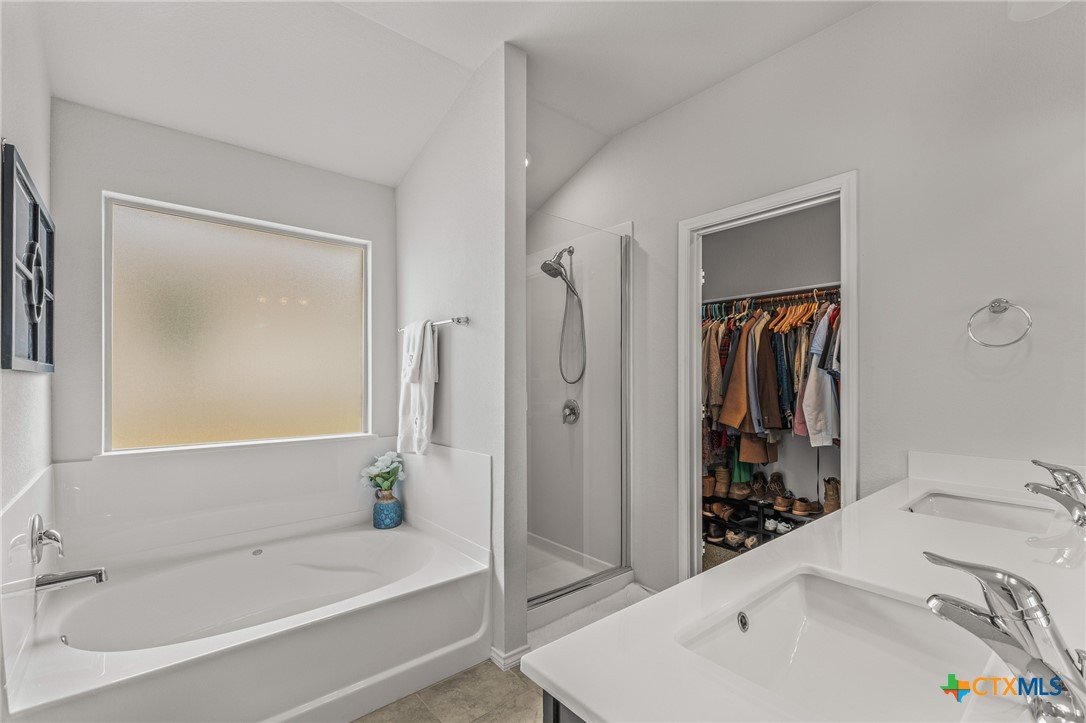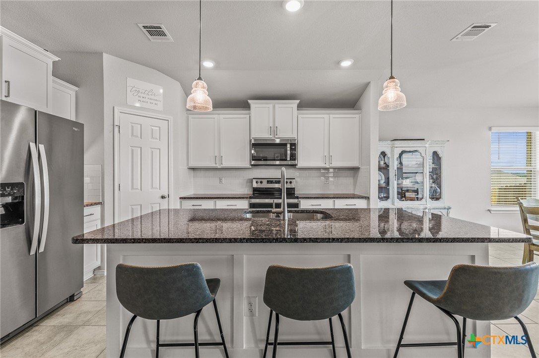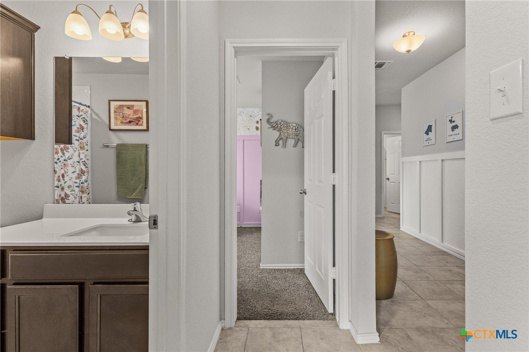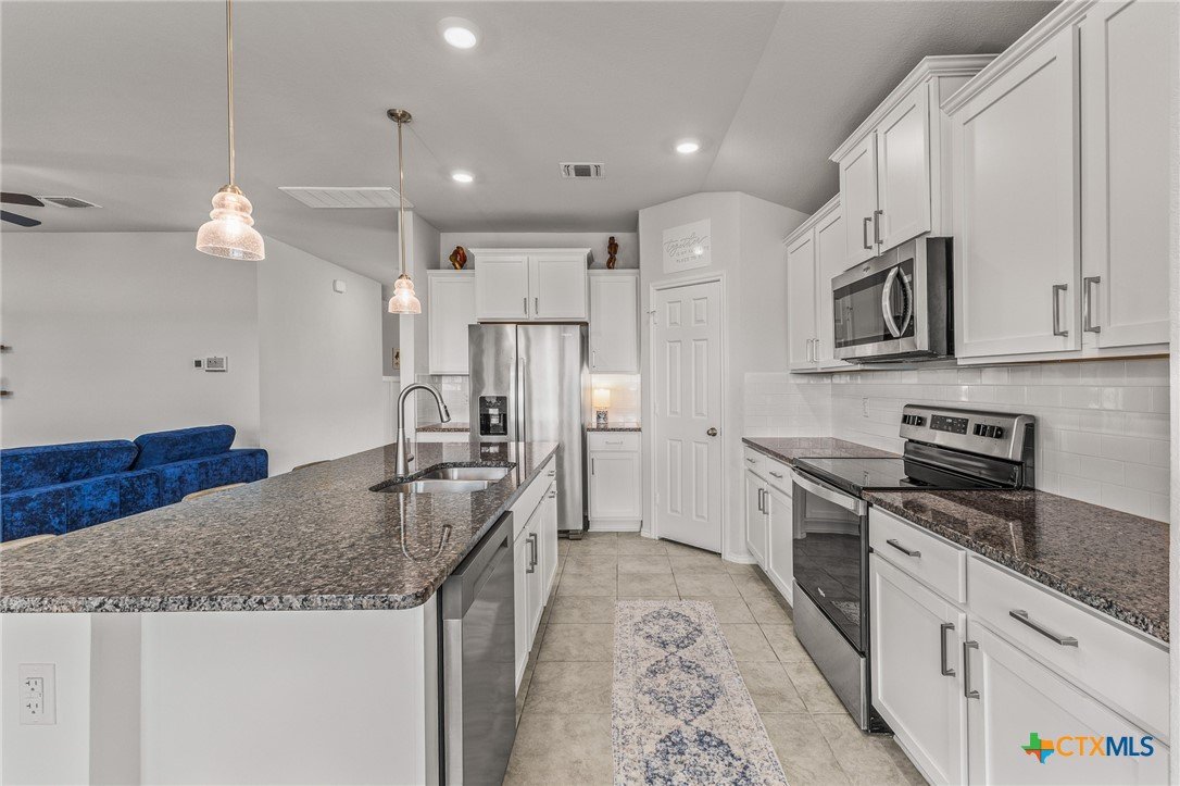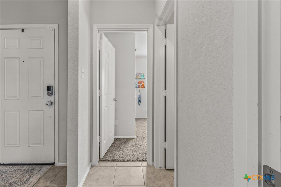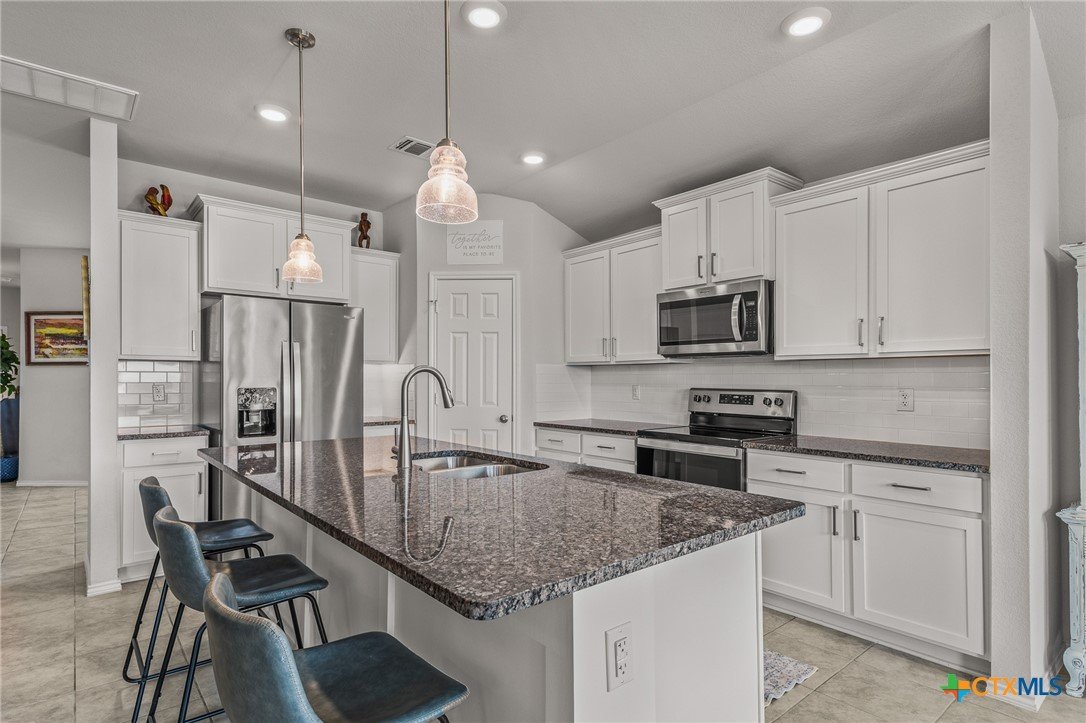 Completed in 2023, this Harker Heights home offers 4 bedrooms, 3 bathrooms, and 2,083 square feet with a functional one story layout. Interior features include a formal dining area that can also serve as a flex space, an eat in kitchen with granite countertops, center island, walk in pantry, and open flow to the main living areas. The split floorplan offers added privacy, while the laundry room is thoughtfully designed with access from both the hallway and the primary closet for everyday convenience. The primary suite includes double vanities, a garden tub, separate shower, and walk in closet. Exterior features include a covered patio, private backyard, and access to community amenities including a pool, playground park, BBQ area, maintained neighborhood entry, and a connected walking trail. Conveniently located near schools, shopping, dining, and Fort Hood.