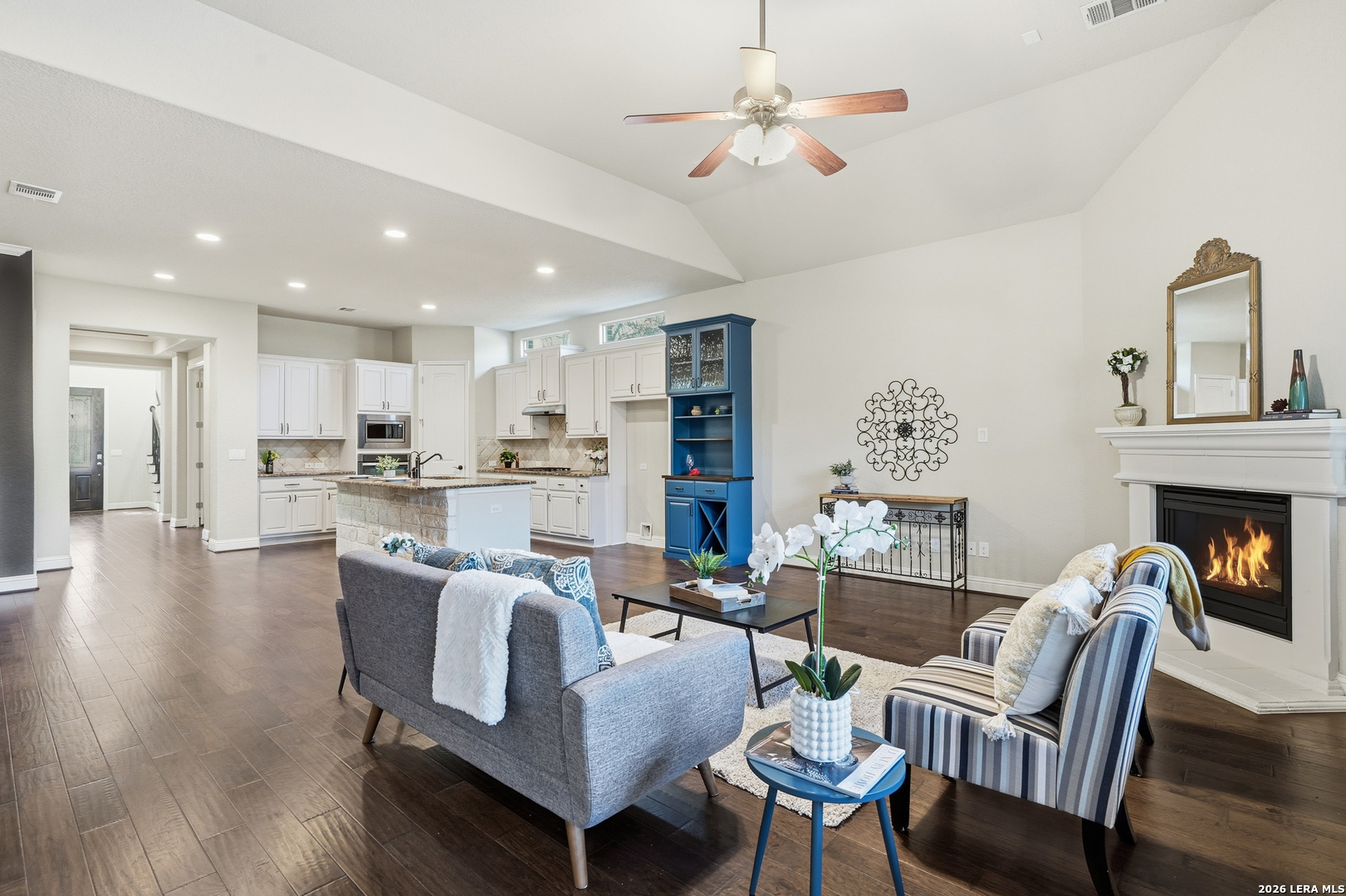 Step into your next chapter where luxury living meets everyday comfort in this stunning 4-bedroom + 3.5-bath home in sought after Terra Bella! With a spacious open-concept design, this move-in ready home features elegant tile, wood, and laminate flooring throughout - no carpet, just style and durability with easy maintenance for everyday life. The gourmet kitchen boasts stainless steel appliances, island, abundant counter space, and seamless flow into the main living and dining areas - ideal for entertaining. The primary suite on the main level provides a spa-like retreat with dual vanities, a relaxing soaking tub and large walk-in closet. A private study with tray ceiling offers an ideal space for working from home. Upstairs, a versatile loft creates the ideal space for a game room, homework zone, or second living room, giving everyone room to spread out. Enjoy outdoor living year-round on the covered patio with an outdoor kitchen made for weekend barbecues and celebrations. Located in a vibrant and desirable master-planned gated community with a clubhouse, swimming pool, and walking trails, this home offers the lifestyle upgrade today's buyers are looking for - more space, more comfort, and more connection. New roof in 2025! Spacious, modern, and move-in ready - this is a home you won't want to miss!