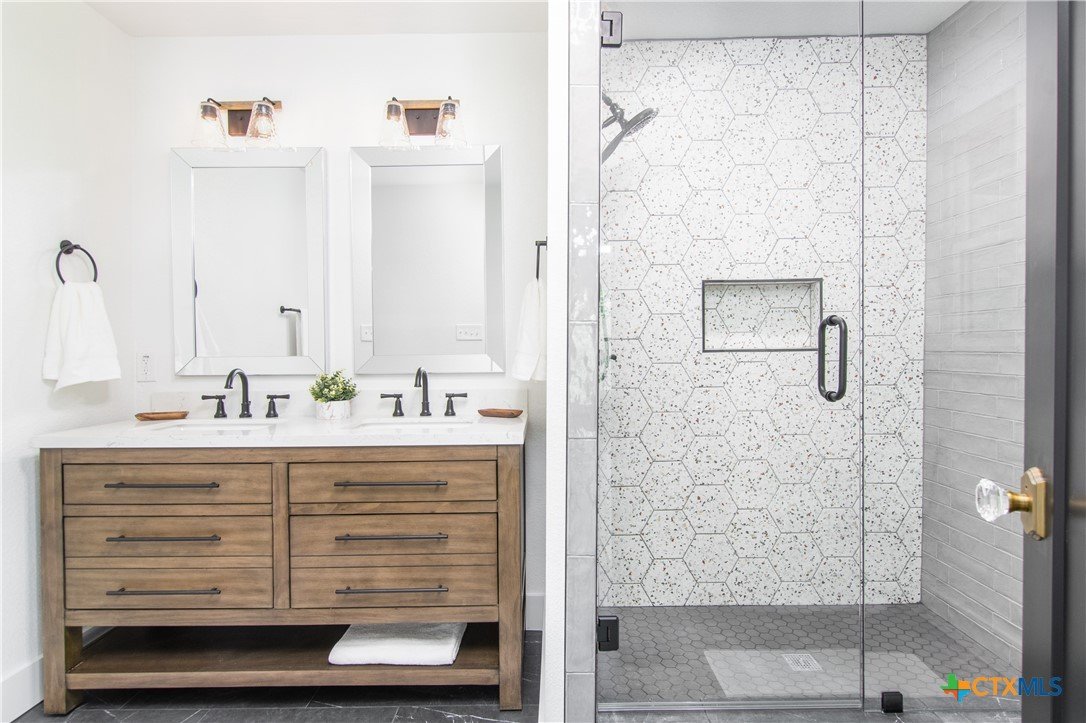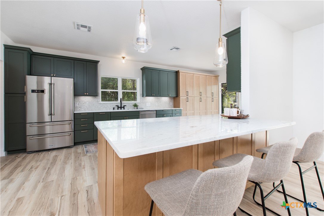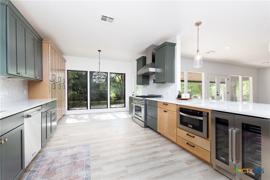 Stunning renovated and secluded ranch style home sitting on over an acre! This home is perfect for entertaining with a large living and dining area connected to the open kitchen. The kitchen features new cabinetry, a Thor Appliance package, marble countertops & back splash, plenty of storage, and floor to ceiling windows to enjoy the gorgeous view of the backyard. The appliance package includes refrigerator, gas stove, vented range hood, dishwasher, drawer microwave and wine cooler. Washer and dryer and new water softener system will also convey with the home. During the renovation great care was taken to maintain the charm and original details of the home while still offering an updated and modern feel. Nearly every area of the home has been rebuilt during the recent renovations including a new HVAC system, irrigation where needed, electrical, framing and subfloor, insulation, new plumbing and tankless water heater, windows, roof, gutters, garage door and more! Contact your realtor for a full list of upgrades and schedule your private showing today!