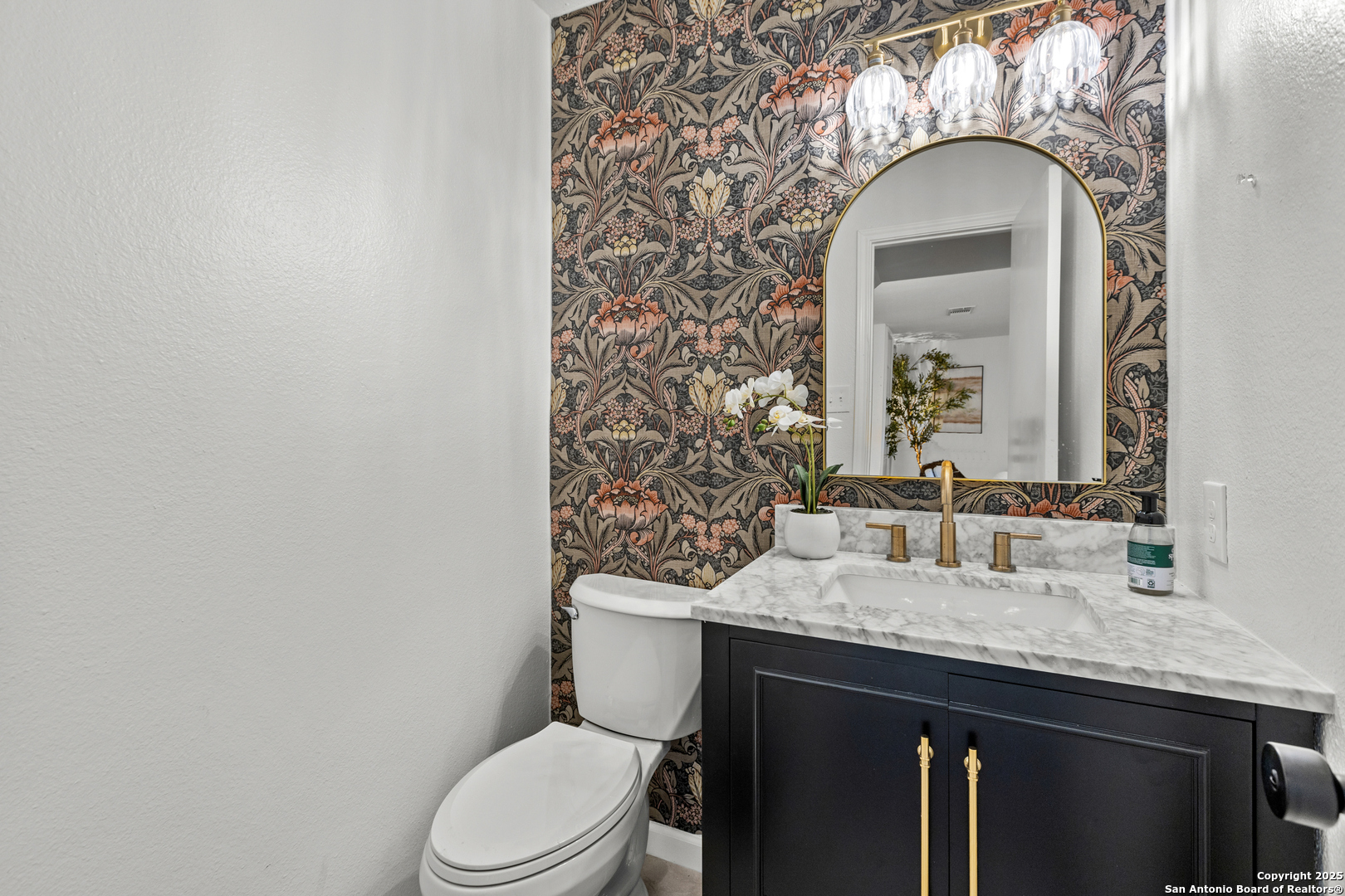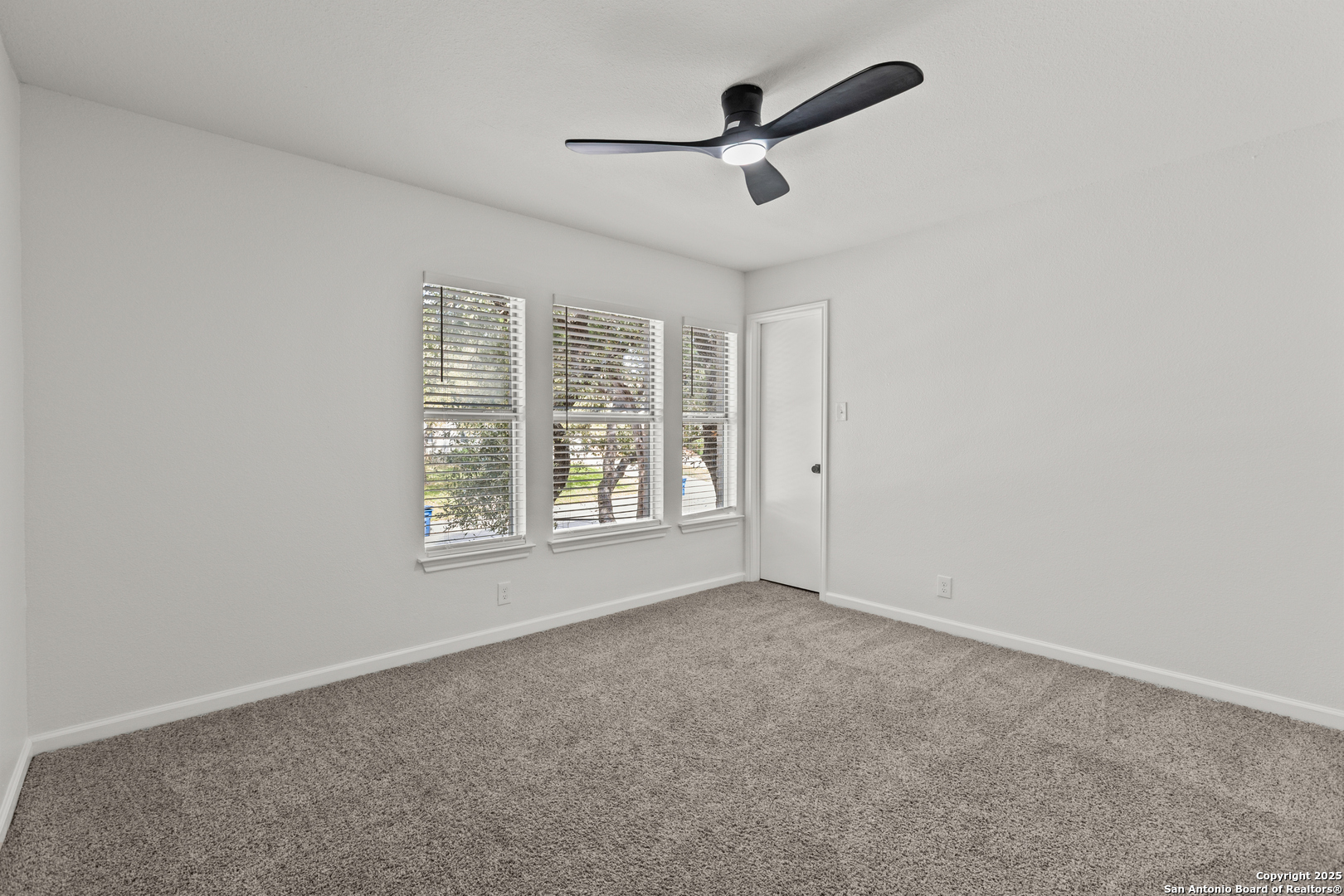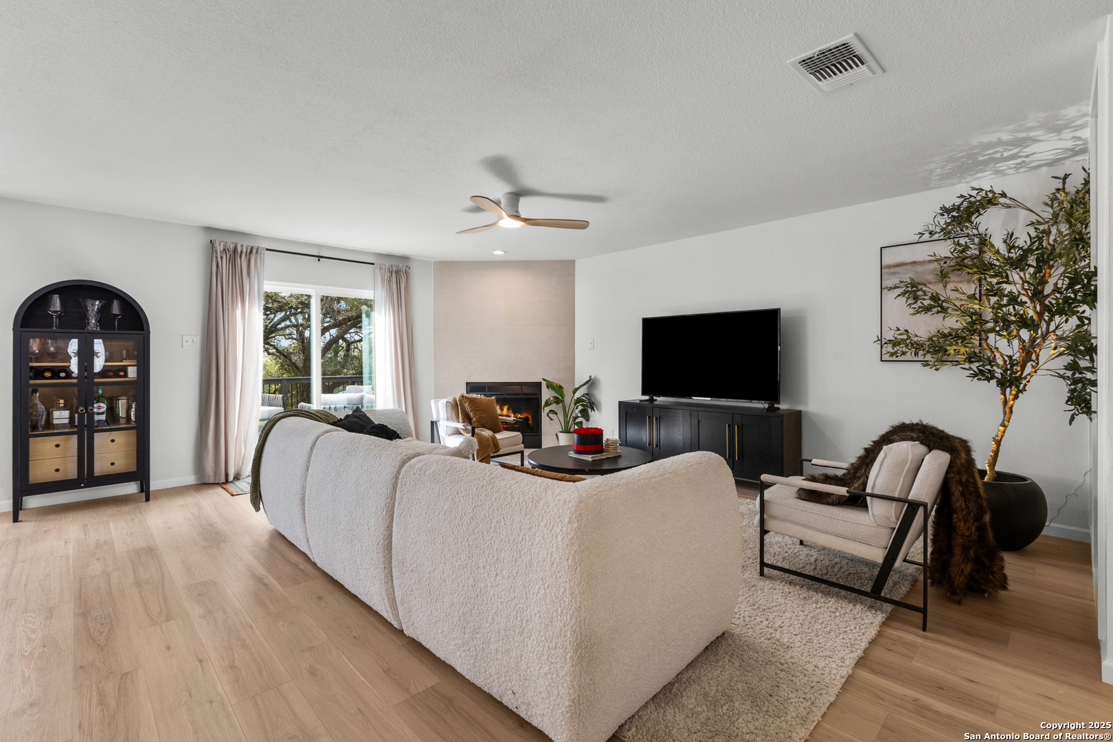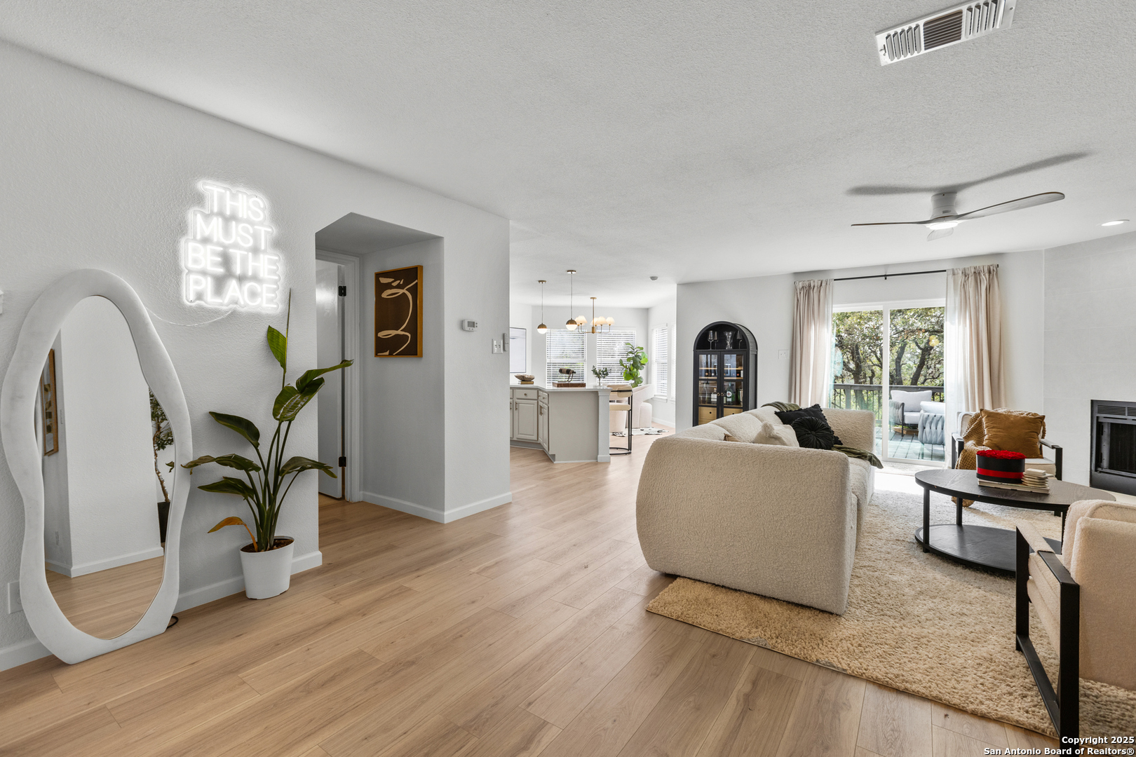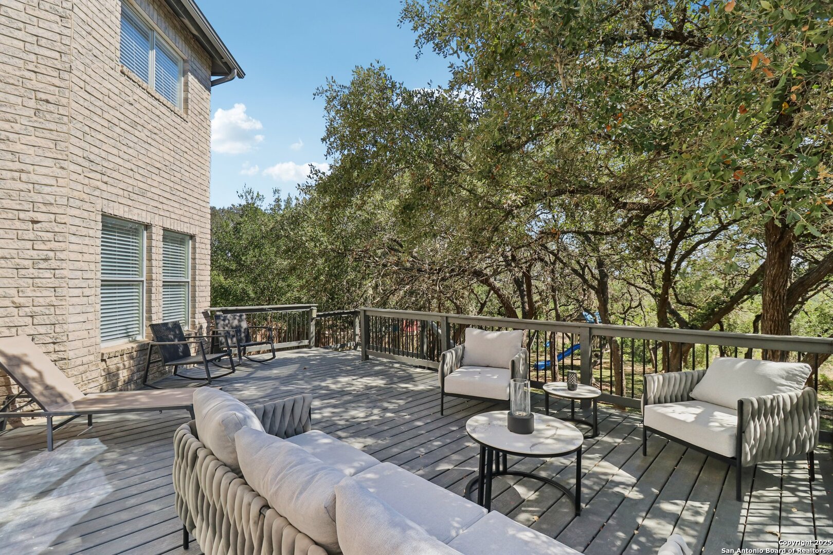 Take advantage of $5,000 closing cost assistance on 2414 Melrose Canyon, a stunning home in Canyon View! Ideal for buyers searching for value, modern features, and a prime location. Mature oak trees create a picturesque first impression as you arrive at this beautifully updated 3-bedroom, 2.5-bath home nestled on a peaceful greenbelt lot-offering both privacy and stunning natural views. Step inside to an inviting open-concept floor plan with gorgeous flooring throughout the main living and dining areas, perfect for both everyday living and entertaining. As you enter, the front flex space can easily be used as a home office, formal dining room, or additional living area to suit your lifestyle needs. The spacious living room features a beautiful fireplace and large glass doors that open to an elevated deck-ideal for relaxing and enjoying the lush, tree-filled backyard. The island kitchen flows seamlessly into the breakfast nook, providing a warm and functional space for casual dining. Upstairs, the expansive primary suite offers a tranquil retreat with a versatile sitting area-perfect for a home office, nursery, or reading corner. The updated primary bath showcases modern finishes, dual vanities, and a walk-in shower for ultimate comfort and style. Two additional bedrooms, a beautifully remodeled secondary bath, and a flexible game room-currently utilized as a media/theatre room-offer plenty of room for family and guests. Located just minutes from Loop 1604, this home provides quick access to top-rated schools, shopping, dining, and military bases. Experience the perfect balance of comfort, convenience, and natural beauty-schedule your private tour today and discover why Canyon View is one of San Antonio's most sought-after neighborhoods!