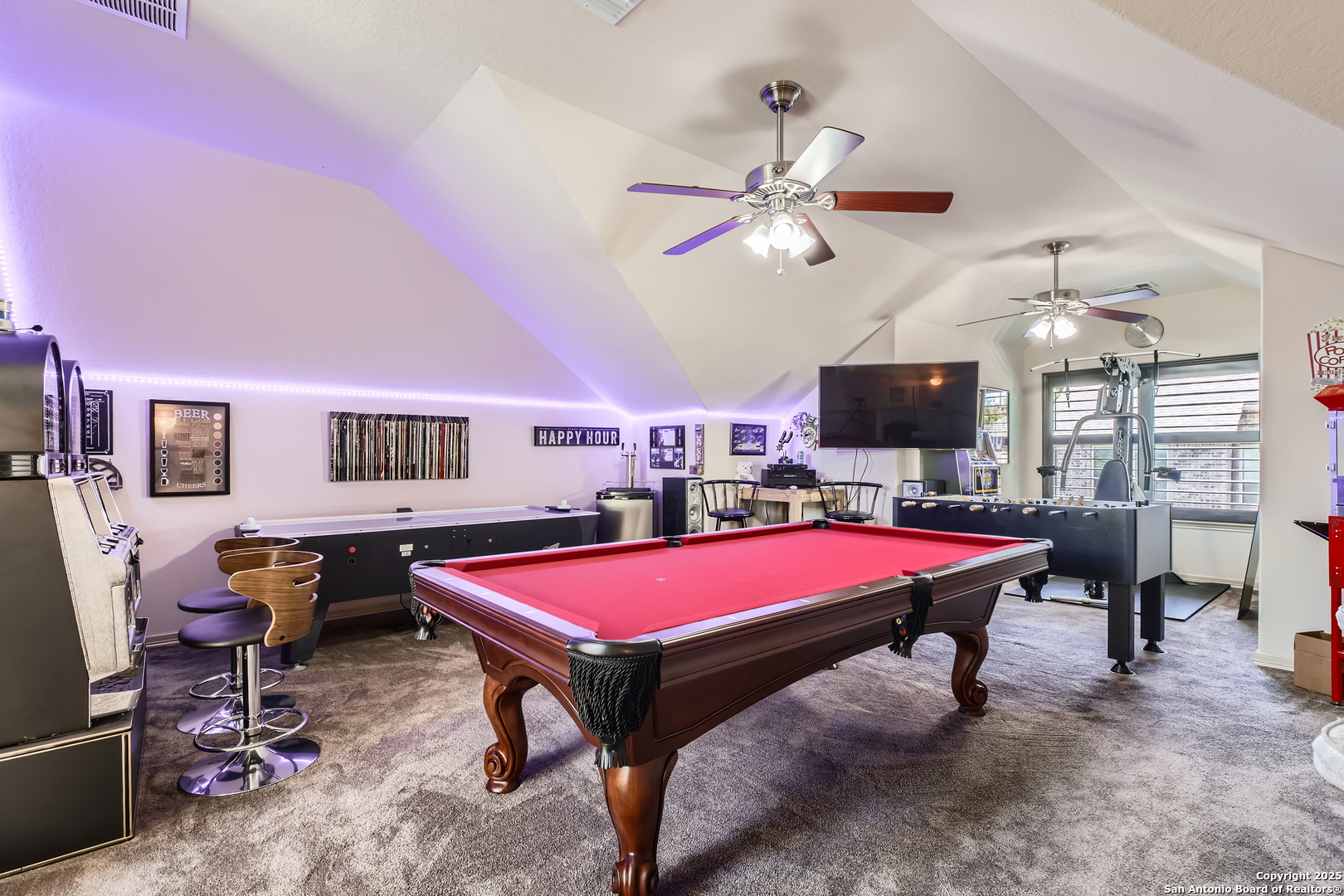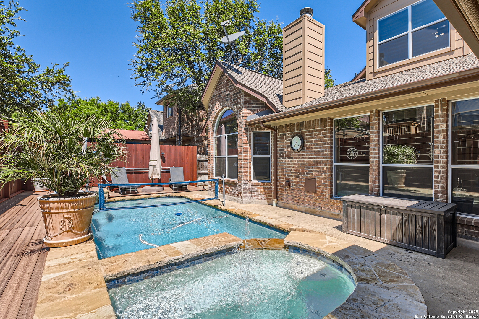 Entertainer's Dream Home in a Desirable Gated Community Nestled in a sought-after gated community and within a top-rated school district, this pristine 4-bedroom, 2-bathroom home is a true entertainer's dream. With all living spaces and bedrooms on the main floor, plus a game/media room upstairs, this 1.5-story beauty combines luxury, convenience, and functionality in perfect harmony. Step inside to discover an open-concept living area with custom finishes throughout. The chef-inspired kitchen is a standout, featuring upgraded 42-inch cabinetry, sleek stainless-steel appliances, and a gas cooktop that vents through the foundation for ultimate convenience. A built-in oven and microwave complete the gourmet setup, while the spacious breakfast nook and center island offer plenty of space for additional seating, making it ideal for casual meals or entertaining guests. The inviting living room boasts a beautiful wood-burning/gas fireplace and is flooded with natural light, highlighting the custom shutters and lighting that grace every room in the home. The dining area is equipped with elegant Mohawk engineered floors, adding both warmth and a touch of sophistication to your dining experience. The attention to detail extends to the garage, where both the floor and driveway are fully epoxied, and the garage itself has been finished with textured walls, baseboards, and a complete water softener system for added comfort. The beautifully manicured front yard, equipped with an irrigation system, welcomes you to this home, while the backyard truly feels like a private resort. A covered patio leads to a composite deck, a luxurious jacuzzi spa, and a heated in-ground pool, creating the perfect environment for relaxation or entertaining friends and family. A small grassed area provides space for pets or play. This stunning home offers the perfect blend of sophisticated living and outdoor leisure, making it an ideal retreat for those who love to entertain and enjoy the finer things in life.