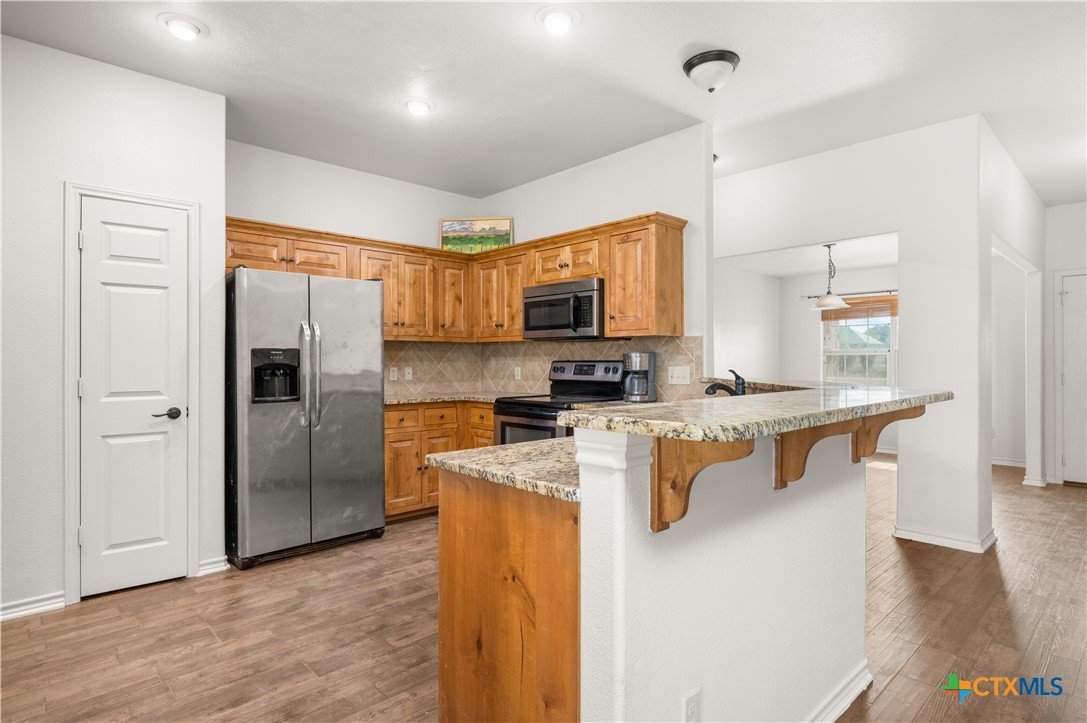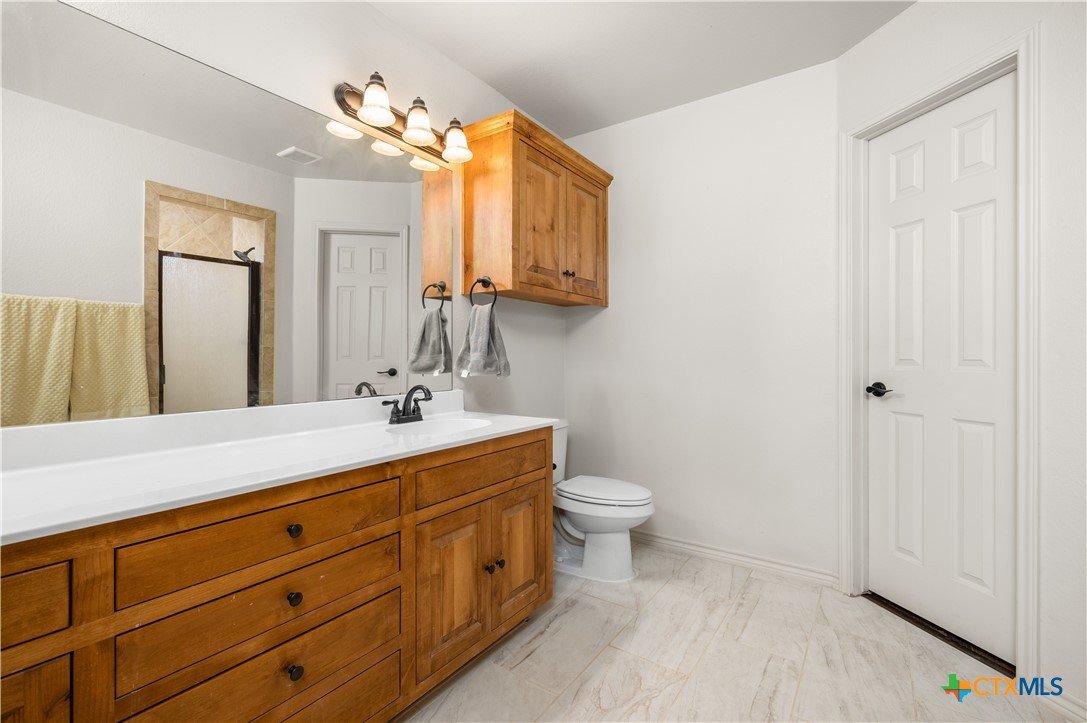 Wide-open Hill Country living in the highly desired River Place community. Set on one full acre with no HOA and backing to expansive AG land, this property offers privacy, space to grow, and the freedom to live the lifestyle you’ve been searching for — whether it includes chickens, gardening, RV/boat parking, or a future workshop. Inside, this well designed home offers just under 1,800 sqft. of comfortable living with an open-concept layout, abundant natural light, and brand new luxury flooring installed throughout the entire home. The kitchen features granite countertops and custom cabinetry, opening to a bright and welcoming living area perfect for gatherings or a night in with the family. The private primary suite, which is the only room on the right side of the home- includes a walk-in closet, dual vanities, and a spa-style dual-entry shower with multiple shower heads. Out back, a 25’ x 20’ oversized shed provides ideal space for a workshop, gym, or storage, and a 35’ x 15’ leveled concrete slab is ready for a future metal building, guest house, or RV pad. With community water and room to expand, this property offers exceptional potential. Enjoy peaceful sunsets, stargazing nights, and a slower pace of life — all within a short commute to shopping, dining, Lampasas, Copperas Cove, and Fort Cavazos, making it an appealing option for military/VA buyers. Back on Market- No Fault of Home. Previous buyer changed plans during Option Period after a smooth inspection process. Reach out today to schedule your showing!