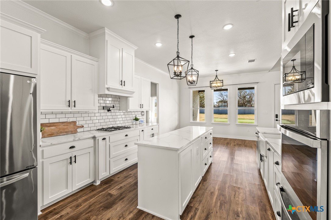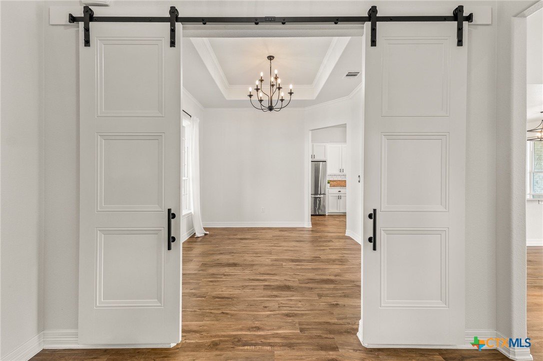 Welcome home to 242 Sand Flat Lane, where the possibilities feel endless. As you arrive, you’ll notice plenty of parking, to include an oversized 2 car garage, and a massive front porch— perfect for relaxing and watching the sunset. Inside, a wide entryway leads to a formal dining room on the left and three bedrooms with two full bathrooms on the right, including a mother-in-law suite. These bedrooms are completely separate from the primary suite, offering true privacy. The living room is filled with natural light and features high ceilings, exposed beams, and a floor-to-ceiling brick fireplace. The kitchen offers space for a second dining area and plenty of storage, with cabinetry on both sides of the island, ample counter space, a single-basin sink, a pot filler above the gas stove, built-in ovens, and a built-in microwave. The walk-in pantry includes shelving, drawers, a butcher block countertop, and even a window. Just off the garage is a mud area with storage and a laundry room that connects directly to the primary suite’s large walk-in closet. The primary bathroom includes a double vanity, a freestanding tub, and a tiled walk-in shower. Out back, enjoy a covered patio with ceiling fans and LED lighting, plus a spacious backyard ready for your additions—shop, pool, or your own backyard getaway? Located off Moffat Road, this neighborhood is close to the lake and offers a country feel without being too far out. Food, grocery stores, and shopping are all about 15 minutes away. Schedule your tour today!