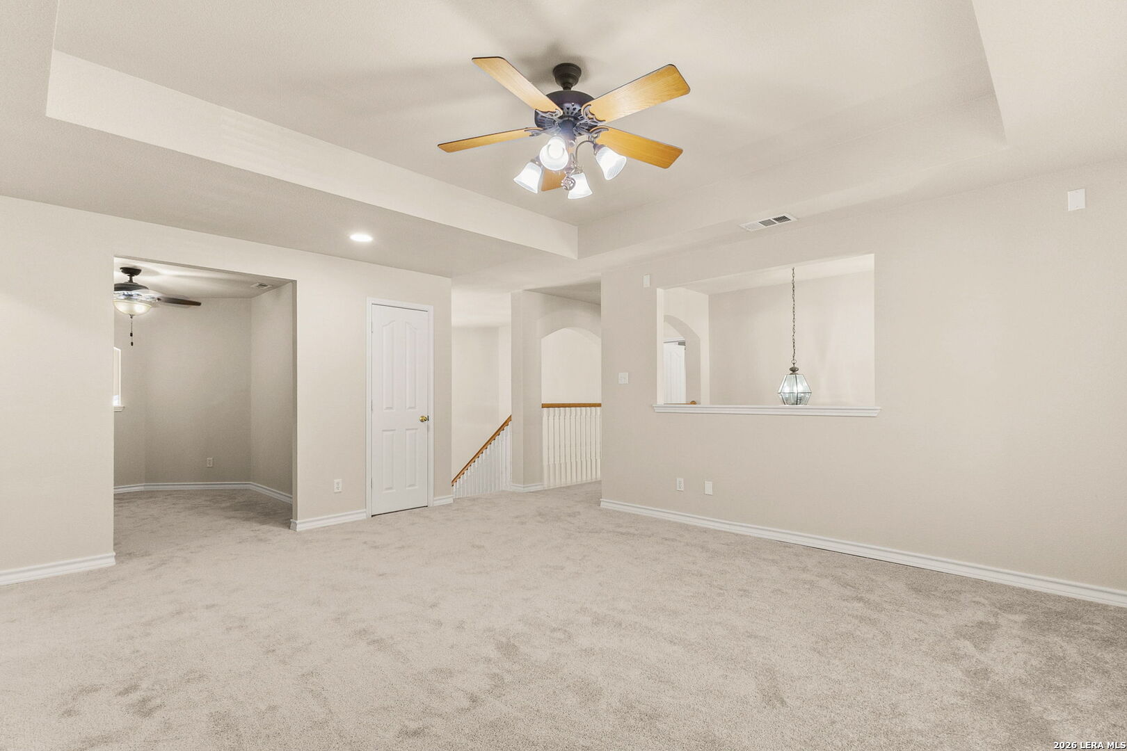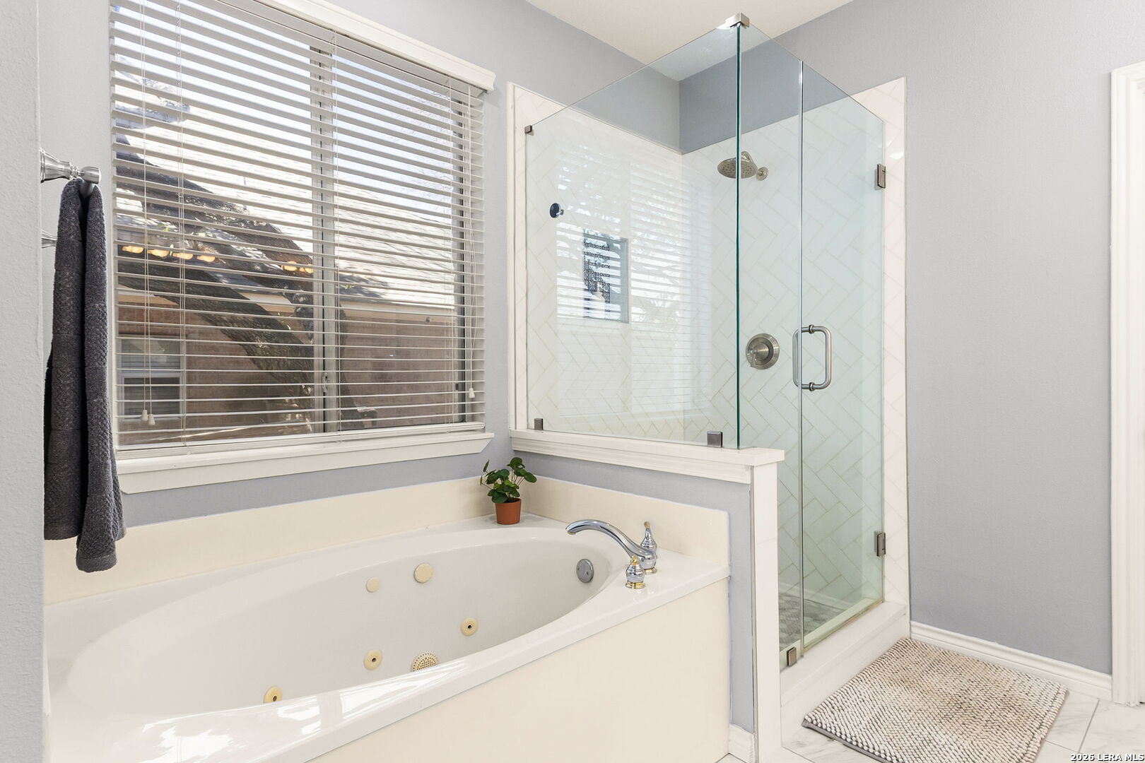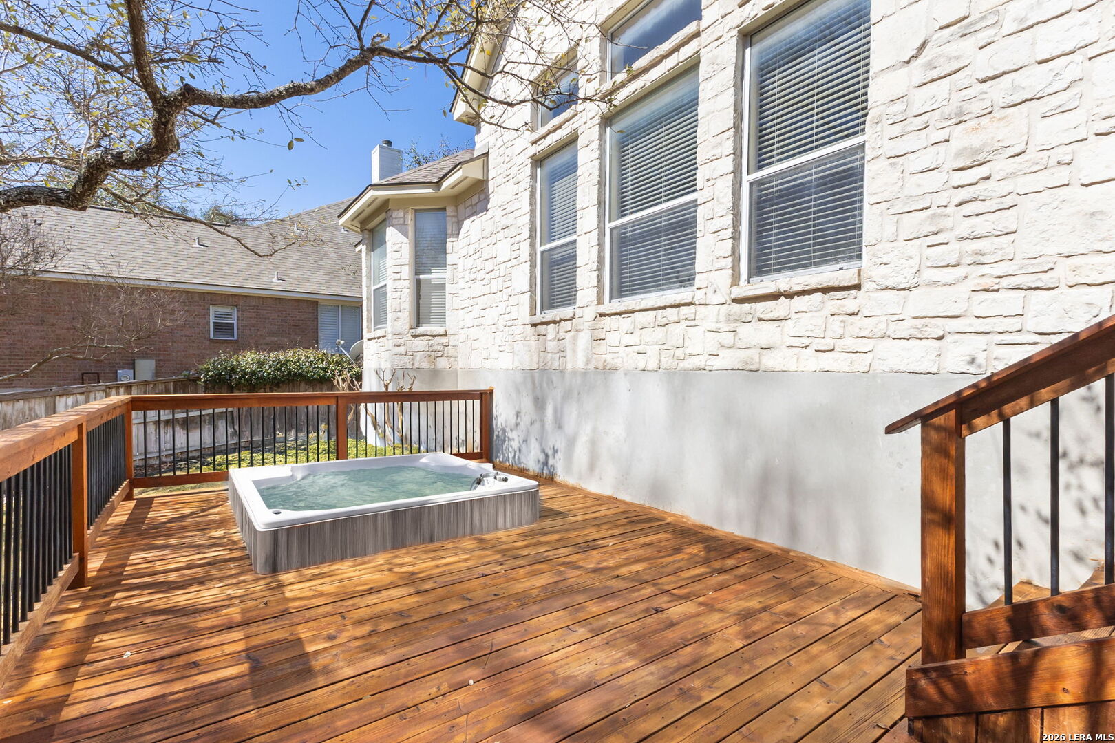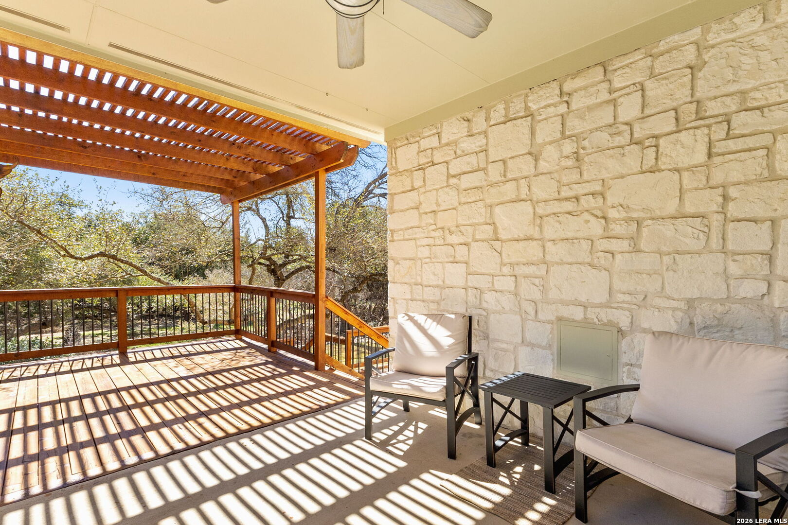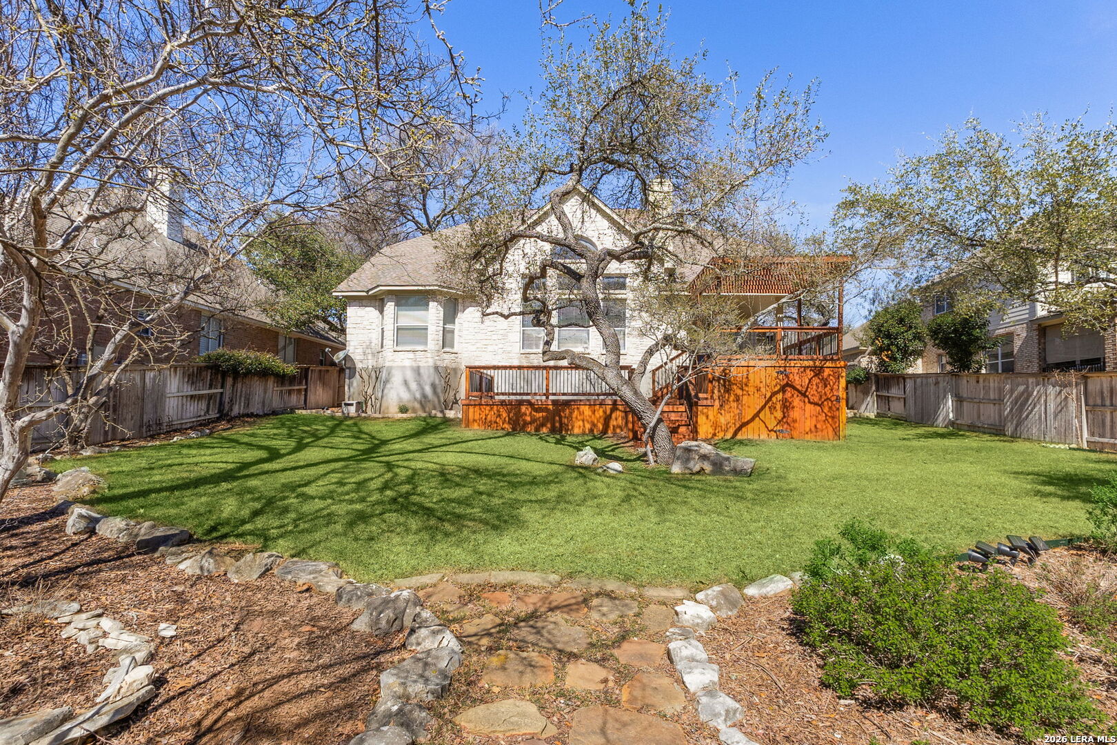 Nestled in the heart of Stone Oak, 24206 Middle Fork is the perfect blend of comfort, space, and style. This stunning two-story home boasts 5 bedrooms, 3.5 baths, and a generous 3,690 square feet of thoughtfully designed living space-ideal for families of all sizes or those who simply love to entertain. Step inside to find soaring high ceilings and oversized picture windows that bathe the home in natural light, creating a warm and inviting atmosphere. The main floor features a luxurious primary suite with a charming bay window, dual vanities, a remodeled shower, and a relaxing jetted tub-a true retreat at the end of the day. Upstairs, four additional bedrooms share Jack-and-Jill bathrooms and are complemented by a versatile game room or flex space, plus a cozy study nook with built-in desks. The heart of the home is the beautifully appointed kitchen, complete with brand-new KitchenAid appliances, a 5-burner gas stove, a walk-in pantry, a coffee bar, and a spacious island perfect for meal prep or casual gatherings. Hardwood floors flow throughout the main living areas, while plush new carpet adds comfort upstairs. A stone fireplace anchors the living room, creating a cozy focal point for family and friends. Outside, the backyard is a true sanctuary. Relax or entertain on the deck under a pergola, envision evenings in a hot tub, or simply enjoy the privacy of the landscaped greenbelt and towering trees beyond. With a sprinkler system to keep the lawn lush and a 3-car garage for all your parking and storage needs, this home has it all. Located in one of San Antonio's most desirable neighborhoods, Mountain Lodge, you'll enjoy two gated entrances, access to two large pools, baby pools, a park and a basketball court. Discover the versatile and relaxed lifestyle that 24206 Middle Fork has to offer in a community that balances leisure and convenience. After years of construction, HWY 281 is now open North and Southbound, making the drive to 1604 quick and easy. Conveniently located to JW Marriott's TPC golf resort, Stone Oak shopping and dining, hospitals and major employers. NO CITY TAXES! 24206 Middle Fork is more than a house-it's the lifestyle you've been dreaming of. Don't miss your chance to make it yours! -