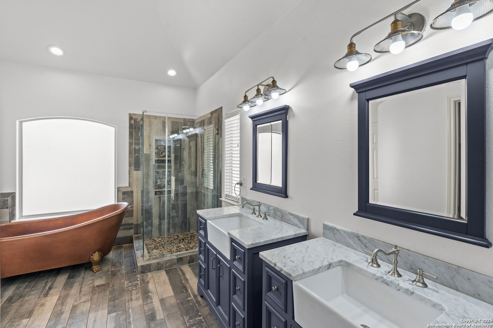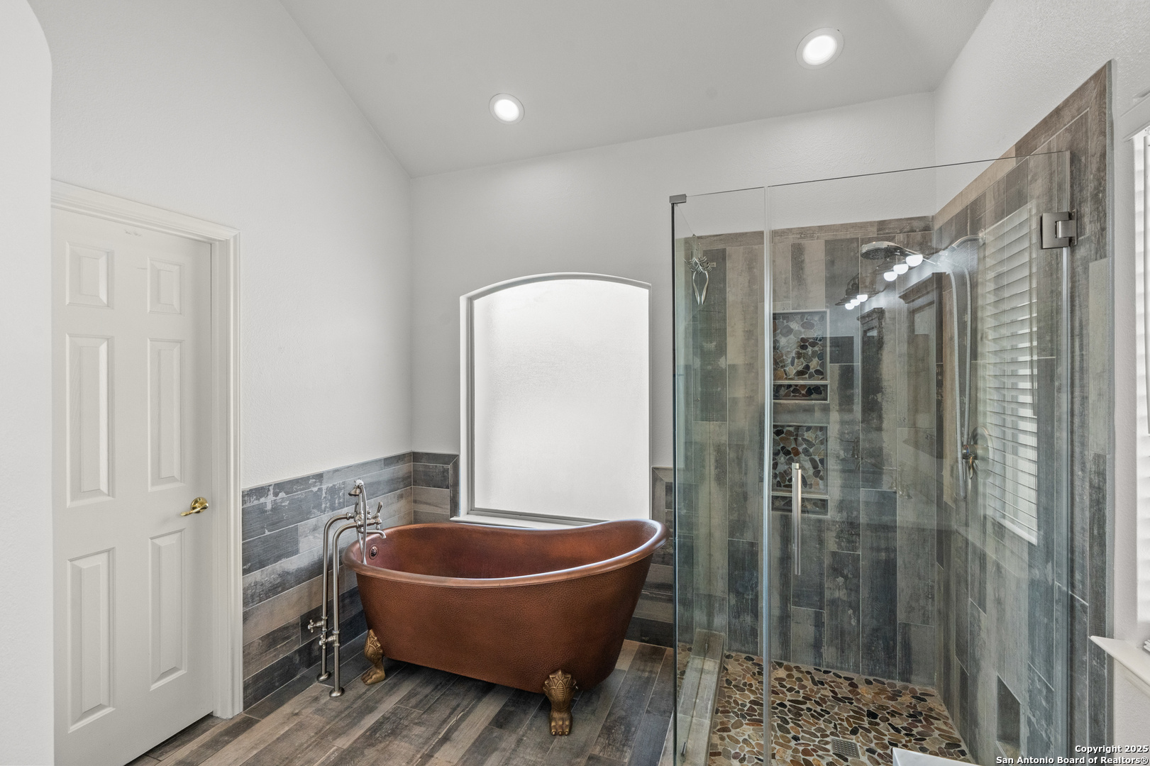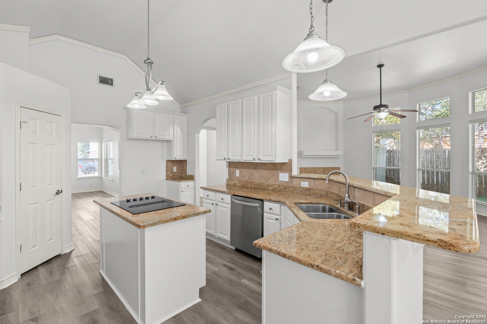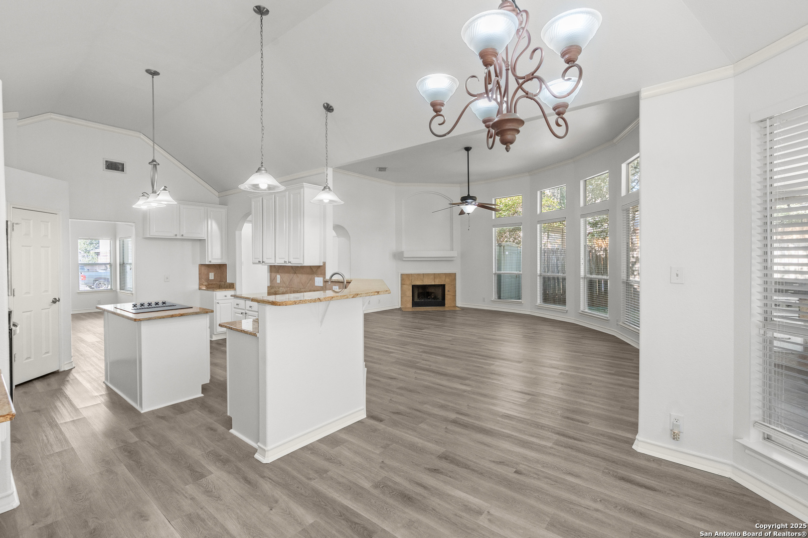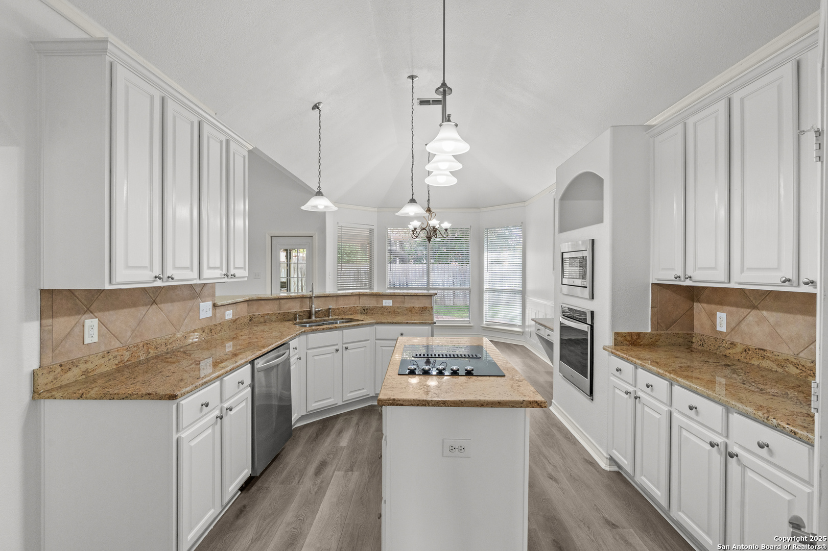 Step into the perfect blend of comfort and elegance in this beautifully upgraded custom home nestled inside the coveted Mountain Lodge community. Designed for effortless entertaining and everyday living, this light-filled residence impresses from the moment you arrive. This is not your average home. It features elevated upgrades throughout, including elegant tray ceilings and soaring 20ft, 12ft, and 10ft ceilings. The wide-open floor plan seamlessly flows from the formal dining room to a spacious living area with a cozy fireplace and walls of windows that bring the outdoors in. Fresh neutral paint inside, garage, & exterior in October 2025, durable vinyl plank flooring throughout (no carpet), newly resurfaced counters and bath tubs in the secondary bathrooms, brand-new front and back doors, new front landscaping, new sod in the backyard, full sprinklers with a new control panel, & so much more. The island kitchen is the heart of the home with granite countertops, bar seating, crisp white cabinetry, and stainless steel appliances that are only three years old. The luxurious & spacious primary retreat features a clawfoot soaking tub, oversized mudset shower with frameless door, upgraded vanities, & large walk-in closet. Three generous secondary bedrooms are tucked away on the opposite side of the home with a Jack and Jill bath and an additional hallway bath for extra comfort and convenience. Step outside to a backyard built for year-round enjoyment with fresh sod, mature trees, storage shed, a covered patio, and a full outdoor kitchen with a gas grill, two burners, blender, sink, refrigerator, & sun shades. The large composite deck and artificially turfed shaded area creates the perfect setting for relaxing or entertaining. Ideally situated at the quiet back of the neighborhood with minimal traffic, this home is zoned to award-winning North East ISD schools including Tuscany Heights Elementary within walking distance, Tejeda Middle School, and Johnson High School. Mountain Lodge is a gated community and offers two pools, two shaded baby pools, a basketball court, and a neighborhood park. After years of construction, HWY 281 is now open northbound & southbound making the drive to and from 1604 quick & easy. Conveniently located close to JW Marriott's TPC golf course, Stone Oak shopping & dining, hospitals, and major employers. This is more than a house, it is a lifestyle. Welcome home to Mountain Lodge!