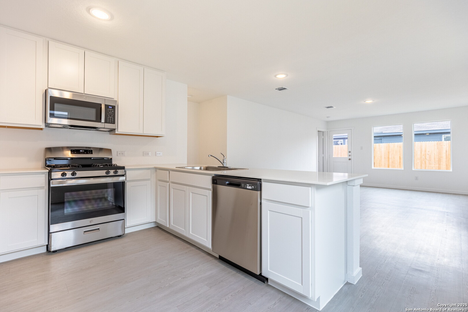 Be the first to live in this brand-new home-move-in ready! This stunning one-story features an open, inviting layout with a spacious kitchen equipped with sleek stainless steel appliances overlooking the large living room. Inside, you'll find three generous bedrooms with plush carpeting, two full bathrooms, ample closet space, and a two-car garage. Enjoy outdoor activities in your private backyard. Conveniently located just off Hwy 46, offering an easy commute to both New Braunfels and Seguin, with plenty of nearby dining, shopping, and entertainment options.Schedule your tour today!