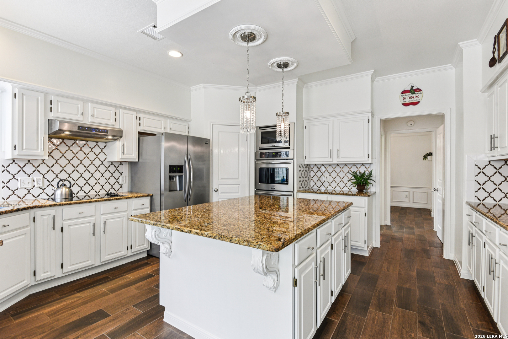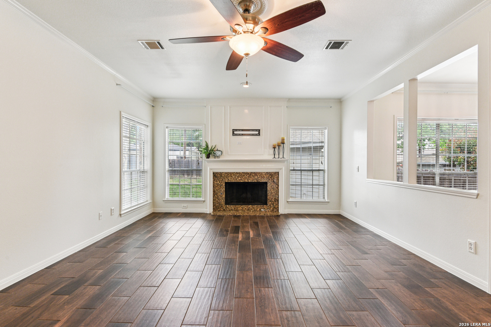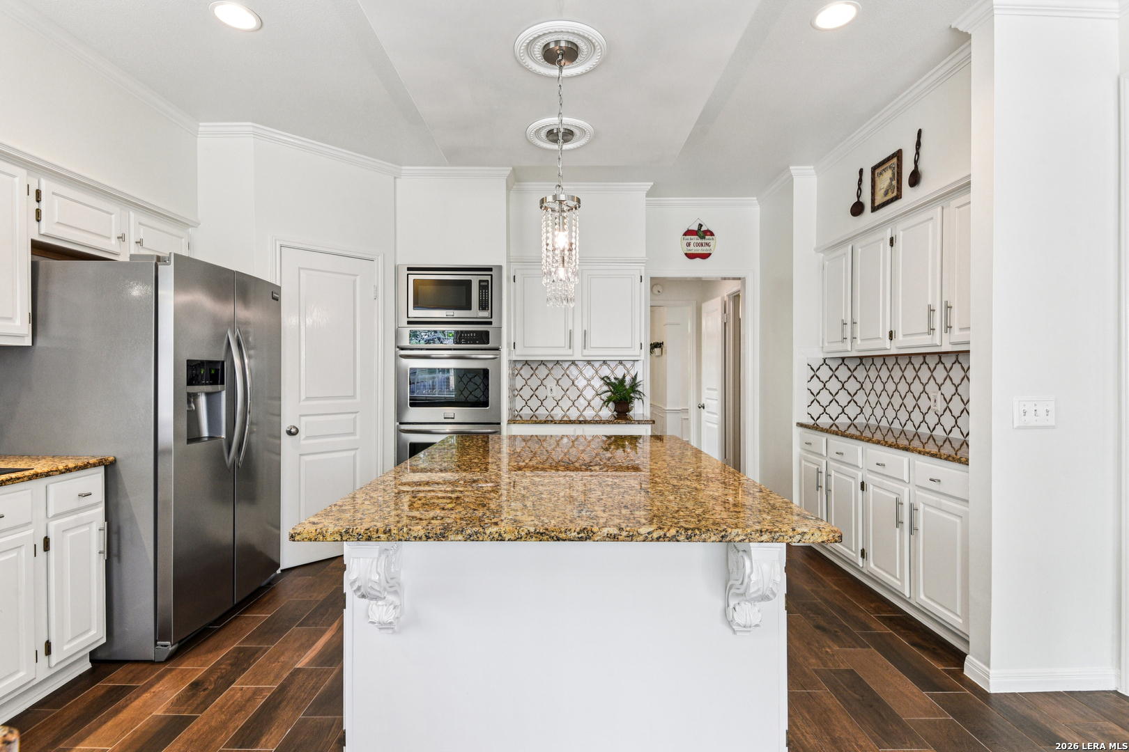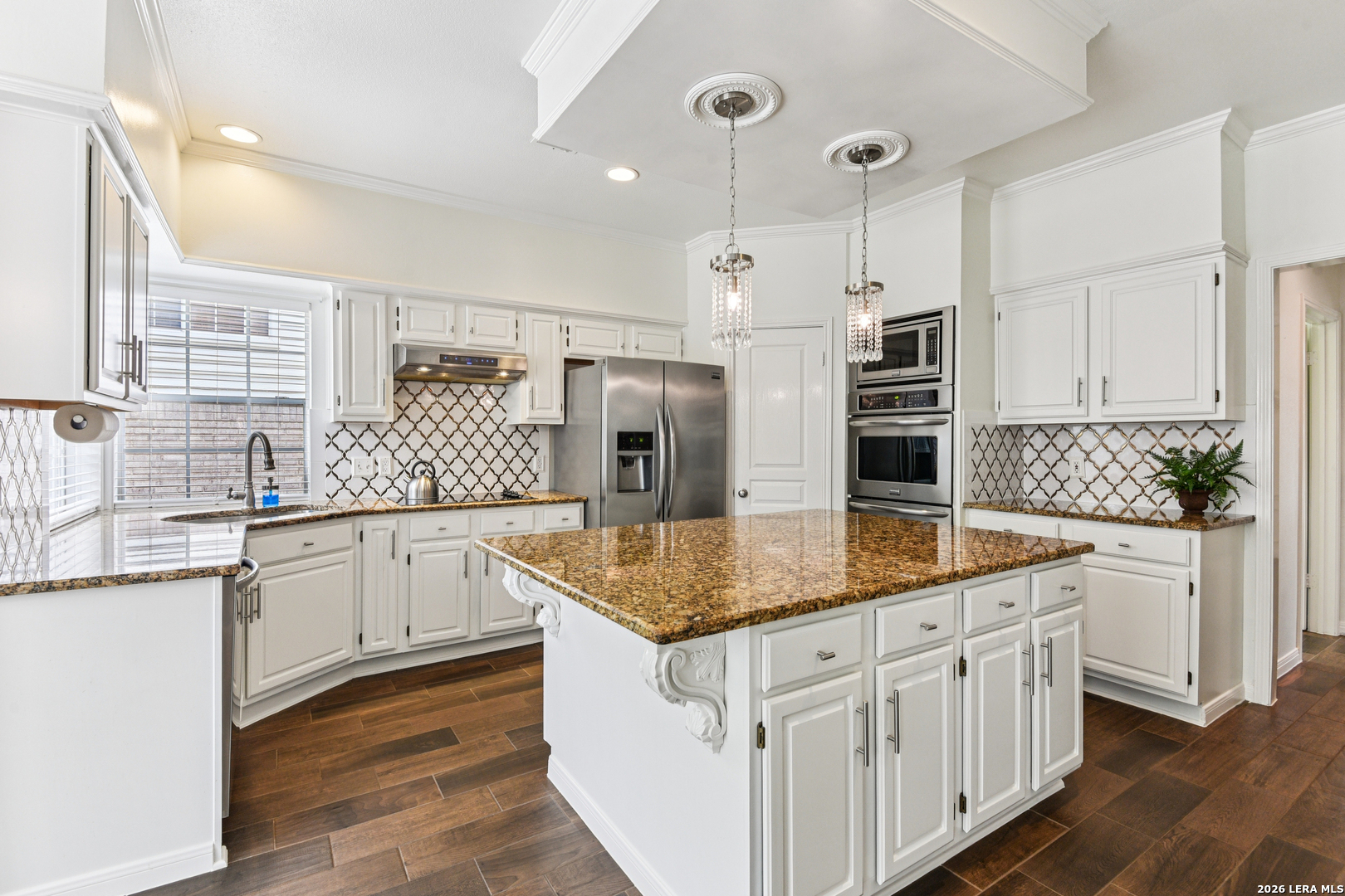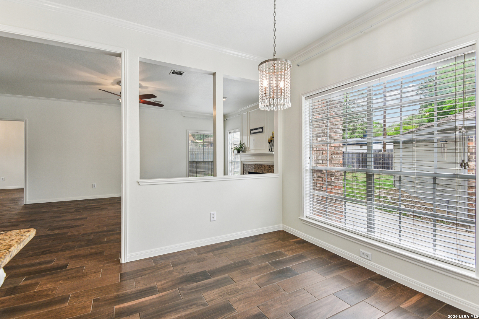 Welcome to this beautifully updated home in the guard gated community of Summerfield, ideally located in the heart of North San Antonio just off NW Military and Wurzbach Parkway, directly across from Alon Town Centre. Offering 2,829 square feet, 4 bedrooms, 2.5 bathrooms, plus a dedicated office and formal living and dining spaces, this home blends timeless design with everyday functionality in one of the most desirable central locations in the city. From the moment you step inside, you are welcomed by a grand two story foyer featuring a stunning crystal chandelier and an abundance of natural light. The main living areas showcase wood look tile flooring, high ceilings, crown molding, and plantation shutters throughout, creating a clean and elevated feel. The kitchen is designed for both everyday living and entertaining, featuring Italian granite countertops, a large center island with detailed corbels, stainless steel appliances, double ovens, custom backsplash, and ample cabinetry. It opens seamlessly to the family room, where a cozy fireplace and built in wall accents create a warm and inviting space. A breakfast nook with large windows overlooks the backyard and provides easy access to the outdoor patio. Upstairs, all four bedrooms are thoughtfully laid out, including a spacious primary suite with large windows and a beautifully updated bathroom featuring dual vanities, a soaking tub, and a separate walk in shower. The oversized primary closet offers exceptional storage and functionality. Secondary bedrooms are generously sized, ideal for family, guests, or additional workspace. Recent updates include a water heater replaced in 2023, water softener installed in 2022, and a roof under 10 years old, providing peace of mind for future homeowners. The outdoor space offers a private backyard with mature trees and a shaded patio, perfect for relaxing or entertaining. A detached two car garage adds additional flexibility and curb appeal. One of the standout features of this home is its direct access to nature. Residents enjoy private access to Hardberger Park along with connectivity to the Salado Creek Greenway hike and bike trails, offering miles of outdoor recreation right from the neighborhood. Summerfield is a guard gated community known for its established charm and amenities, including a community pool, playground, and sports court. The location is truly unmatched with quick access to The Rim, La Cantera, USAA, the Medical Center, and major highways including I 10, Loop 410, Loop 1604, and Wurzbach Parkway. If you have been searching for a centrally located home with space, character, and access to some of the best outdoor amenities in San Antonio, this is one you do not want to miss. North San Antonio home for sale, guard gated community San Antonio, homes near Hardberger Park, NW Military real estate, Summerfield San Antonio, homes near Salado Creek Greenway, central San Antonio homes, Medical Center homes for sale