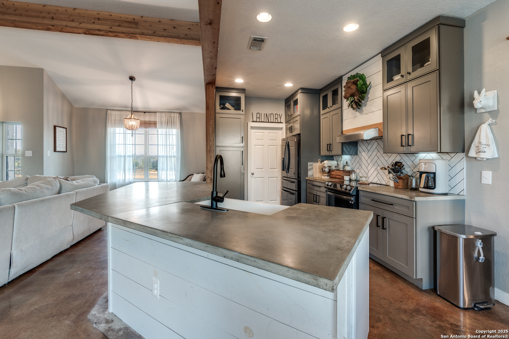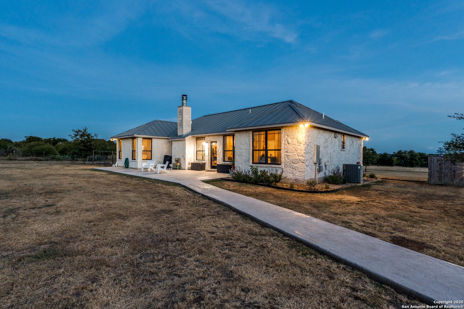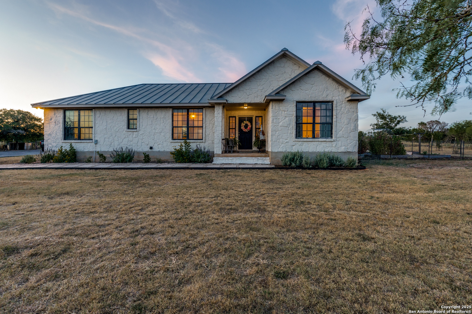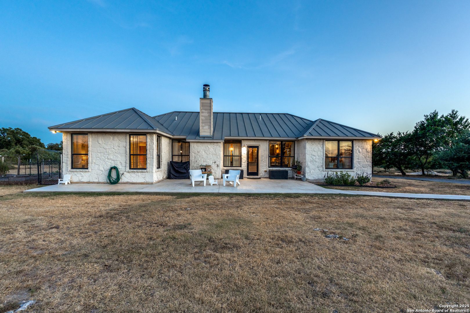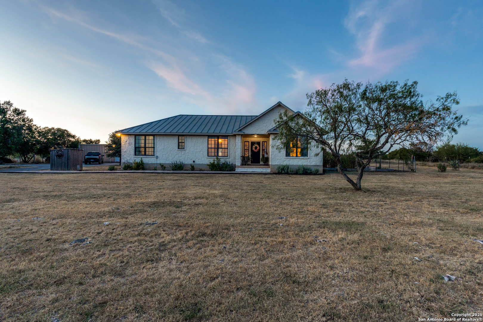 Welcome to country living at its finest, just minutes from town. This rare 5-acre property offers the perfect blend of Hill Country charm, modern convenience, and wide-open space. The 4-bed, 2-bath home features an open floor plan with a beautifully updated country chic interior and remodeled bathrooms that bring both style and comfort. Outside, the gated property is fully fenced and cross-fenced with a 25x30 detached garage on concrete slab, a raised bed garden, multiple patio spaces, a fire pit, and sweeping sunset views that make this an entertainer's dream. With no HOA and plenty of room to spread out, this is your chance to enjoy the country lifestyle without giving up the convenience of New Braunfels living. 45 min from San Antonio Airport and 1 hour from Austin Airport.