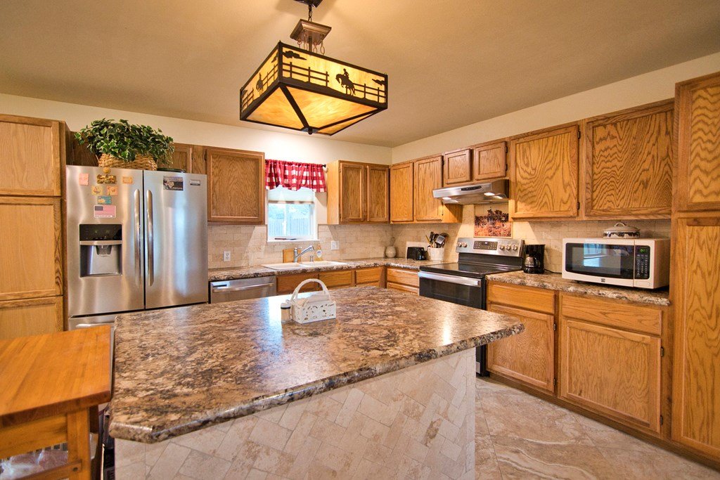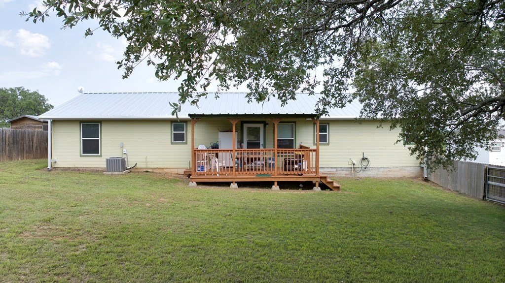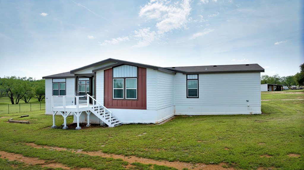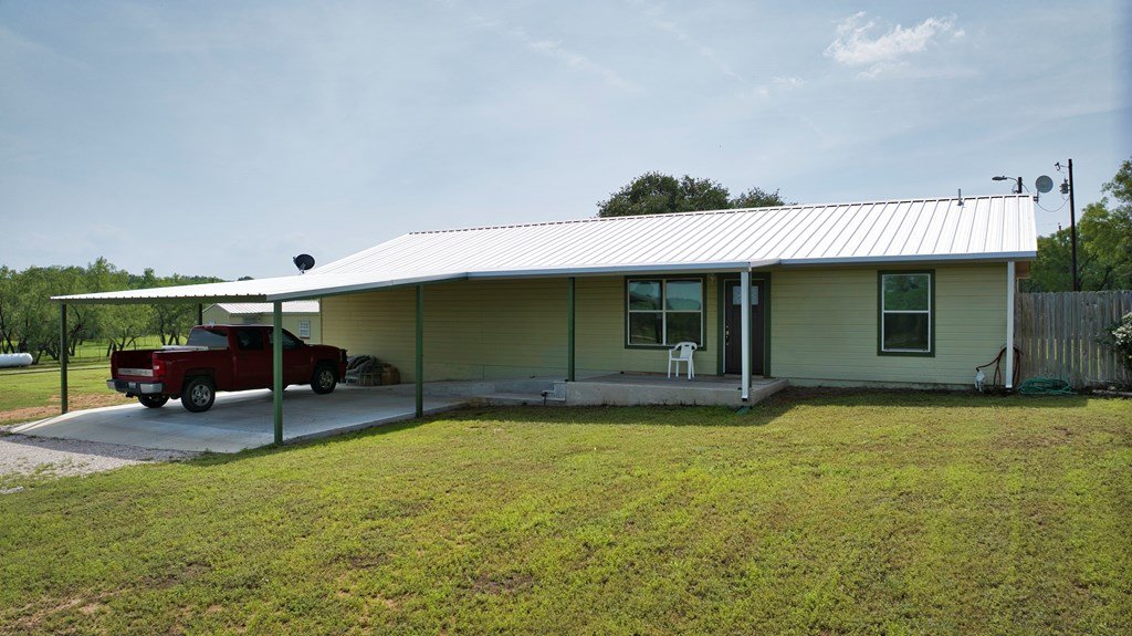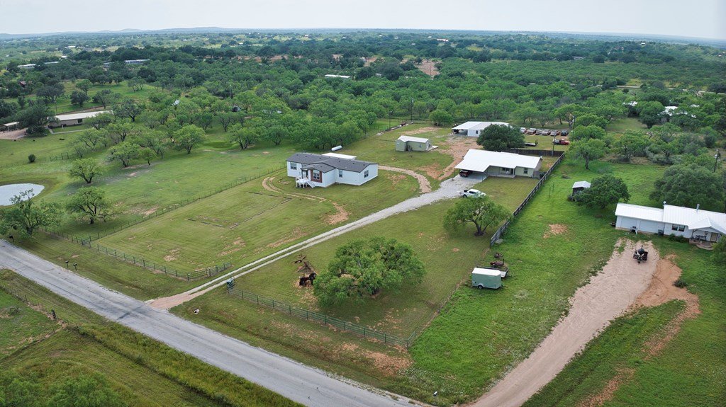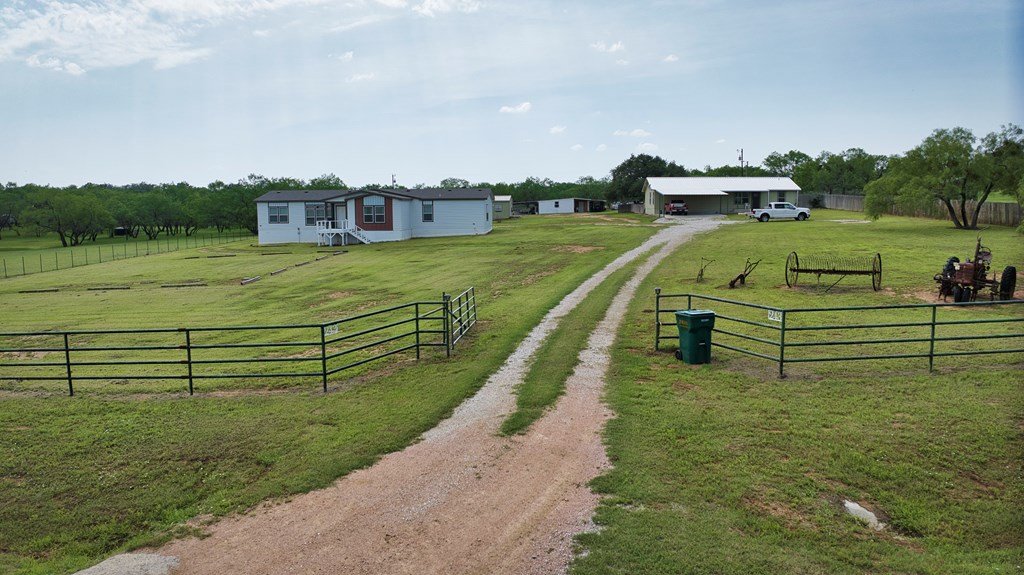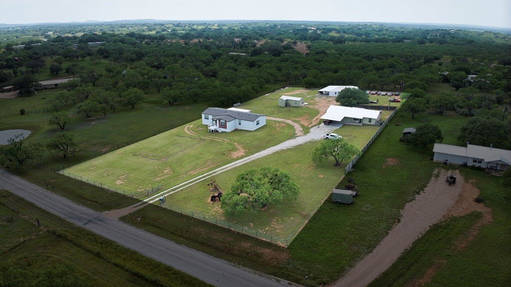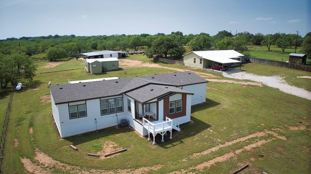 Discover the ultimate in family living with this 2.75-acre ranchette with multiple living spaces situated just outside the city limits in Llano County. Completely fenced to maintain privacy, this property features three distinct residences and a massive 5,000 sq ft barn, all serviced by community water and CTEC electric. Main Residence: Experience modern farmhouse charm in a spacious Palm Harbor triple-wide manufactured home, only two years old, with a 12-year warranty. This turn-key stunning residence boasts double primary suites, four bedrooms, three baths, and a large bonus room that would make a great workspace or fifth bedroom, all in impeccable condition. Key features include a cozy fireplace, a butcher block island in the kitchen, a buffet, and extensive front and back porches. Second Home: A beautifully remodeled 1,800 sq ft site-built home on a slab features three bedrooms, two baths, an attached carport, and a durable metal roof. Enjoy privacy with your fenced backyard and a relaxing back porch. Guest House: Perfect for visitors or as a rental opportunity, this charming 1 bedroom, 1 bath guest house is complete with new air conditioning.
