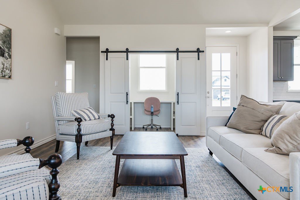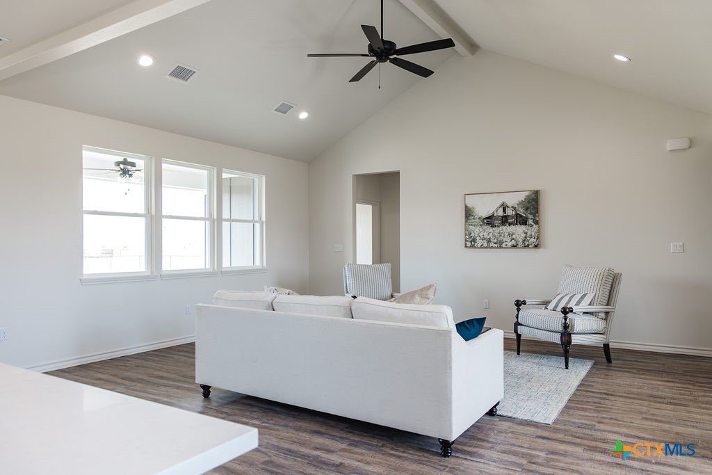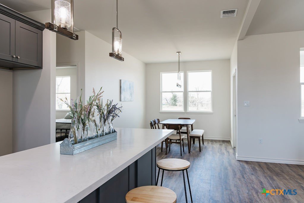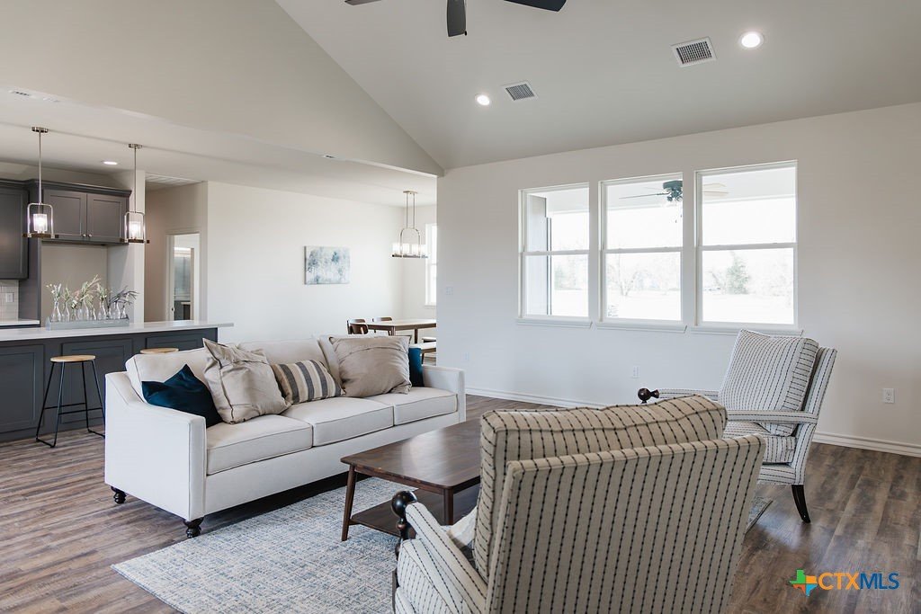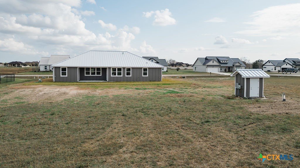 JW Moore New Construction. Discover a beautiful mix of modern comfort and farmhouse charm in this stunning 4-bedroom, 2-bath home from JW Moore! Located on a spacious one-acre lot just outside the city limits, this property is in a charming neighborhood with no HOA fees, making it the perfect retreat. As you step inside, you will be impressed by the open-concept design, high ceilings, and luxurious details throughout. The heart of the home features an elegant kitchen with quartz countertops, a center island, and plenty of space for entertaining. The master suite is a true spa-like retreat, complete with a walk-in tile shower that is perfect for relaxing after a long day. This home also includes three additional bedrooms, a dedicated pocket office, and a beautiful bathroom, ensuring everyone feels right at home. Step outside to enjoy the expansive backyard and covered porch. You will appreciate the metal roof and the close proximity to shopping and restaurants, all without the burden of city taxes. This home is ideal for entertaining, relaxing, or simply enjoying wide-open spaces. Experience the ultimate in peaceful country living with the convenience of city amenities just minutes away.