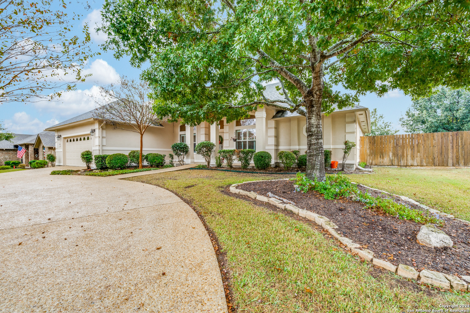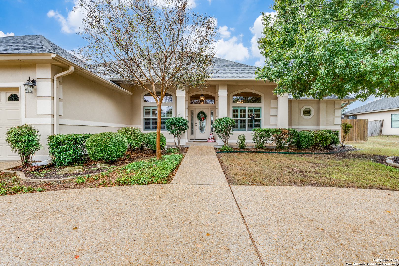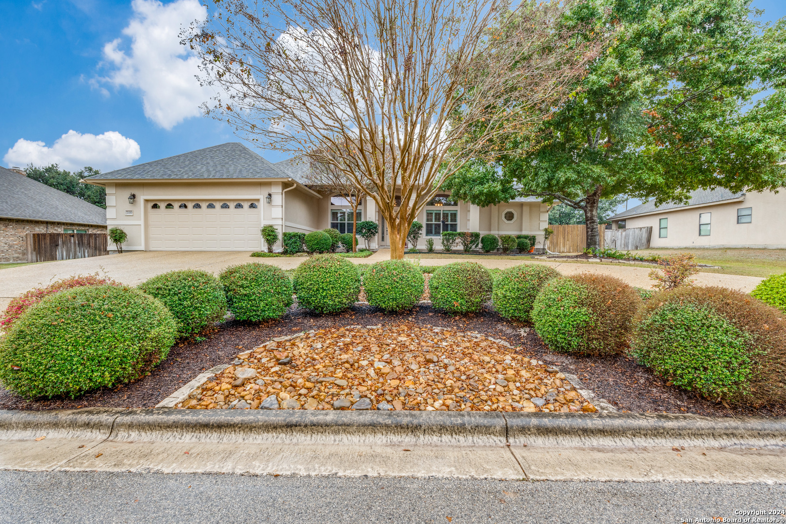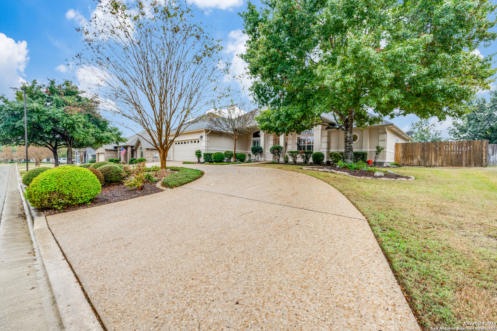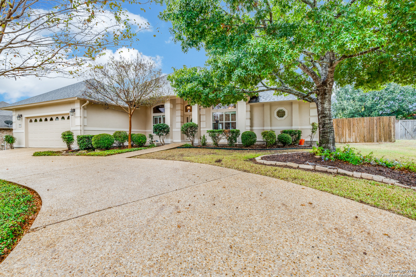 Check this beauty out!!! This quality custom 4 bedroom, 2.5 bath 2142sqft home is very well maintained and ready to move into!! This oasis has so many extras including an open plan with high ceilings, triple crown molding, recessed lighting, cove molding in all rooms, plantation shudders, only hardwood and ceramic flooring, and arches throughout. There are so many options on how to use all the extra space. The home boasts 2 large eating areas which can be converted into an office or a craft room. The kitchen features upgraded silestone countertops, custom oak cabinetry, breakfast bar, and stainless built-in appliances. The primary suite is great, opening up to a large bathroom and good-sized walk-in closet. The curb appeal is amazing!! From the circular driveway to the park-like feel in the huge backyard, this property has everything you are looking for. The neighborhood has private Guadalupe waterfront access and a great amenity center including pool, tennis courts, playground and clubhouse.