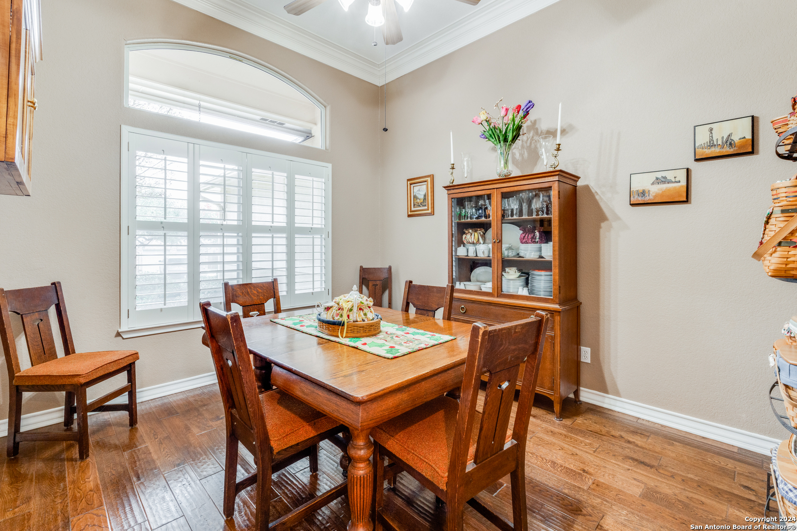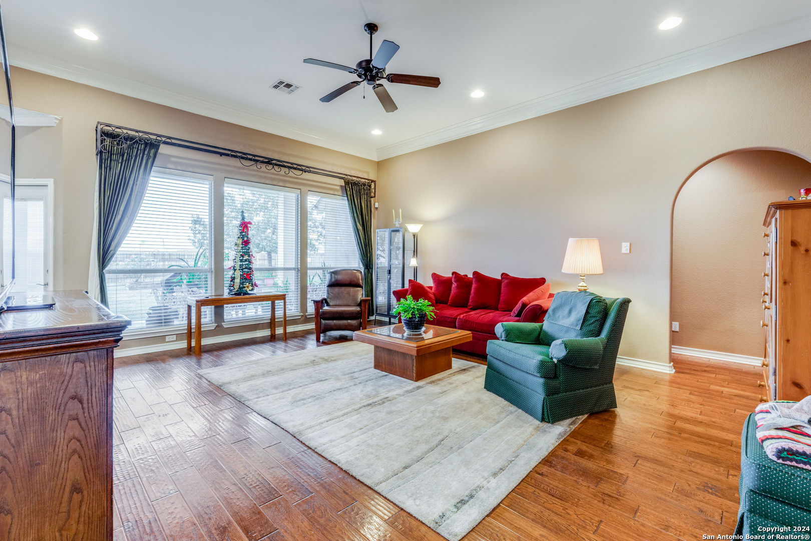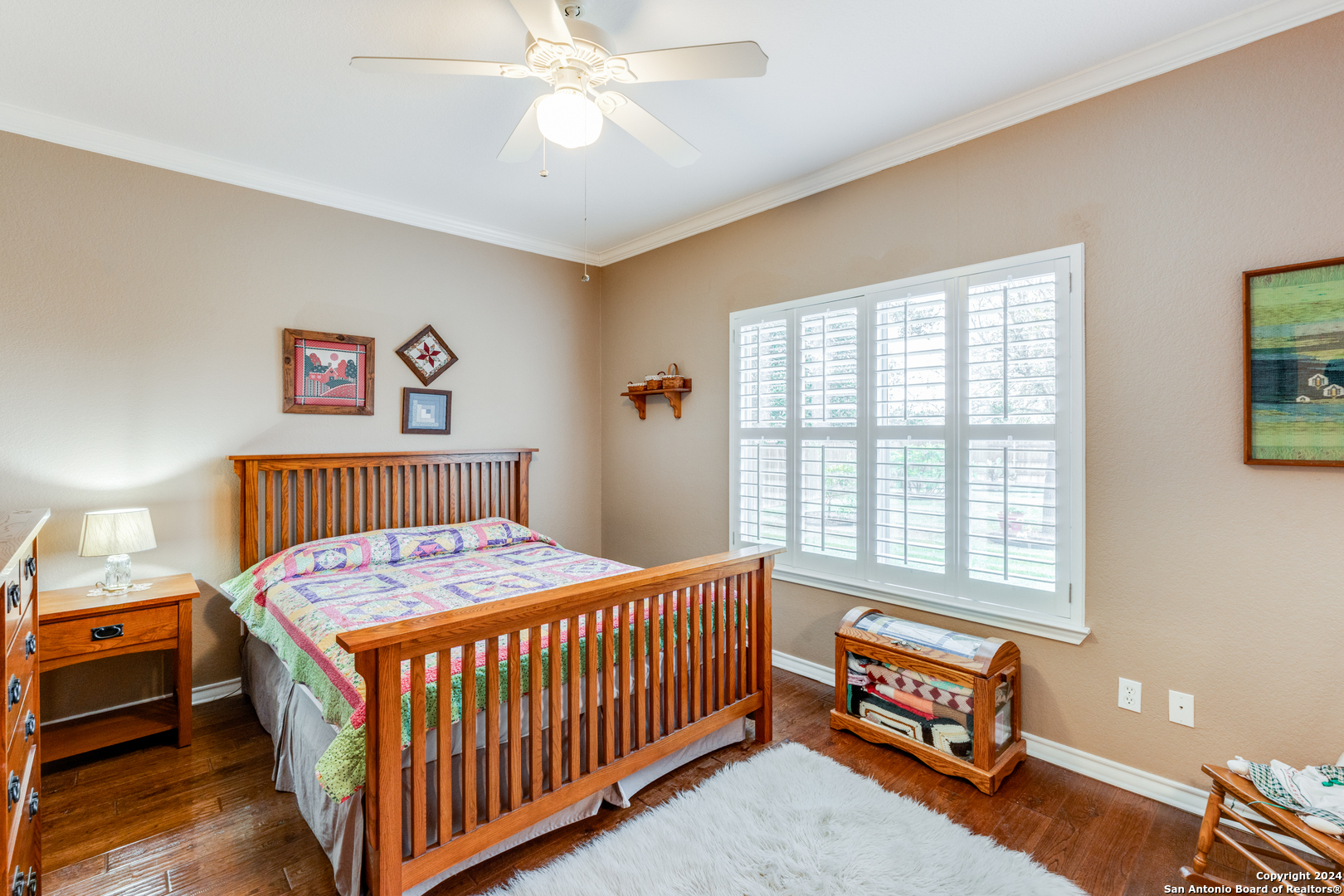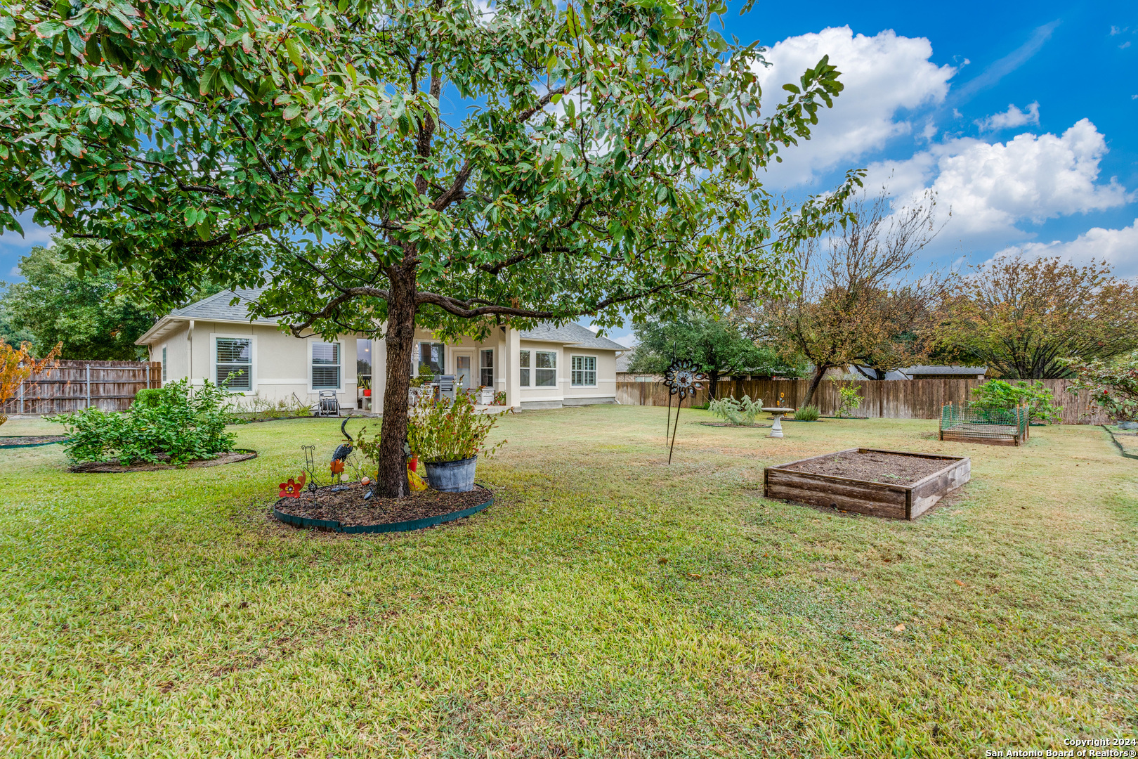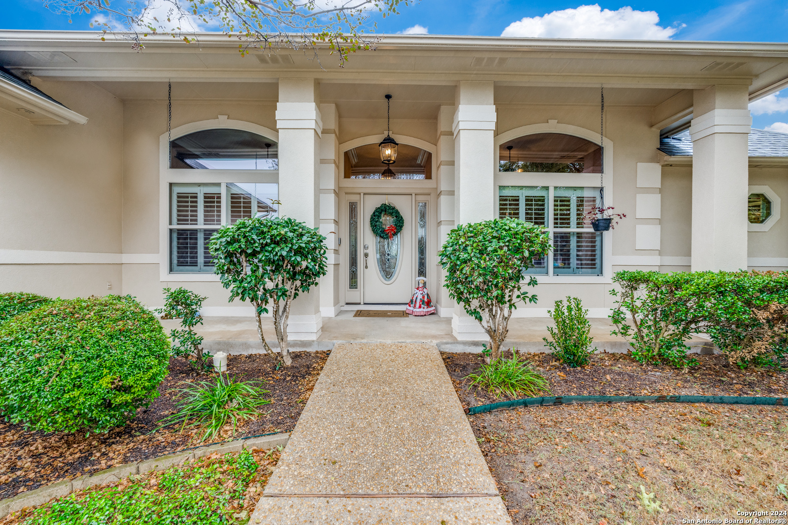 Check this beauty out!!! This quality custom 4 bedroom, 2.5 bath 2142sqft home is very well maintained and ready to move into!! This oasis has so many extras including an open plan with high ceilings, triple crown molding, recessed lighting, cove molding in all rooms, plantation shudders, only hardwood and ceramic flooring, and arches throughout. There are so many options on how to use all the extra space. The home boasts 2 large eating areas which can be converted into an office or a craft room. The kitchen features upgraded silestone countertops, custom oak cabinetry, breakfast bar, and stainless built-in appliances. The primary suite is great, opening up to a large bathroom and good-sized walk-in closet. The curb appeal is amazing!! From the circular driveway to the park-like feel in the huge backyard, this property has everything you are looking for. The neighborhood has private Guadalupe waterfront access and a great amenity center including pool, tennis courts, playground and clubhouse.