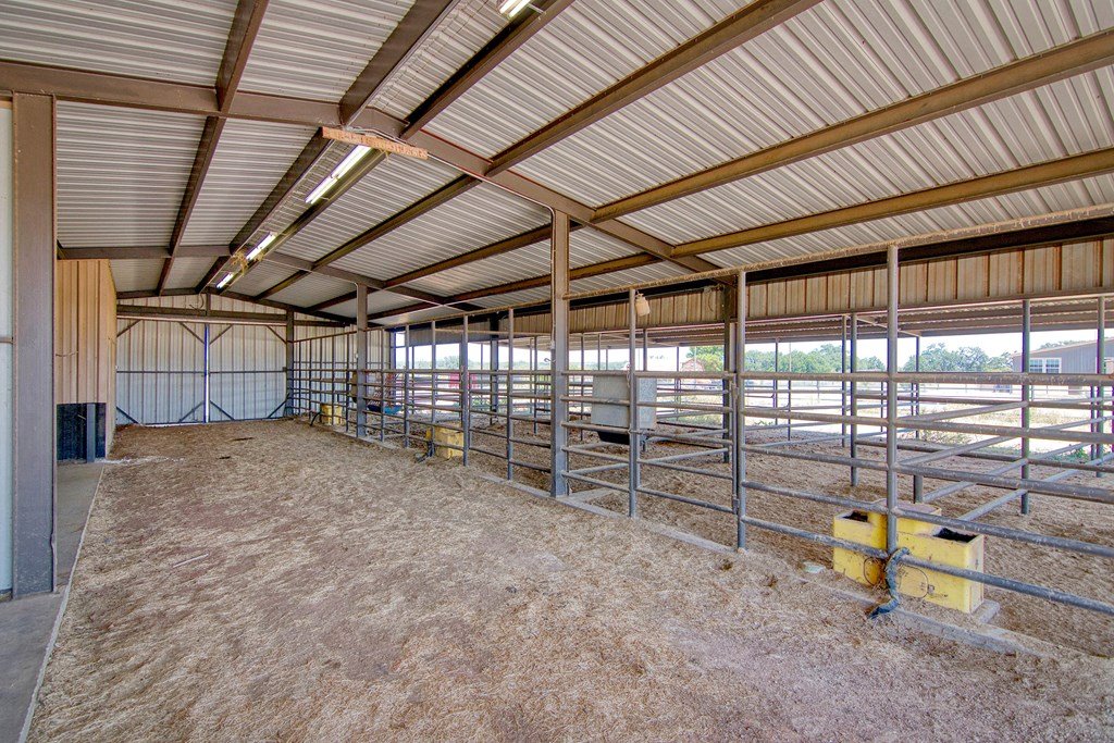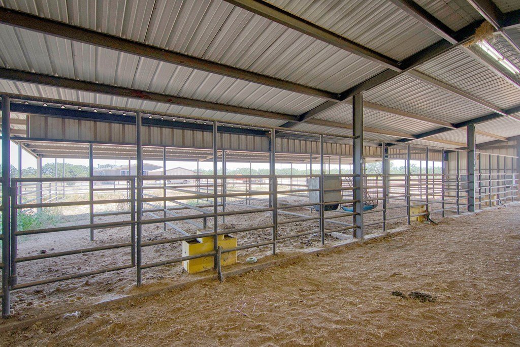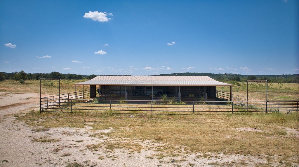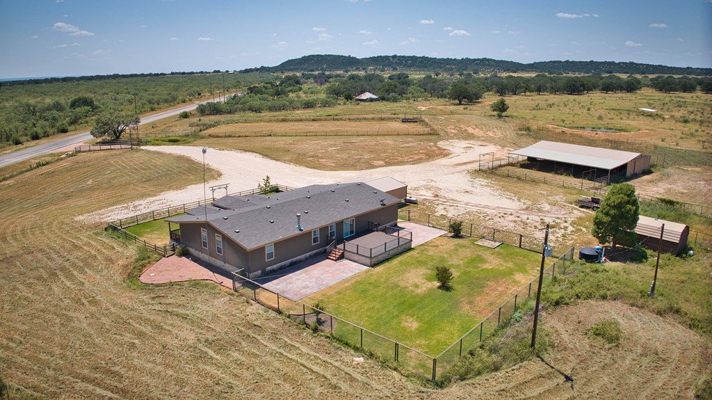 Located on 43.49 acres near London, Texas, this beautiful home, and improvements are the perfect combination for the horse enthusiast and those seeking peaceful, rural country life. The 2016 Palm Harbor triple wide home boasts well-appointed features such as granite countertops, stone fire place, wood look tile flooring, stainless appliances, and custom built-ins throughout. With four bedrooms, three full bathrooms, a versatile media/flex room, this 3192 sq. ft. home provides exceptional living with abundant space. A custom built six stall barn with turn outs is a horseman's dream! Ritchie Automatic waterers ensure your horses will be well hydrated no matter what the climate. The tack room features a revolving wall with plenty of room for your saddles and tack. There is also a wash rack, horse stocks, and hay room. The metal pipe arena with chute, holding pen and return alley is ready for your roping enjoyment. Two loafing sheds provide respite from the elements and there is a round pen for “schooling.” The land is a great combination of sandy loam and scattered live oaks are home to deer, turkey, dove and other native wildlife.