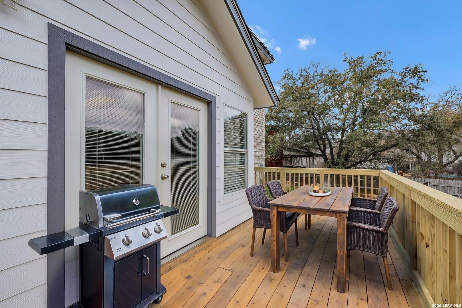 Welcome to this beautifully updated two-story home offering 4 bedrooms, 2.5 bathrooms, and 2,866 square feet of living space on a .22-acre double lot, perfectly situated on a quiet partial cul-de-sac in the heart of the highly sought after NEISD. With extensive upgrades, spacious rooms, and flexible living areas, this home blends comfort, style, and functionality. Step inside to discover the completely refreshed main floor, featuring brand-new tile flooring and baseboards throughout, creating a clean, modern look. The fully remodeled kitchen is the heart of the home and showcases new shaker-style cabinetry, elegant quartz countertops, a stylish mosaic backsplash, updated faucet, and fresh paint, offering both beauty and practicality for everyday living and entertaining. All three bathrooms have been thoughtfully renovated with new flooring, baseboards, fixtures, faucets, and paint, while the primary bathroom features dual closets, dual vanities, a garden tub and a separate shower with a brand-new shower door for a polished, spa-like feel. The primary bedroom is conveniently located on the first floor, providing privacy and ease of living, and every bedroom in the home includes a walk-in closet, offering generous storage throughout. Also located downstairs is an exceptionally spacious utility room and pantry combination, designed to maximize organization and convenience. Upstairs, you'll find three large bedrooms and an expansive loft filled with built-in shelving, creating endless possibilities. Whether you need additional bedrooms, a home office, media room, workout space, or a playroom, the flexible layout easily adapts to your lifestyle. Outside, the property continues to impress with thoughtful features and recent upgrades. The exterior and soffits of the home and garage are freshly painted. The backyard includes a brand-new back deck, perfect for relaxing or entertaining, along with a stone patio topped by a metal gazebo, creating a comfortable outdoor retreat. The yard is enclosed by a mostly brand-new fence, adding privacy and peace of mind. Garden enthusiasts will love the beautiful cedar garden boxes in the front yard, ideal for growing flowers, herbs, or vegetables. Additional highlights include a detached garage and a separate storage shed which offers approximately 350 square feet of usable space, providing excellent room for tools, hobbies, or extra storage. The home also features a two-year-old outdoor HVAC unit, adding to the list of valuable improvements. Location is another major advantage. This home is centrally located with easy access to the San Antonio International Airport, Stone Oak, major shopping and dining, downtown San Antonio, and JBSA, making commuting and everyday errands incredibly convenient. With its extensive updates, spacious layout, flexible living areas, and fantastic location, this move-in-ready home offers the perfect combination of modern upgrades and comfortable living. Don't miss the opportunity to make it yours.
