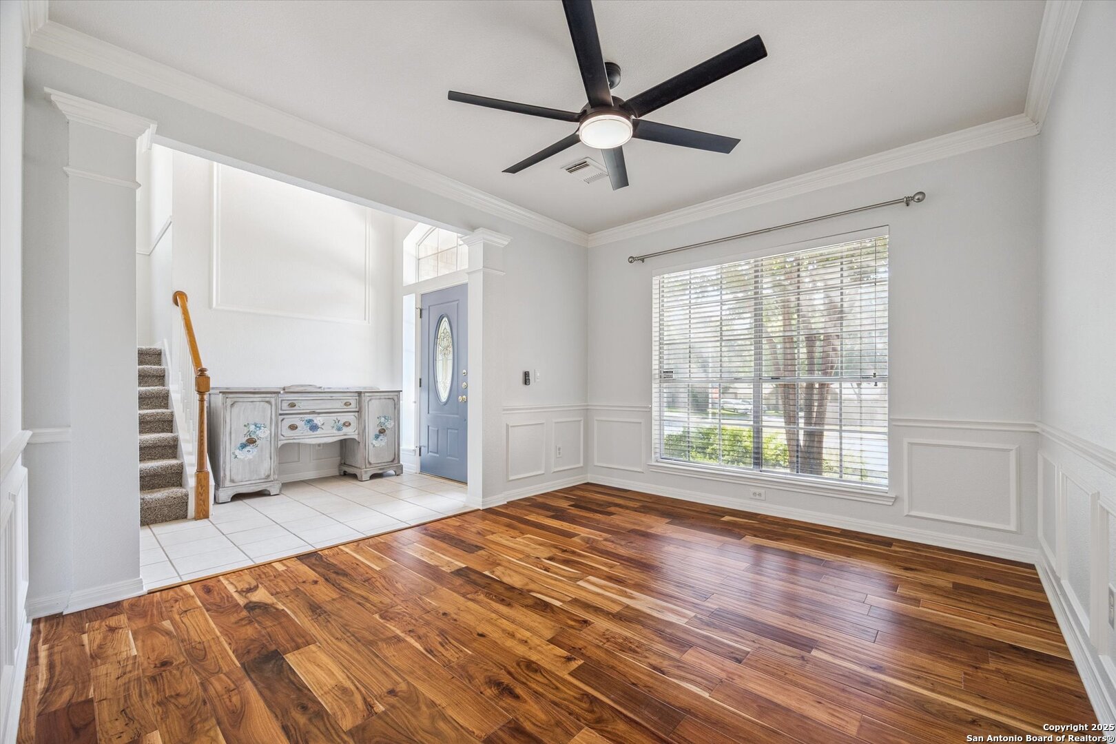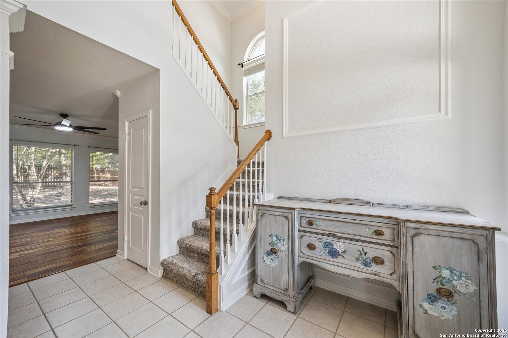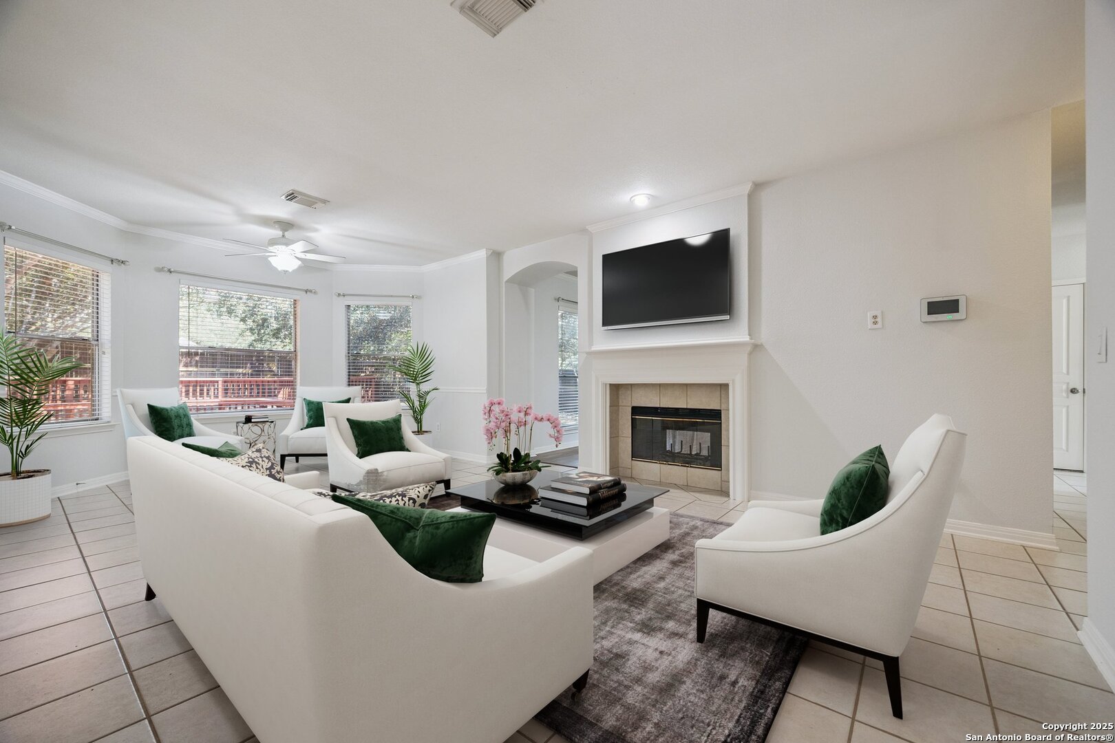 Smashing! Jewel Box of a home located in a charming and oh so convenient right off Schertz Parkway in between 1-10, 78, and I-35. Everything you could want, or need is minutes away! This great neighborhood is surrounded by parks and jogging trails. A beautiful park for the children to play or Fido to walk in is right behind! Pride of ownership and a huge sense of style is quite evident as soon as you drive up! A great floorplan awaits! Large 2-story entry, gorgeous hardwoods both in the living and formal dining. Pinterest worthy crown molding, wainscotting, and picture frame trim molding Turn the corner and visit a family room, kitchen and breakfast area you have never seen before! All open to each other with a two-sided fireplace into the family room. Each room views the great deck and heavily wooded back yard. The master is big spacious and light. The primary bath is everything you would expect. Big vanities, mirrors, garden tub, separate shower, walk in closet, separate water closet. The study could double as a fourth bedroom or upstairs den. It has great windows and prime for zoom meetings! The secondary bedrooms are large and have great closets. This home is turnkey and looks and feels like new! Tucked on a small hill, framed by old growth trees, all on a quiet cul-de-sac. Perfect home for someone who commutes to work and wants to rest and relax on weekends! San Antonio is 10 minutes away as is the Air Force Base.