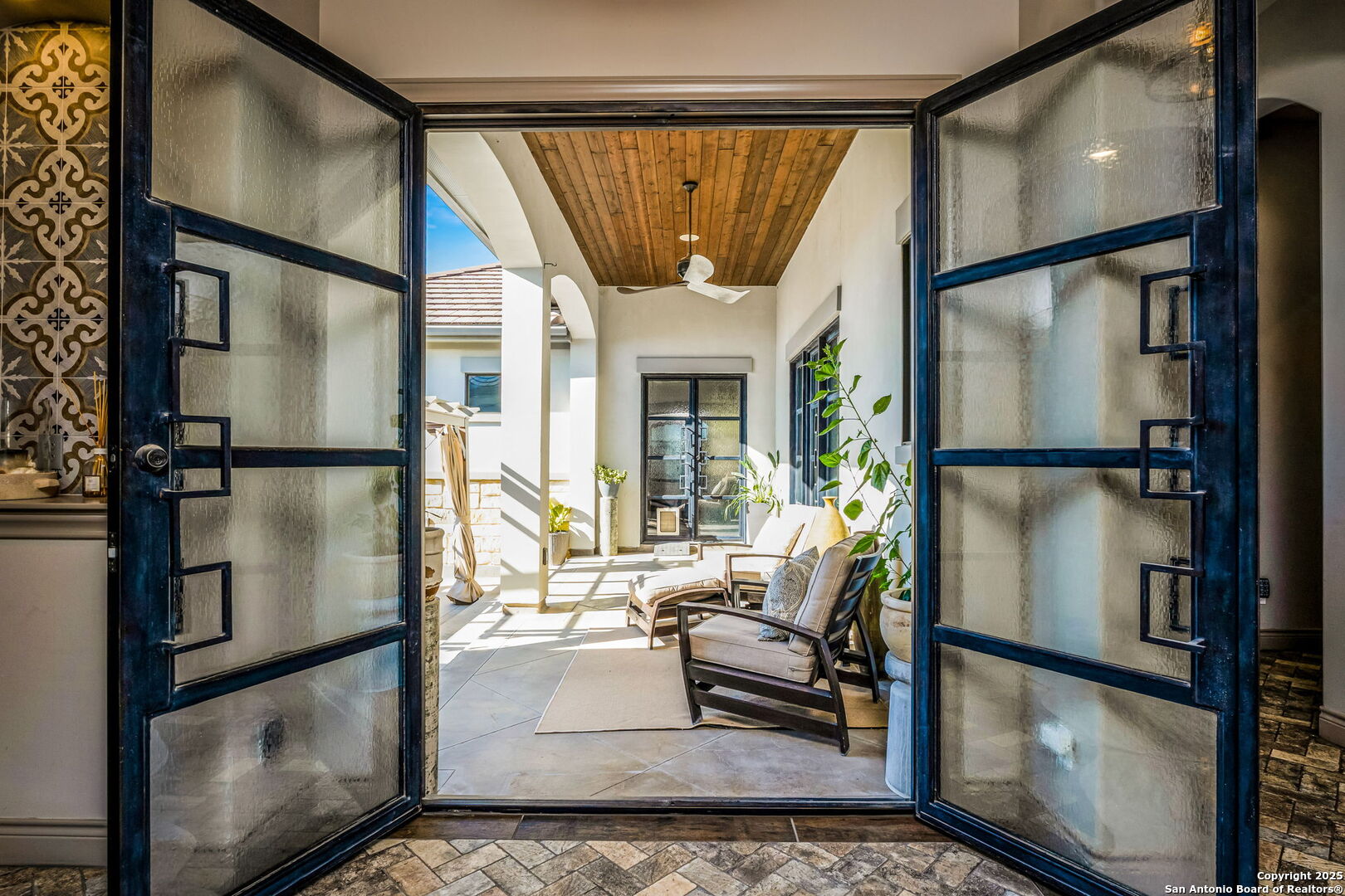 Step into a lifestyle that feels both effortless and extraordinary. This beautifully designed home welcomes you with arched hallways, a dramatic groin-vault ceiling, double metal-and-glass doors, and sun-filled windows that create an inviting, airy flow. Designed for gatherings big and small, the spacious family room opens seamlessly to a true chef-inspired kitchen-complete with a generous island that brings everyone together. The primary retreat offers a peaceful escape, featuring a spacious layout and a walk-in closet that feels like its own private dressing area. Outdoor living becomes part of everyday life with an entry courtyard, a charming side courtyard with a fireplace, and a covered patio complete with another fireplace and an outdoor kitchen-perfect for long evenings spent relaxing or entertaining. A separate casita with its own bath sits just off the entry courtyard, offering privacy and flexibility for guests, multigenerational living, or a dedicated work-from-home space. This is more than a home; it's a place where comfort, connection, and elevated living come together in the best ways. Located within the coveted John Newcombe community. Neighborhood amenities include 13 tennis courts, pickle ball courts, full fitness center, pro-shop, pool complex, and numerous activities for every member.