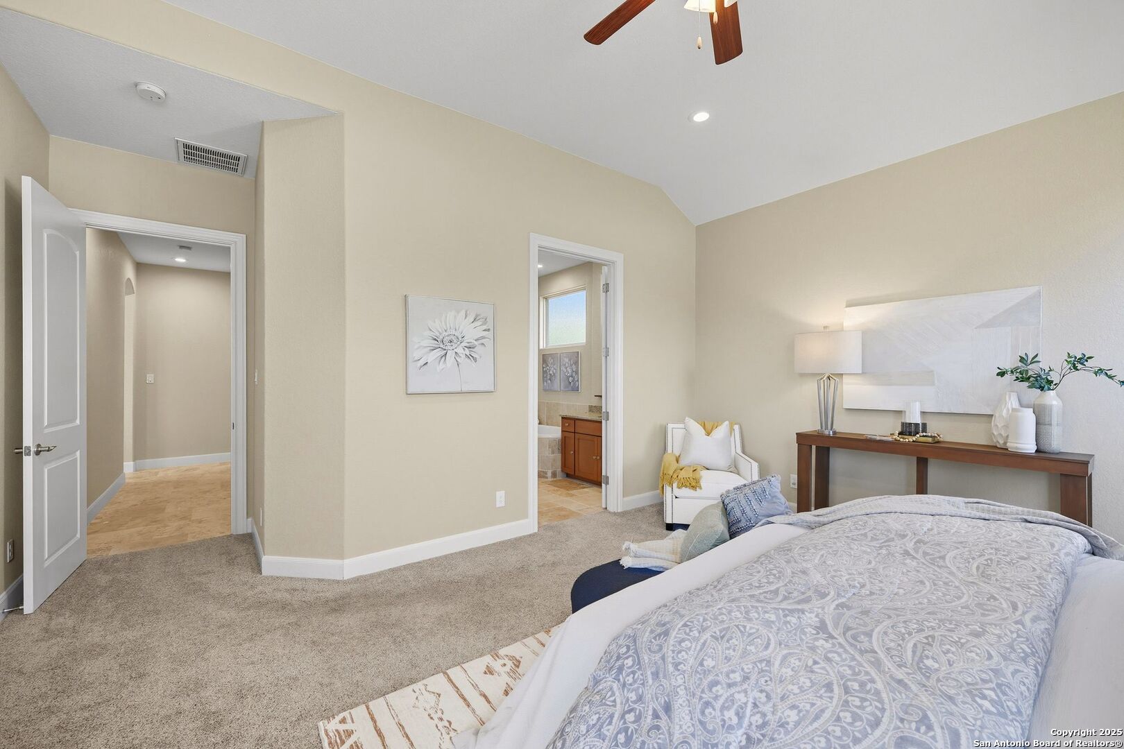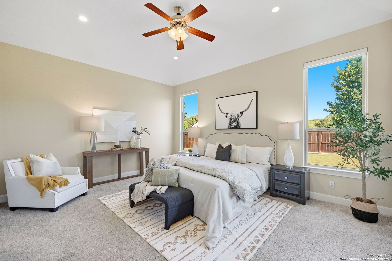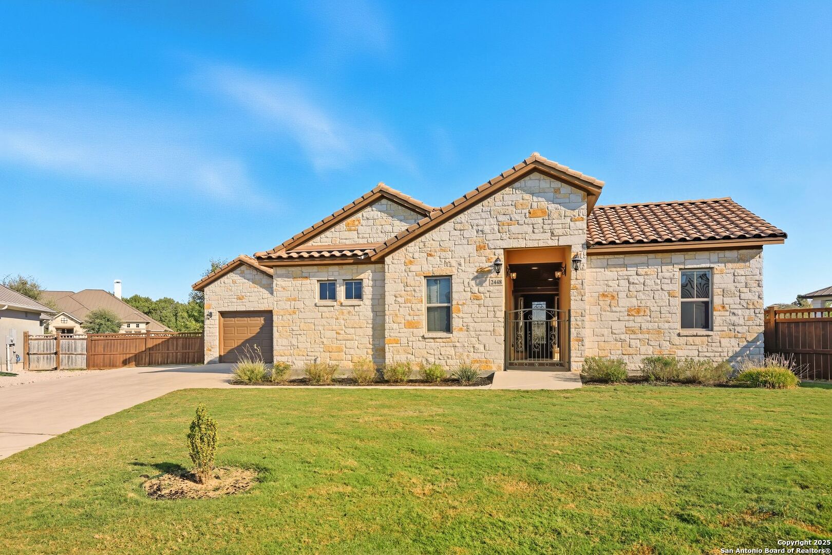 Welcome to your dream home in the heart of Newcombe Ranch Estates. This beautiful 4-bedroom, 3.5-bathroom home blends comfort, style, and practical living in one of the area's most desirable neighborhoods. Inside, you'll notice tons of natural light streaming in through the large windows, enhanced by stylish zebra shades throughout the home. The open concept living space is anchored by a cozy gas fireplace, making it both welcoming and functional. The kitchen is built for gathering, with a big island, pot filler, induction cooktop, and loads of storage perfect for cooking, entertaining, or just hanging out. The primary suite gives you a private escape with a spacious walk-in closet and a spa like bathroom. There are three additional bedrooms and well appointed bathrooms that offer plenty of space for family and guests. A dedicated mudroom keeps daily life organized and running smoothly. Step outside to your backyard oasis. Sitting on a generous .369 acre lot, the home features a large covered patio perfect for relaxing in the shade, grilling, or enjoying an evening with friends. The expansive wrap around yard gives you even more space to play, garden, or unwind. There's also a young fig tree planted out back that will only get better with time. Just off the front of the home opposite the front door and still under the main roof you'll find a private guest room with its own full bathroom and closet. It's ideal for guests, multigenerational living, or even a quiet office. Other highlights include a three car garage with a built-in gun safe, a water softener system, zebra shades, and quality finishes throughout. Living at 2448 Crikey Court means you're not just getting a fantastic home, you're also minutes from some of the best spots in New Braunfels. Grab a bite at Krause's Cafe, float the Comal or Guadalupe River, take in live music at Gruene Hall, cool off at Schlitterbahn, or enjoy a day outdoors at Landa Park. You're also close to H-E-B, top-rated schools, and all the everyday essentials that make New Braunfels such a great place to live.