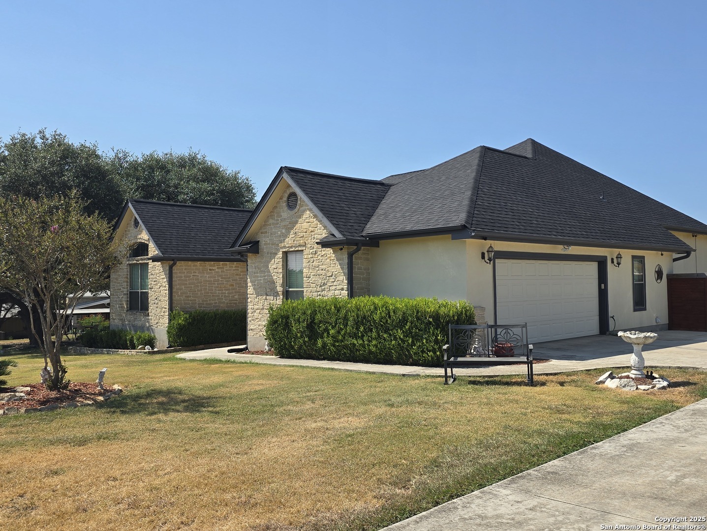 24531 Ripple Way offers the perfect blend of Hill Country charm and modern convenience, now featuring a brand-new roof added in July 2025. Located behind controlled access gates in the desirable Seven Hills Ranch community of Comal County, this 1.3-acre retreat includes a spacious 3-bedroom layout with a dedicated study, ideal for working from home. An open-concept interior anchored by a cozy fireplace creates a welcoming space for everyday living and entertaining. Outside, enjoy your own private oasis with an in-ground pool, gazebo, and storage shed, surrounded by mature trees and the natural beauty of the Texas Hill Country. A water softener system enhances comfort, while the property's prime location offers easy access to both San Antonio and New Braunfels. From tubing the Guadalupe and Comal Rivers to enjoying Schlitterbahn, Whitewater Amphitheater, and the charm of Gruene, this home delivers a lifestyle as relaxing as it is exciting.