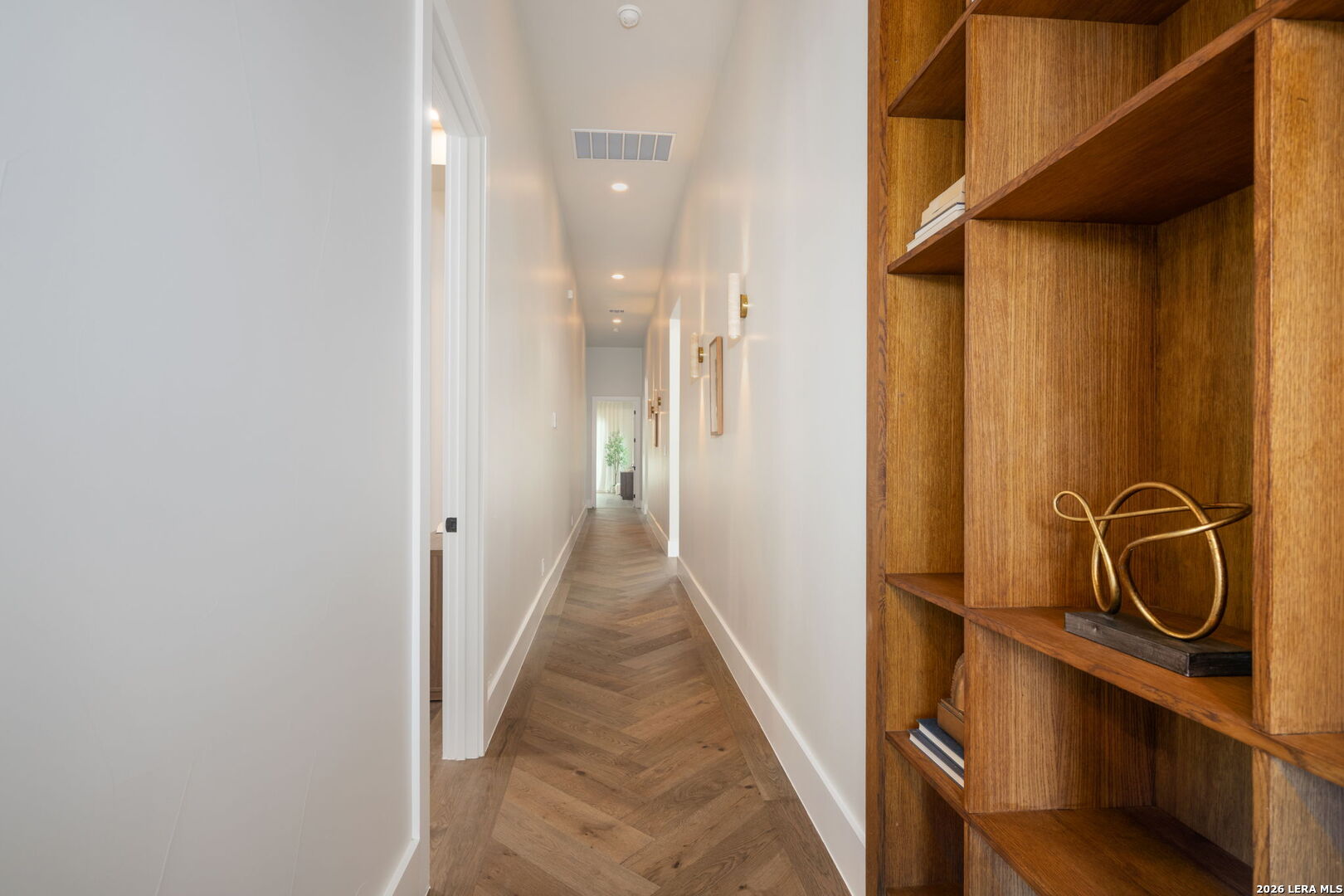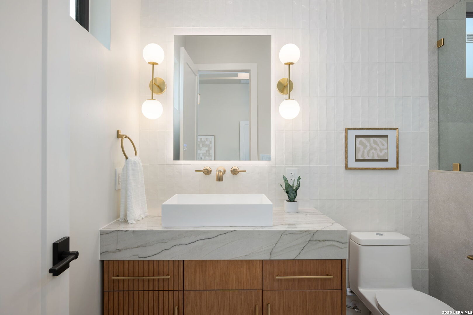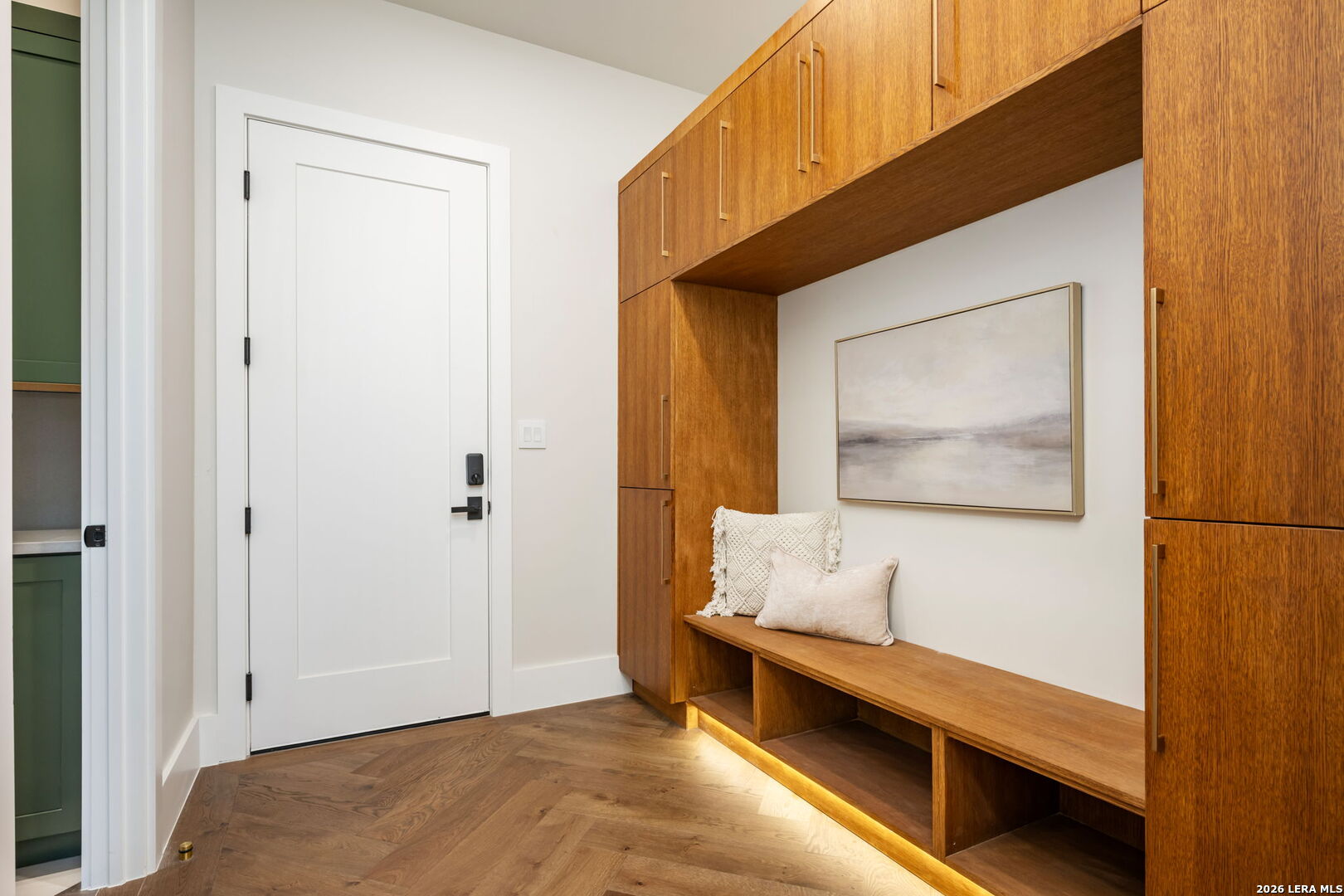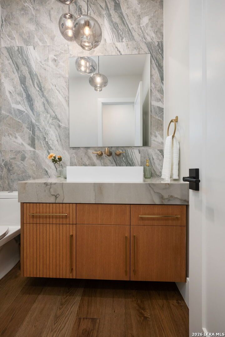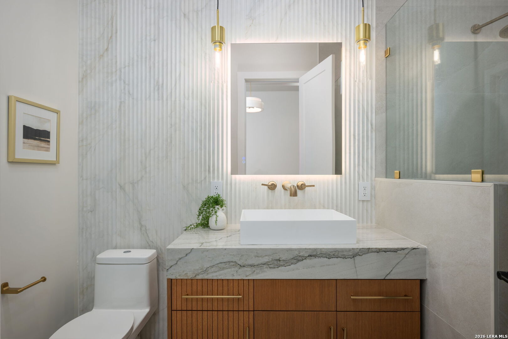 Positioned on the iconic Cliff Line street within The Dominion, this architectural masterpiece is a commanding expression of modern luxury-surrounded by San Antonio's most prestigious $3M+ estates and designed to captivate at every turn. The home makes an unforgettable first impression with a striking 12-foot metal-and-glass pivot door-an introduction to the refined design and elevated craftsmanship that unfolds throughout its 5,200 square feet. Inside, a symphony of white oak and natural stone defines the interiors, from wide-plank flooring to rift-cut custom cabinetry and built-ins that create a warm yet sophisticated palette. Towering 22-foot ceilings anchor the grand living space, while expansive 20-foot sliding glass walls dissolve the boundary between indoors and out-flooding the home with natural light and framing the resort-style backyard beyond. A designer kitchen appointed with Taj Mahal quartzite, a dramatic waterfall island, and a full suite of JennAir appliances-including a 48-inch brass-accented six-burner range with griddle and double ovens, built-in refrigeration and freezer towers, dishwasher and wall oven. Every detail is curated for both elevated entertaining and everyday indulgence. Five luxurious bedrooms, each with their own ensuite bath, offer privacy and comfort, with three generously scaled suites located on the main level. The primary suite is a retreat of its own-featuring a coffered ceiling with custom lighting, bespoke white oak paneling, private outdoor access, and custom built-ins. The spa-inspired bath is equally captivating, complete with quartzite vanities, a floating soaking tub, two private water closets, and an expansive walk-in shower with dual rain heads wrapped in floor-to-ceiling tile. Designed for both relaxation and entertaining, the home offers multiple living spaces-including a secondary downstairs lounge with a wet bar and half bath, an upstairs retreat, and seamless indoor-outdoor flow to a covered patio with a full outdoor kitchen. Beyond, a heated pool and spa with water features create a private resort experience, all set within a lush, usable yard ideal for both play and leisure. Additional highlights include surround sound throughout, a three-car side-entry garage with modern glass doors, and a sleek metal roof paired with a timeless stucco exterior-delivering both durability and design excellence. Located within the guarded gates of The Dominion-one of San Antonio's most sought-after golf course communities-residents enjoy access to a world-class country club, championship golf, and an unmatched lifestyle of privacy, prestige, and convenience. This is more than a home-it's a statement.
