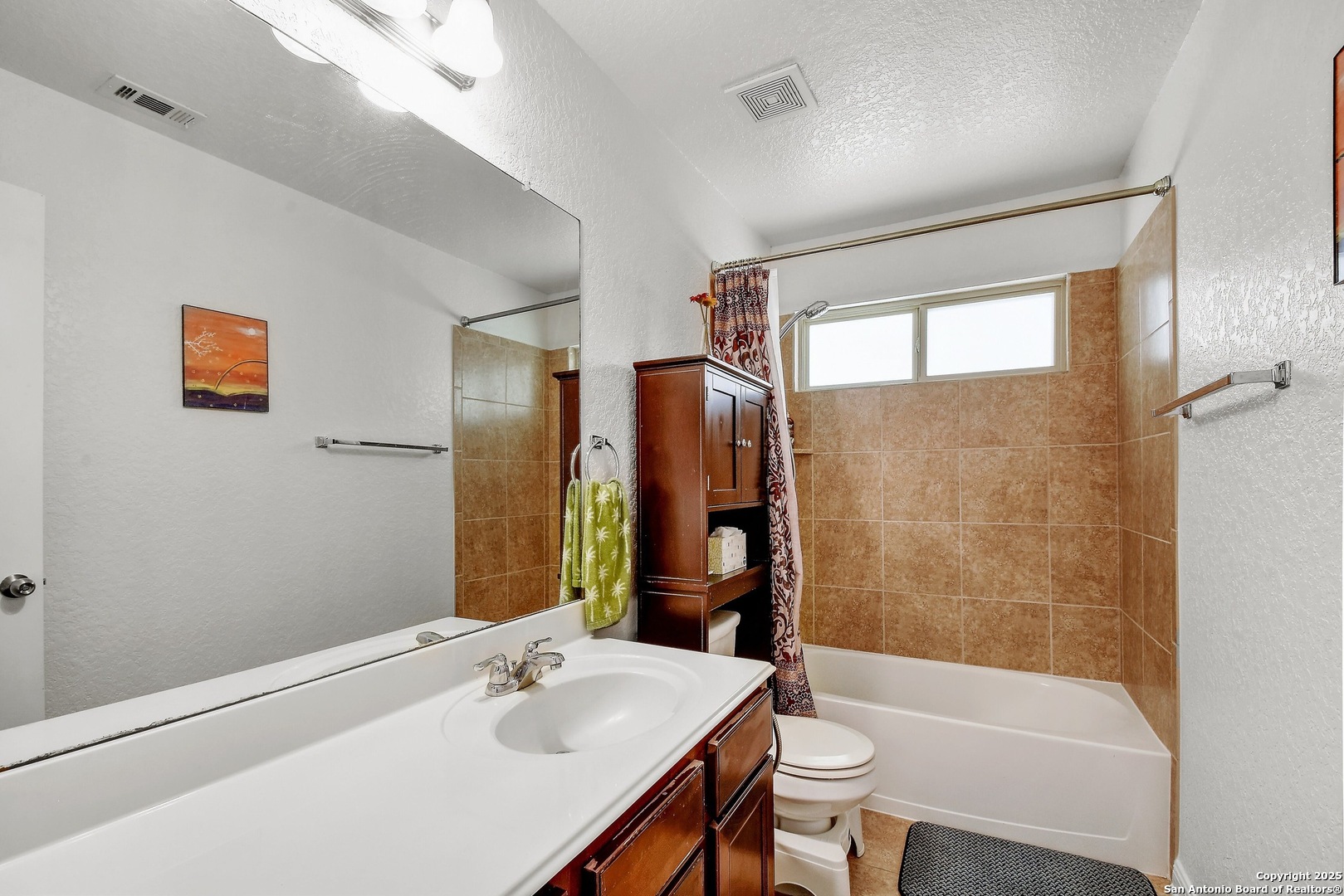 Gorgeous 1.5 story home located in the gated community of Two Creeks. This spacious home offers 4 bedrooms, 3 full baths and just over 2,600 square feet. Large open living area with high ceilings, kitchen has granite counters, tile backsplash, stainless steel appliances and tons of cabinet space. Spacious primary bedroom and large walk in shower and his and her vanities in primary bathroom. Media room/loft area upstairs makes for a great second living area. Covered patio in back with added deck and pergola. Easy access to I-10 and only a quick trip to The Shops at La Cantera and Six Flags Fiesta Texas.
