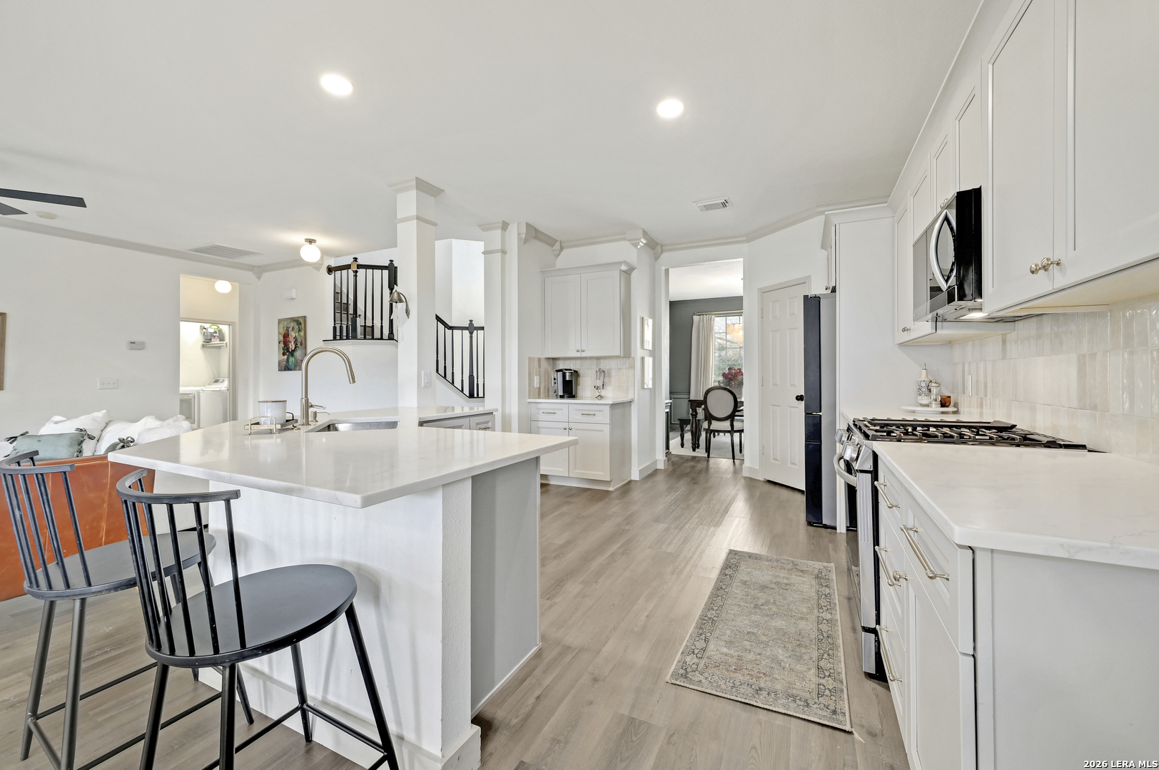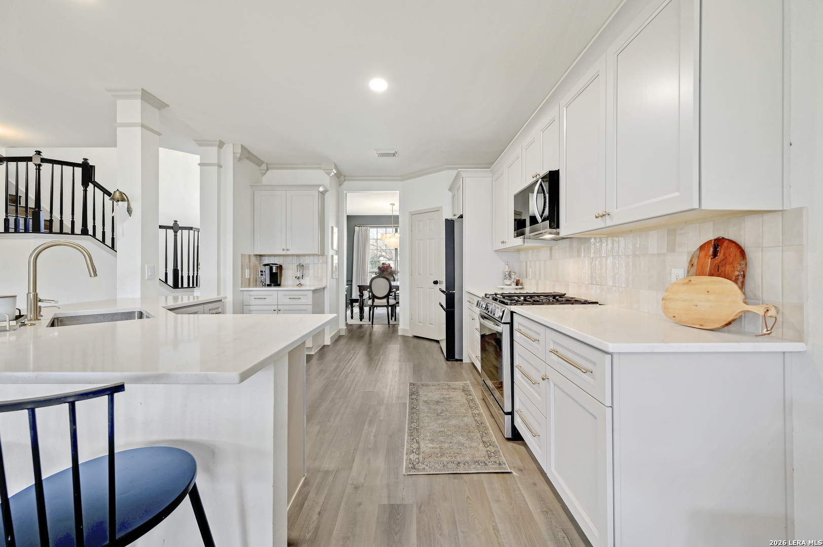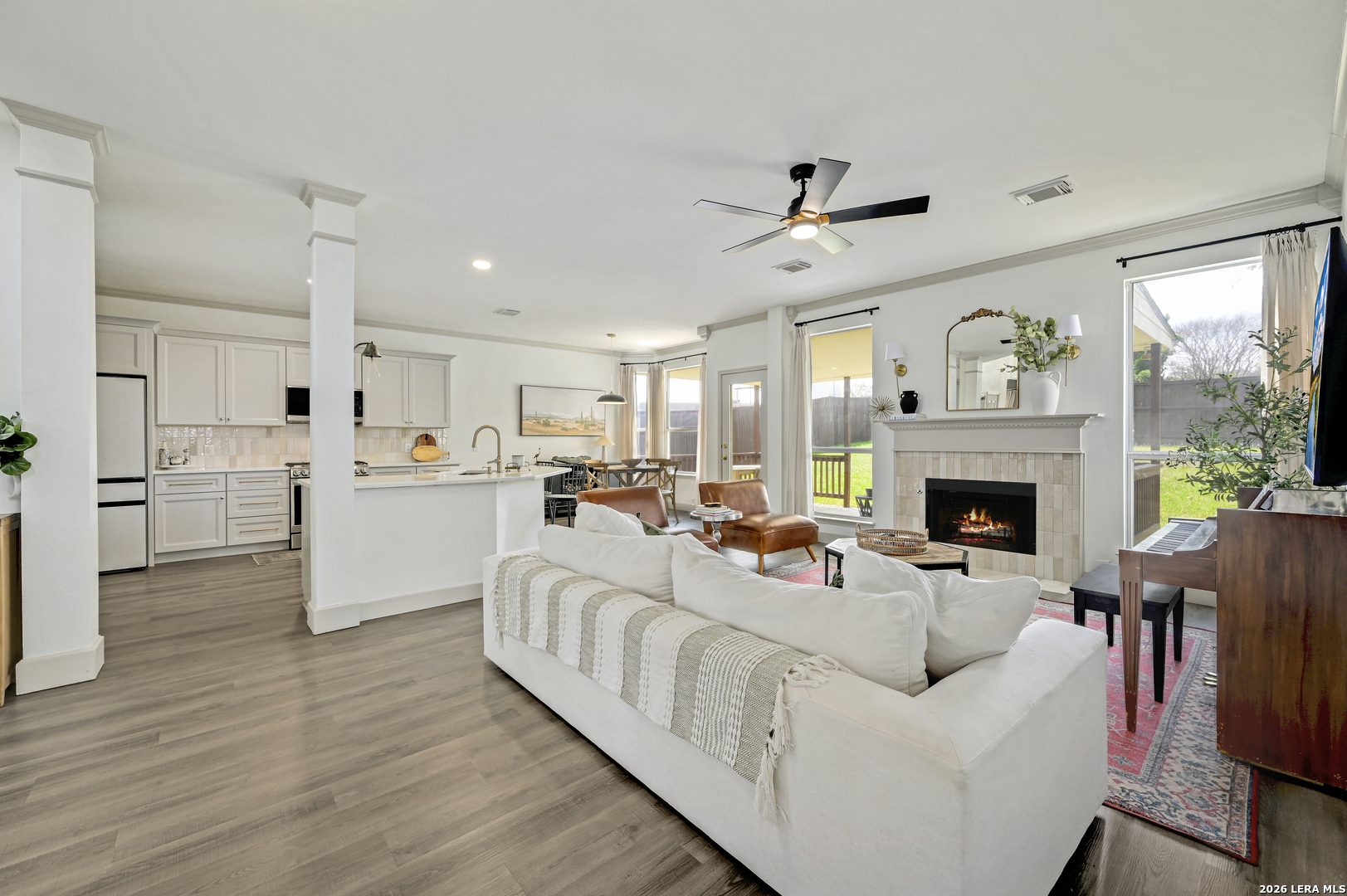 Welcome to this beautifully updated 2 story home in the highly sought-after Stone Oak area, offering 4 bedrooms, 3 bathrooms, and 3,000 SF of comfortable living space. The home is filled with stylish upgrades, including luxury vinyl flooring throughout the entire first floor and updated light fixtures in every room. The fully remodeled kitchen is a standout, featuring custom soft-close cabinetry, quartz countertops, designer backsplash, and modern hardware. The first floor offers a formal dining room, a spacious living area with a cozy retiled fireplace, and a convenient secondary bedroom with a full bath, perfect for guests or multigenerational living. Upstairs, the oversized primary suite features an updated ensuite bath and a large walk-in closet. Two additional bedrooms with walk-in closets and two versatile loft spaces provide endless possibilities for a game room, office, media area, or flex space. Step outside to enjoy the large covered patio overlooking the backyard-ideal for relaxing evenings or entertaining family and friends.