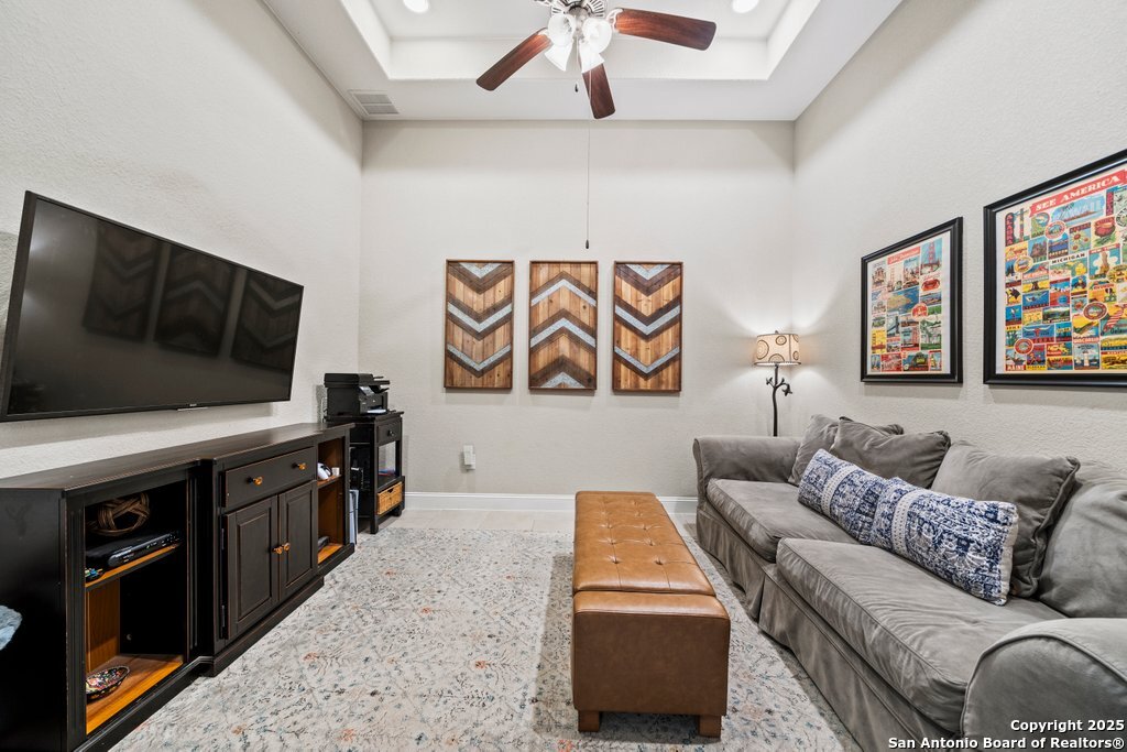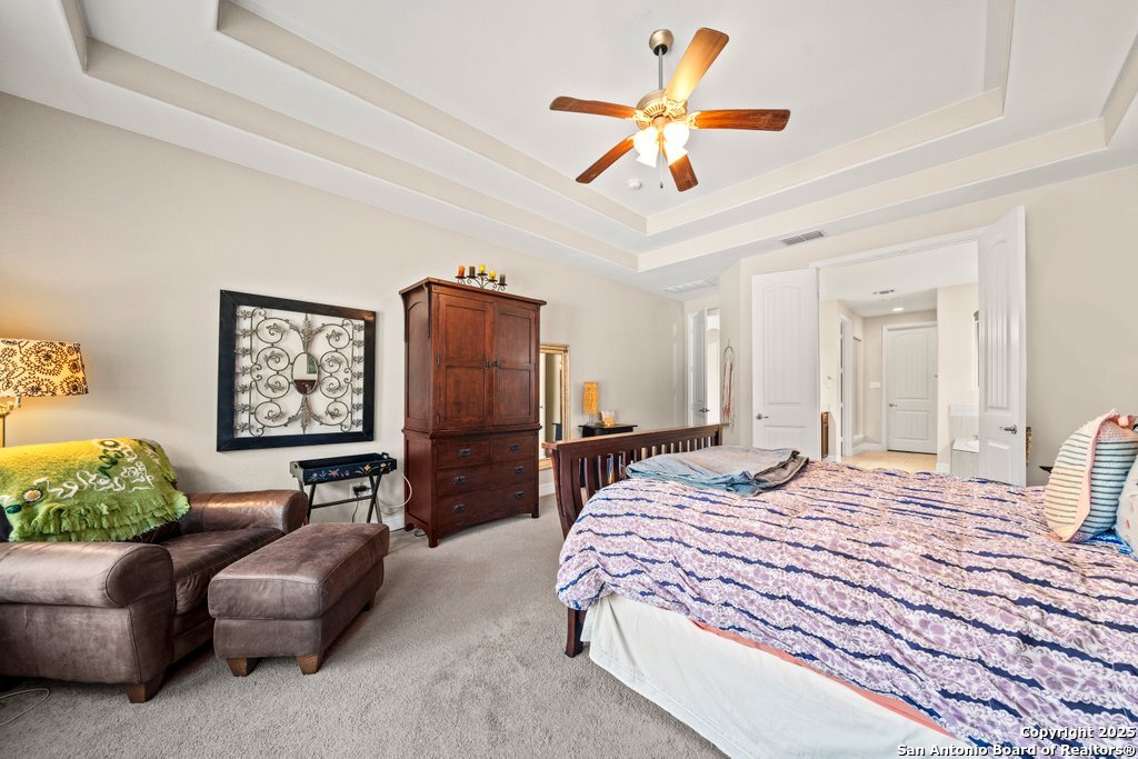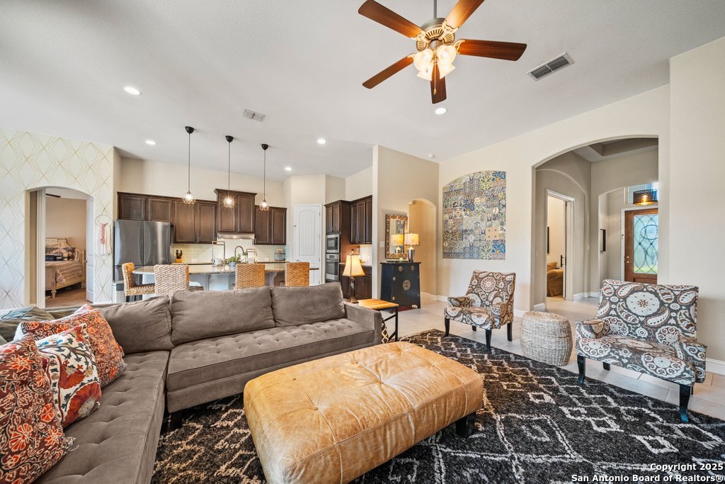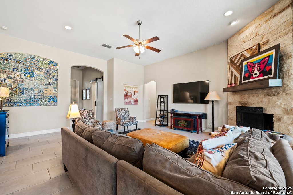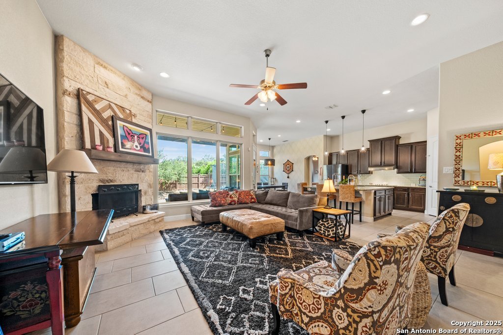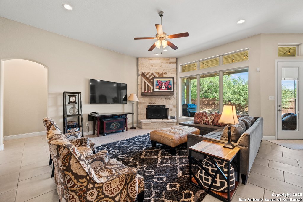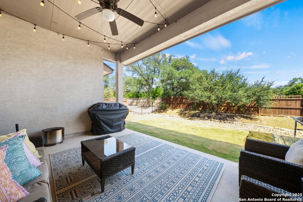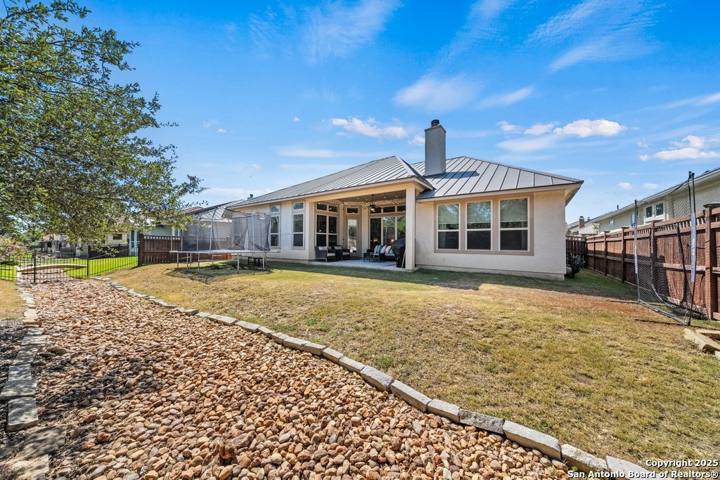 Welcome to this stunning 4-bedroom, 3-bath home located in the prestigious, gated community of John Newcombe Estates. Situated in the fully built-out Walk About Way section-no new construction or available lots-this one-story home offers quiet, established neighborhood living in one of New Braunfels' most desirable areas. Inside, you'll find an open-concept layout with elegant coffered ceilings, a spacious 3-car garage, and a durable metal roof. The kitchen flows seamlessly into the large great room with a wood-burning fireplace-perfect for entertaining or relaxing evenings at home. A flexible bonus space offers the ideal setup for a home office, study, or additional living area to fit your lifestyle. The spacious primary suite includes a luxurious bath and oversized walk-in closet. Outside, a large covered patio provides the perfect spot to unwind or host guests. As a resident, you'll enjoy exclusive access to the John Newcombe Country Club, offering resort-style amenities including 13 tennis courts, 8 pickleball courts, and coming soon-Padel courts! The club also features a full gym, resort-style pool, tennis pro shop, kids' center, summer camps, and a vibrant Mahjong league. Group fitness classes such as yoga, Pilates, and strength training are also available. This is more than a home-it's a lifestyle in a rare, fully completed section of one of New Braunfels' premier communities. Come experience it for yourself and make it yours today.
