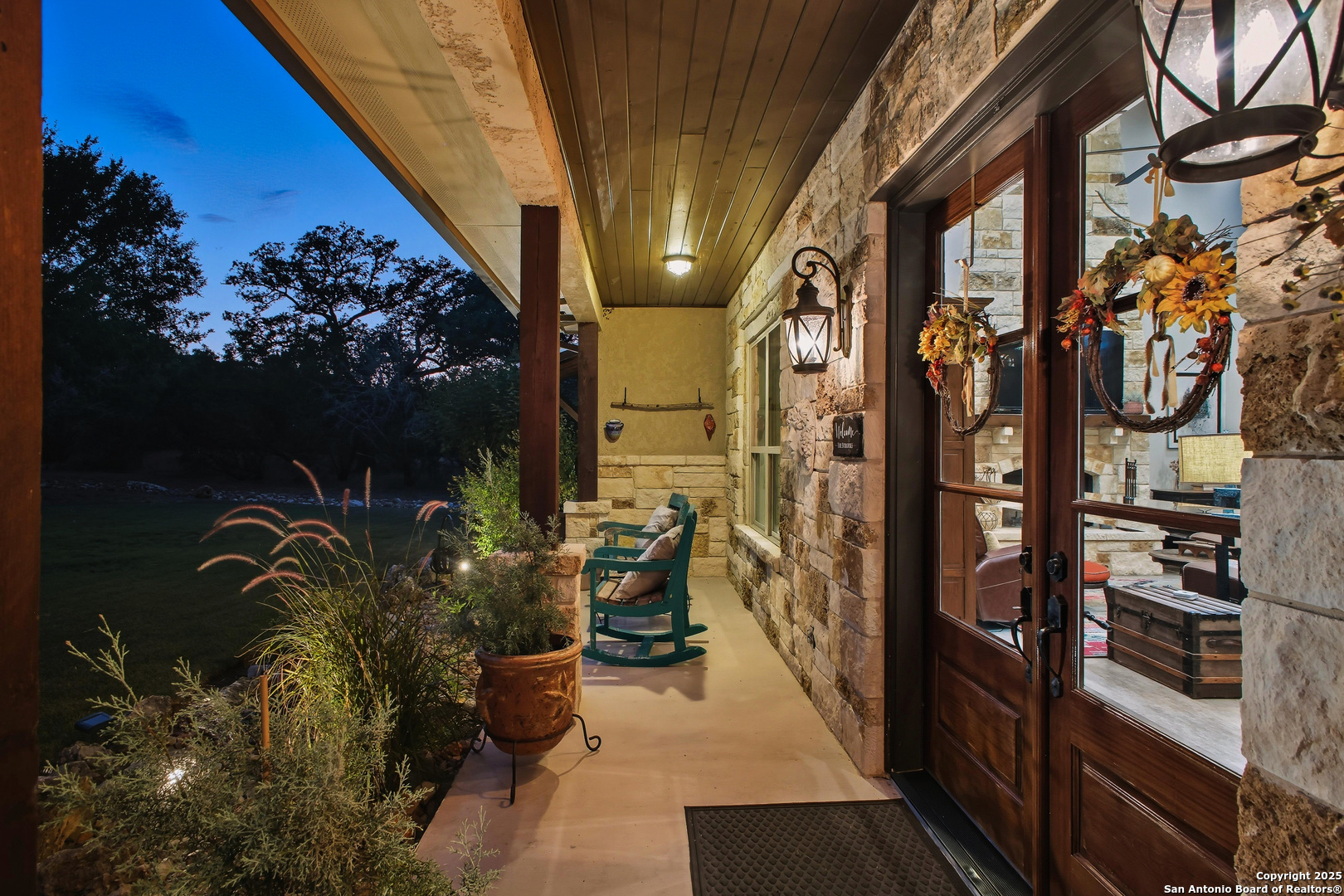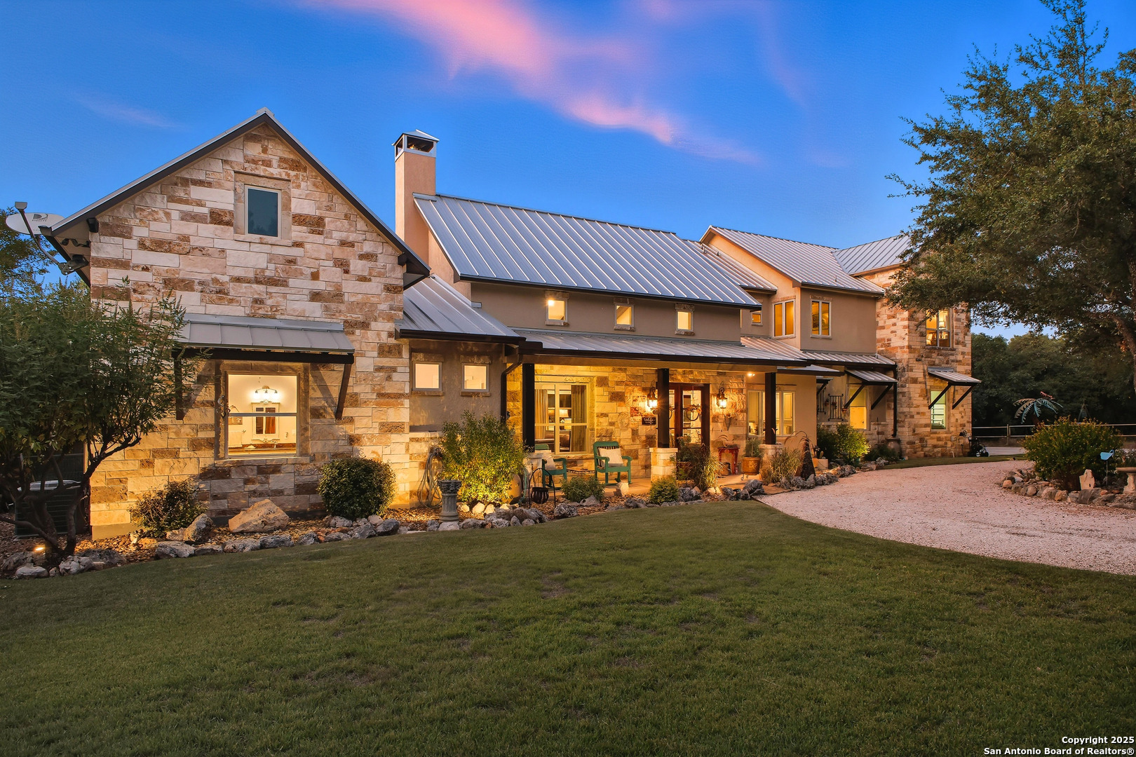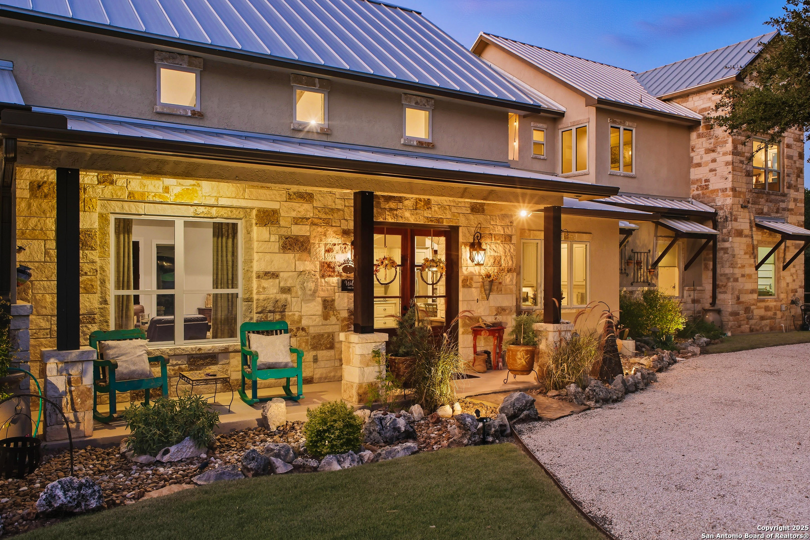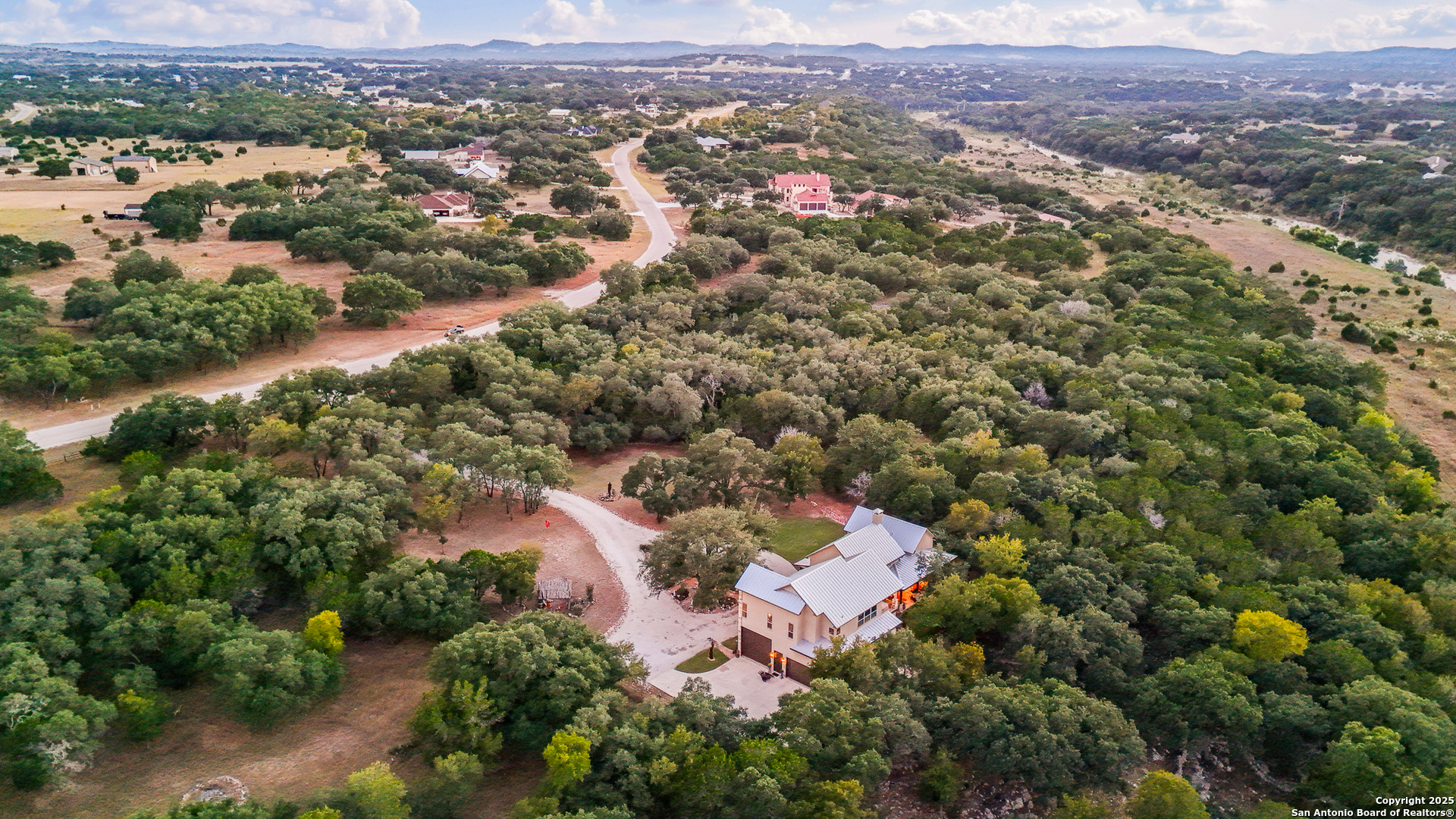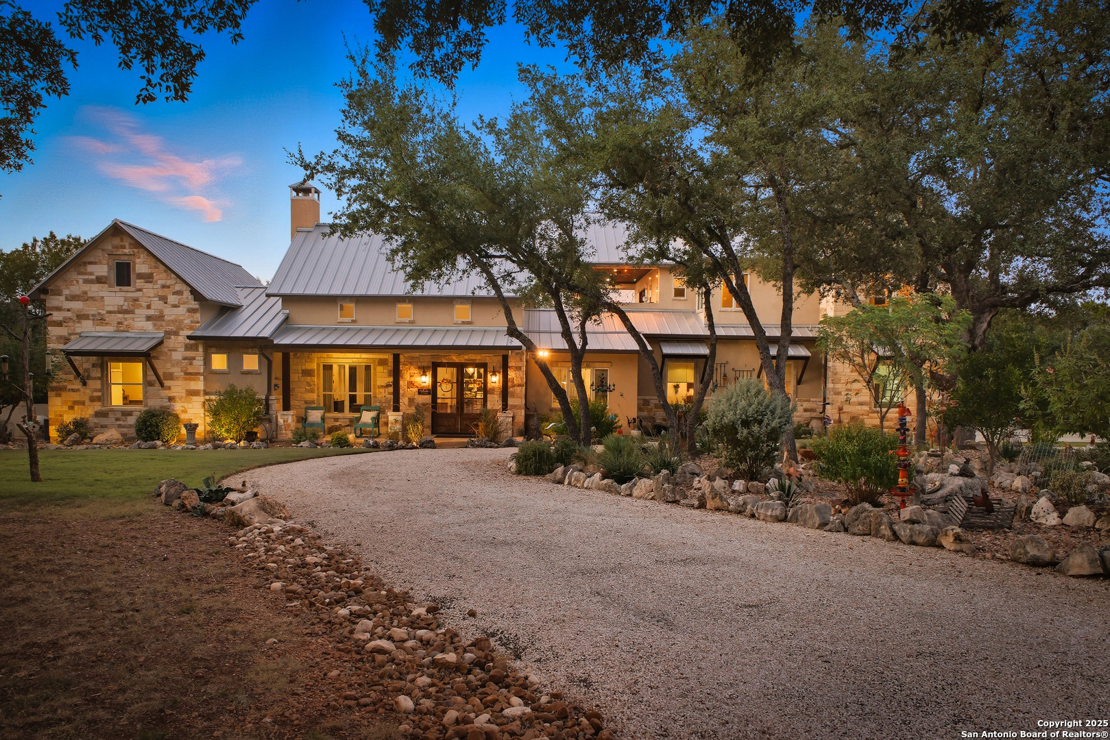 Welcome to this stunning 2,731 sq. ft. custom home on 2.83 acres, perfectly located just outside Bandera, the "Cowboy Capital of the World." This property offers the best of both worlds-peaceful Medina River frontage and breathtaking Hill Country views that stretch for miles. Set in an equestrian-friendly neighborhood, the grounds are beautifully landscaped with manicured trees, creating a private retreat where deer and wildlife frequently visit. Inside, you'll find soaring ceilings, oversized windows that capture the views, and a spacious open layout designed for modern living. The gourmet kitchen is the heart of the home, featuring a large granite island, stainless steel appliances, and abundant storage. Enjoy multiple outdoor living spaces including a front covered patios, a covered back patio, and an upstairs covered patio-all perfect for entertaining or relaxing while watching Hill Country sunsets. The floor plan is thoughtfully designed with a second living quarters upstairs, complete with its own bedroom, living area, full kitchen, and private patio-ideal for hosting guests, extended family, or in-laws. Beyond the home, the community amenities add even more value with basketball courts, a rodeo arena, swimming pools, and additional guest lodging available for visitors plus so much more. Additional highlights include a 4-car garage, abundant storage, and plenty of space for both relaxation and recreation. This one-of-a-kind property blends elegance, comfort, and Hill Country charm-don't miss your opportunity to make it yours.