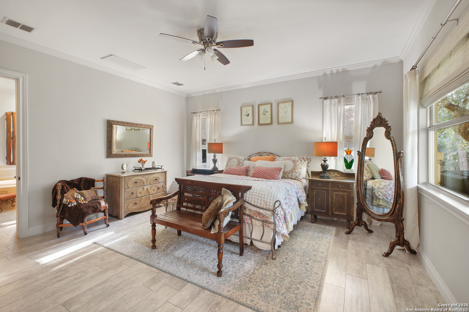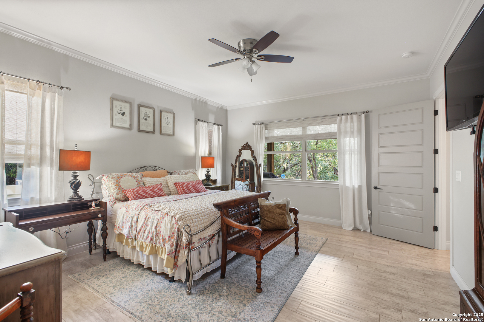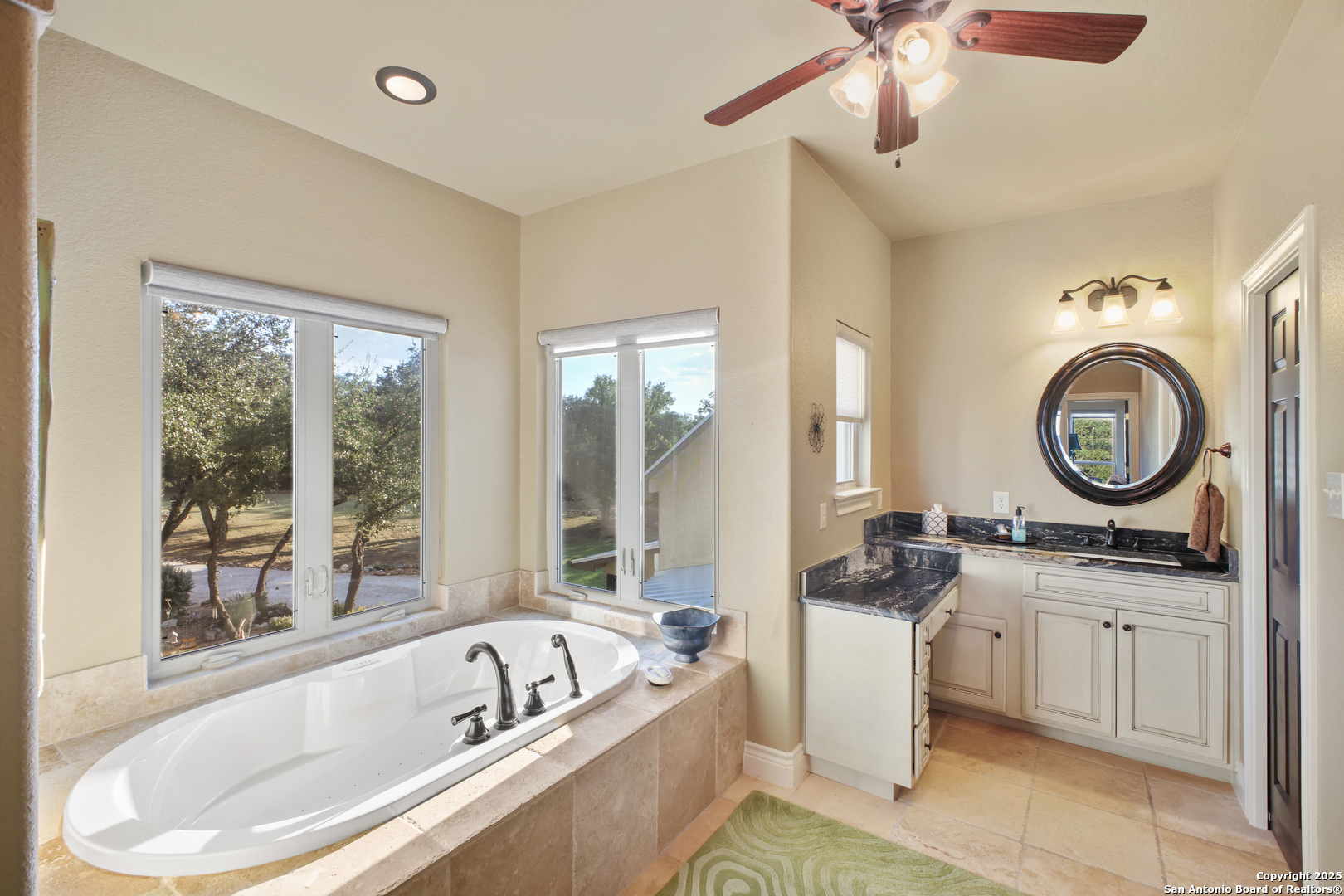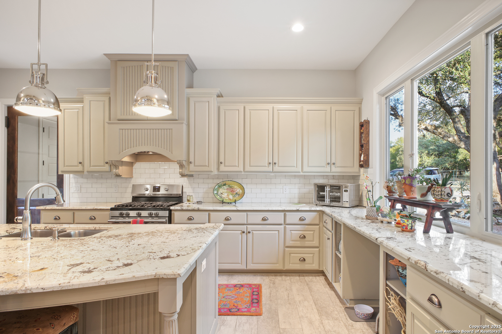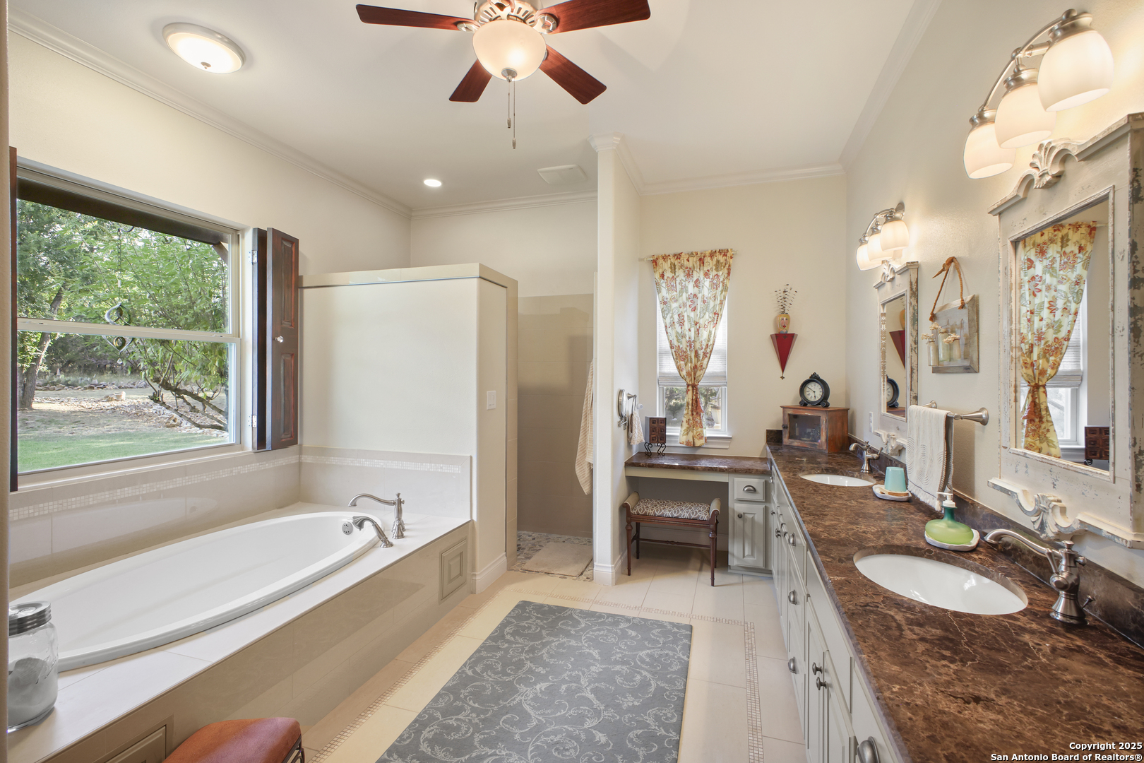 Welcome to this stunning 2,731 sq. ft. custom home on 2.83 acres, perfectly located just outside Bandera, the "Cowboy Capital of the World." This property offers the best of both worlds-peaceful Medina River frontage and breathtaking Hill Country views that stretch for miles. Set in an equestrian-friendly neighborhood, the grounds are beautifully landscaped with manicured trees, creating a private retreat where deer and wildlife frequently visit. Inside, you'll find soaring ceilings, oversized windows that capture the views, and a spacious open layout designed for modern living. The gourmet kitchen is the heart of the home, featuring a large granite island, stainless steel appliances, and abundant storage. Enjoy multiple outdoor living spaces including a front covered patios, a covered back patio, and an upstairs covered patio-all perfect for entertaining or relaxing while watching Hill Country sunsets. The floor plan is thoughtfully designed with a second living quarters upstairs, complete with its own bedroom, living area, full kitchen, and private patio-ideal for hosting guests, extended family, or in-laws. Beyond the home, the community amenities add even more value with basketball courts, a rodeo arena, swimming pools, and additional guest lodging available for visitors plus so much more. Additional highlights include a 4-car garage, abundant storage, and plenty of space for both relaxation and recreation. This one-of-a-kind property blends elegance, comfort, and Hill Country charm-don't miss your opportunity to make it yours.