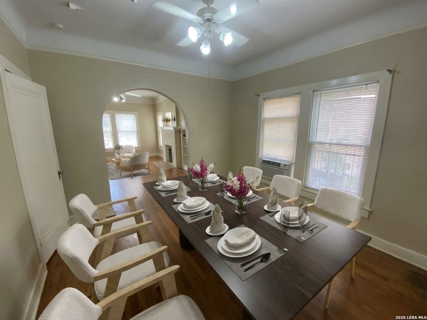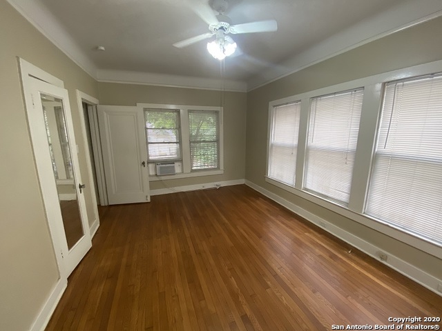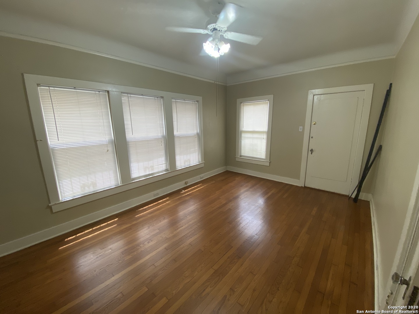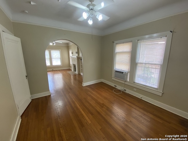 Historic Monte Vista; 1st floor apartment: Spacious 1 bedroom, 1 bath w/fireplace in living room; formal dining; hard wood floors throughout. Refrigerator included. Lots of character. Conveniently located near bus stops & Landa Library. Minutes from Quarry & Pearl shopping; UIW & Trinity; downtown; Hwy 281, IH-10, and IH-35. Features nearby sidewalks and bike lanes for easy local travel. All that's missing is you!