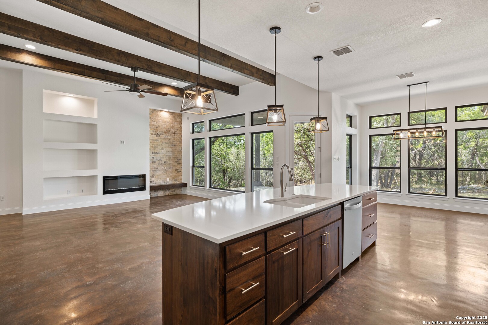 Indulge yourself in luxurious modern living in the desirable gated community of the Enclave at Canyon Lake where every day will feel like a getaway. Nestled on about 1.25 acres of Hill Country beauty, this picturesque single family home will sure to please. The home features 4 spacious bedrooms, 2 full baths, and a convenient half bath, along with a dedicated office/study. Spanning an impressive 2,511 square feet, this haven of a home provides ample room for comfort and relaxation. High ceilings and stained concrete flooring throughout. Imagine waking up to the breathtaking scenic views that greet you from every corner of the house, perfectly capturing the essence of Canyon Lake's natural beauty. The large lot and no adjacent neighbors offer you an abundance of privacy that many yearn for. The open floor plan effortlessly flows from room to room, creating a harmonious blend of space and style that invites you to live and entertain with ease. The heart of the home, a sun-drenched living area, promises cozy mornings and lively evenings, all framed by picturesque vistas. A well-appointed kitchen awaits your culinary adventures, offering the perfect backdrop for creating memorable meals and moments. All appliances included! Unwind in the serene master suite, a true retreat with its own slice of the stunning landscape. Additional bedrooms offer versatility, accommodating your every need with elegance and grace. The 3-car garage offers plenty of space for your vehicles or as an added storage space. Step outside to a world of endless possibilities, where you can savor the fresh air and unparalleled views that make this property truly special. Just up the road, enjoy a dip in the gated community pool while enjoying the spectacular 30 acres of private Canyon Lake waterfront. It's Hill Country living at its finest!