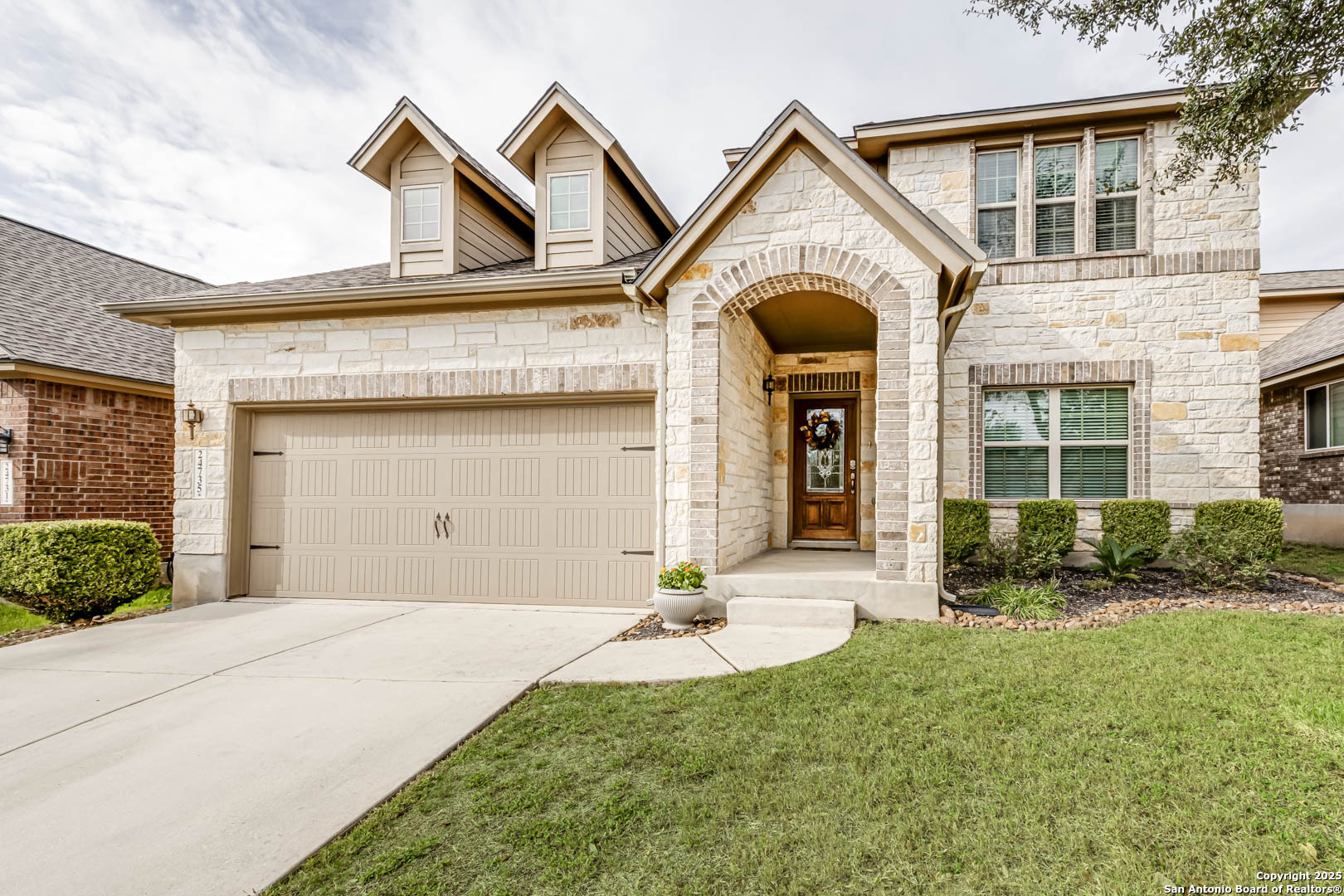 Presenting style and convenience behind the gates of Two Creeks, at 24735 Buck Creek. This well-maintained 4-bedroom/2.5 bath, with an upstairs loft is the only floor plan of its kind in the subdivision. The newly remodeled kitchen has been thoughtfully updated to feature quartz countertops, marble backsplash, painted cabinets with new hardware, microwave, reverse osmosis water system, and updated outlets with USB charging ports, for convenience. The spacious living area centers around a cozy fireplace, that looks out on your landscaped backyard, with an outdoor entertaining deck, beautiful flower bed and under the shade of (4) crape myrtles. The formal dining room showcases upgraded lighting that makes it warm and inviting for all guests. The primary suite includes a custom California Closet and an updated bathroom with new countertops, mirrors, faucets, and towel holders. Secondary bedrooms also feature upgraded outlets, switches and USB charging ports. Additional highlights include recent roof, water heater, dishwasher, water softener and sunshades on back patio for those Texas evenings. Community amenities include pool, park, and playground, all within walking distance, with convenient access to IH-10, H-E-B, The Rim, La Cantera, and the 1604/IH-10 Corridor.