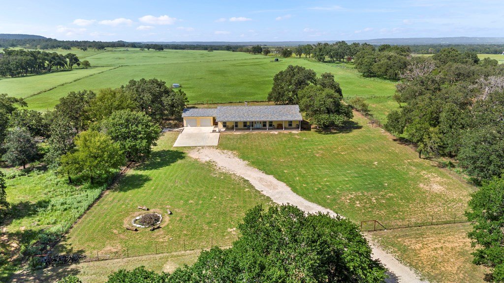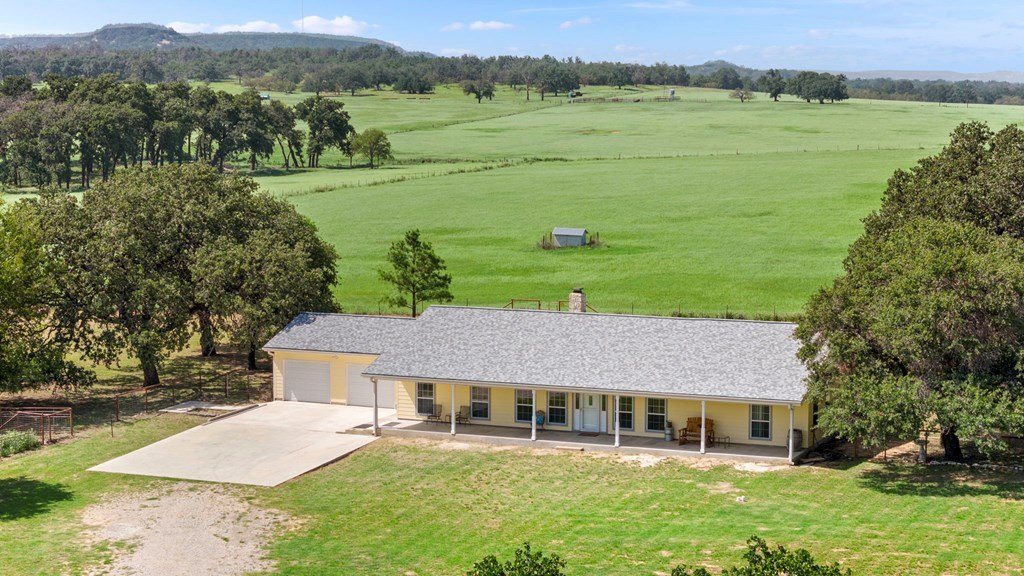 Beautiful 31.86 unrestricted Acres, 5 minutes from Main Street downtown Fredericksburg with a 3 bed 2 bath home. You will be captivated the moment you start your meandering drive down the private Post Oak lined groves where multiple Axis, turkey and white tail deer roam. The one-story ranch style home is not only welcoming and spacious but an entertainer's dream. Open floor plan with oversized primary bedroom and bath. Secondary bedrooms have ensuite sink vanities. The front porch and back porch make for relaxing mornings and evenings while you sit and enjoy the wildlife and quiet peacefulness of the Texas Hill Country. The back pasture not only has captivating views but also a great build site and use for horses, hay field with good production of near horse quality hay. Property is also cross fenced and perimeter fenced with an AG exemption already in place. This property also boasts 2 high producing wells. Wanting something different? This is the perfect location for a winery, Air B&B, Commercial venture. The options are here for the imagination, just make it happen.