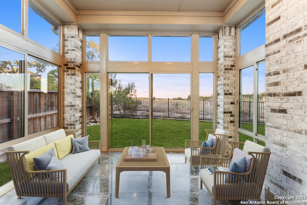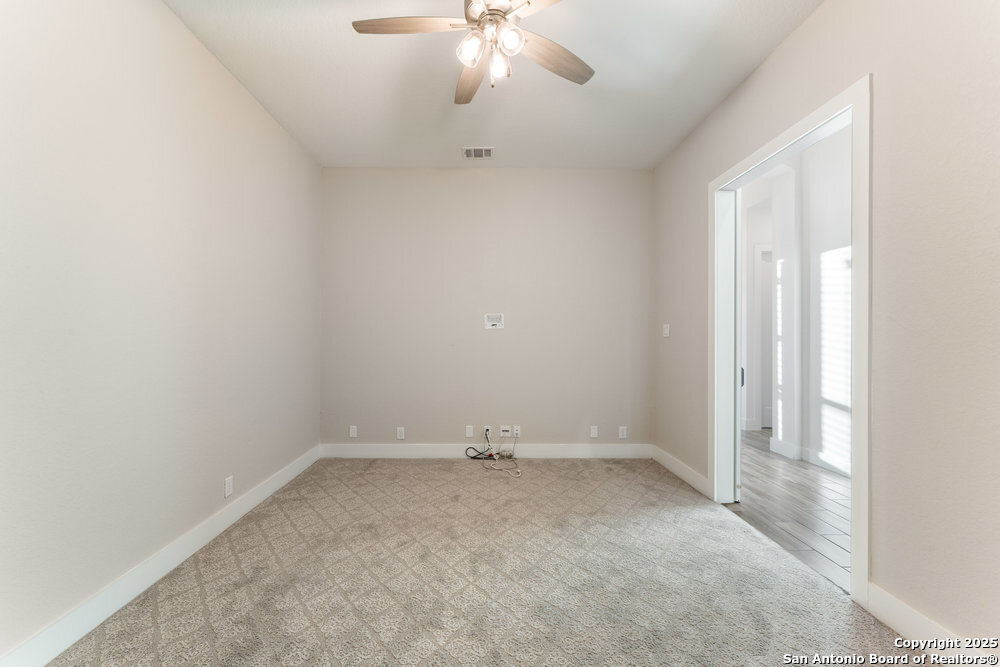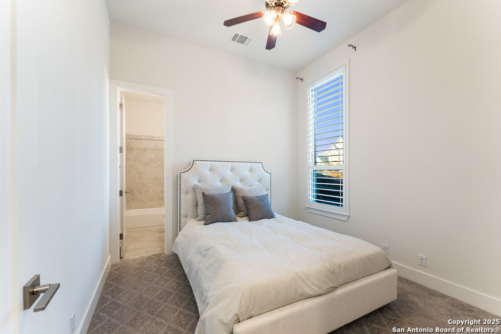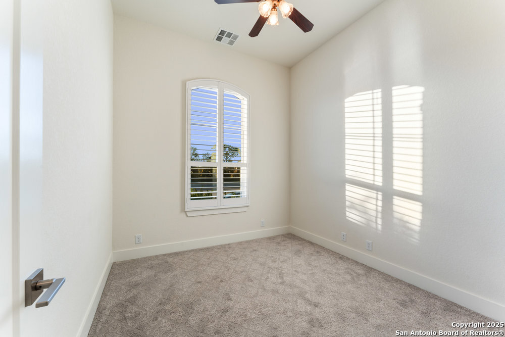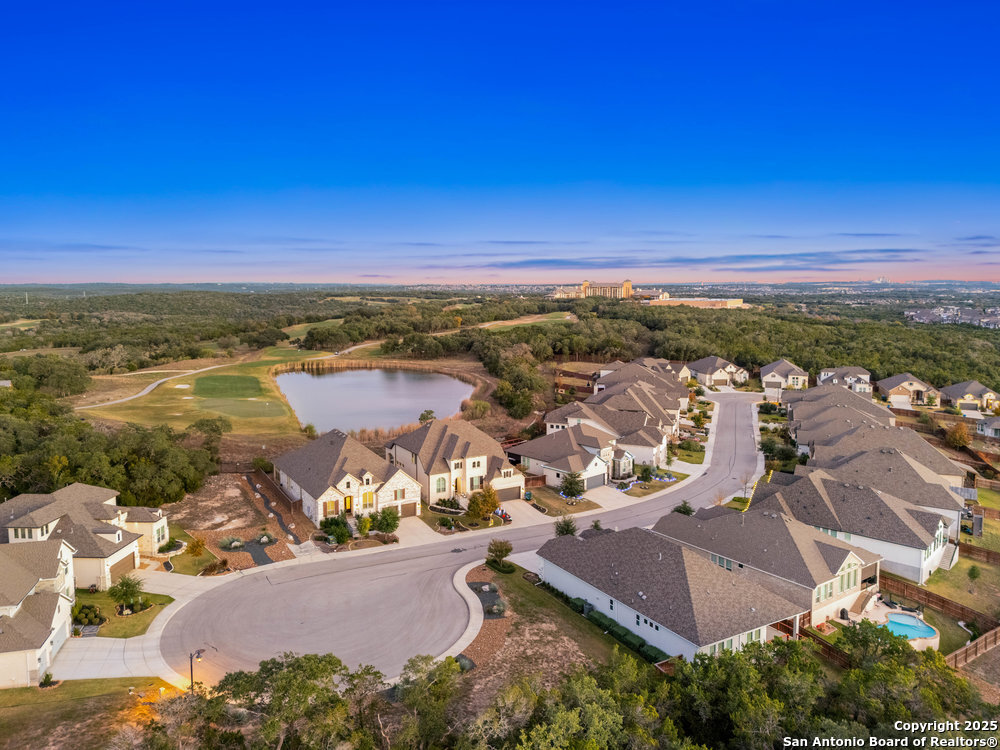 Tucked at the end of a quiet cul-de-sac in the highly sought-after Cibolo Canyons community, this 4-bedroom, 4.5-bath home offers privacy, comfort, and thoughtful design. With a greenbelt and the golf course right behind you, you'll enjoy peaceful views of the pond and a true sense of serenity every time you step outside. Inside, the layout just makes sense. The kitchen is the heart of the home, anchored by a large island that works perfectly for cooking, gathering, or spreading out and getting things done. Each bedroom has its own full bath, giving everyone their own space and making hosting family or guests incredibly easy. The sellers have kept this home in excellent shape and added upgrades along the way: brand new carpet in the bedrooms and media room, custom shutters from Window Fashions of Texas, and a fully enclosed patio from Patio Enclosures so you can enjoy the outdoors year-round. The garage is dialed in too, featuring a professionally installed Versalift system for effortless attic access and a clean New Age wall cabinet setup that keeps everything organized and off the floor. Residents love the neighborhood trails for morning runs and evening walks, and this home gives you easy access to all of them. This is a turn-key property in one of San Antonio's most desirable communities. Offering space, updates, and a peaceful setting that's getting harder to find. Homes like this don't come around often. Schedule your showing today.